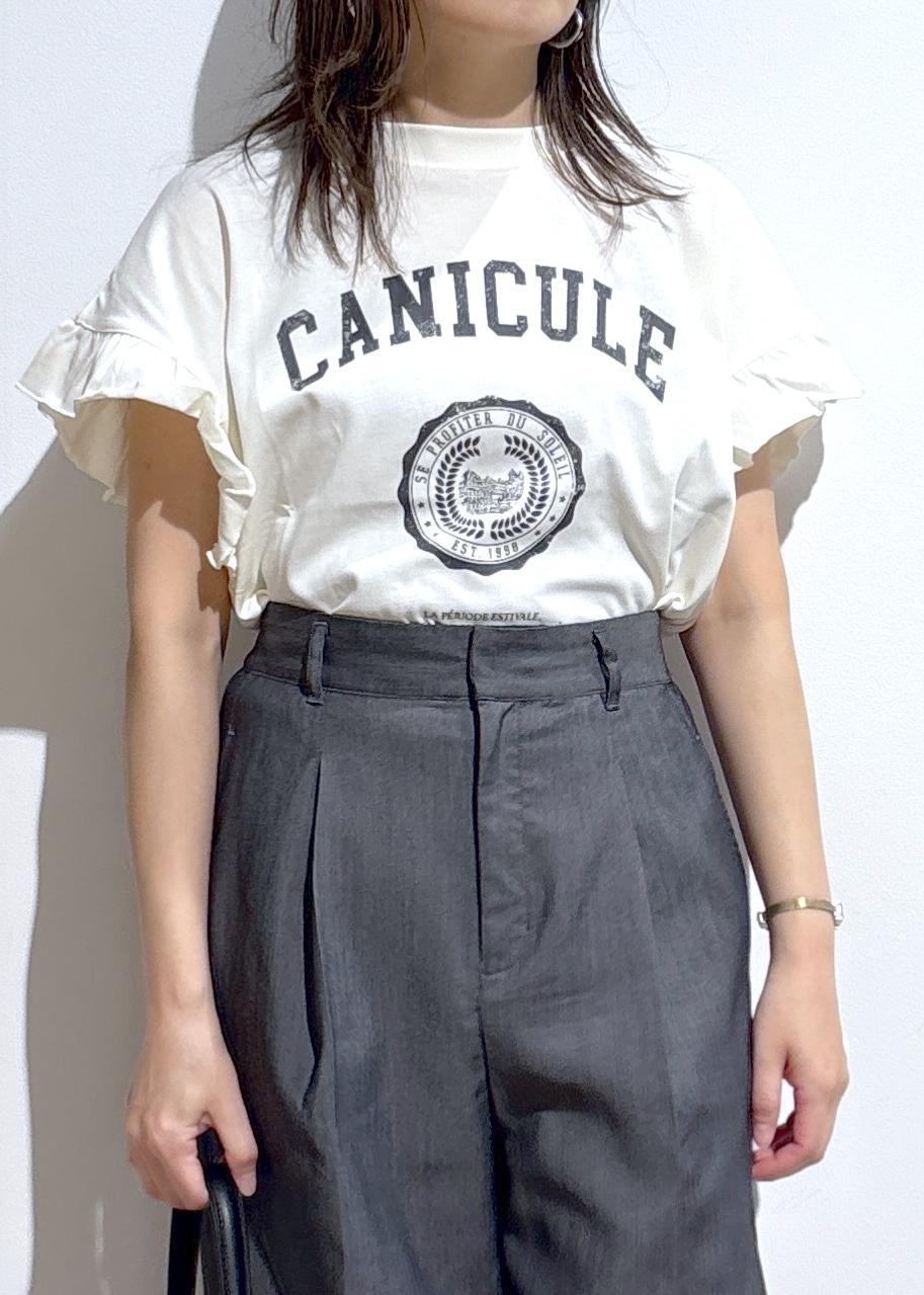 袖フリルカレッジロゴTシャツ