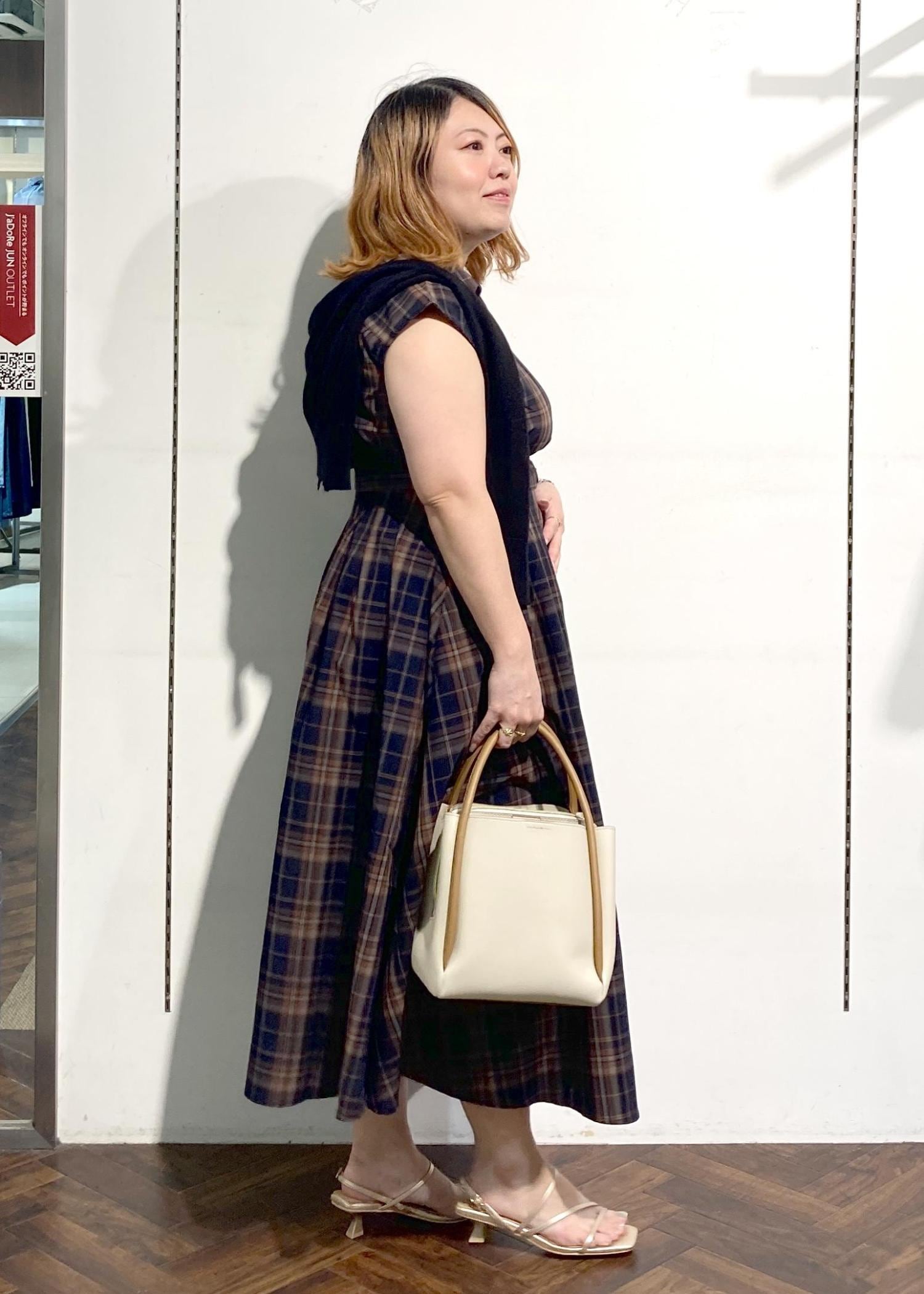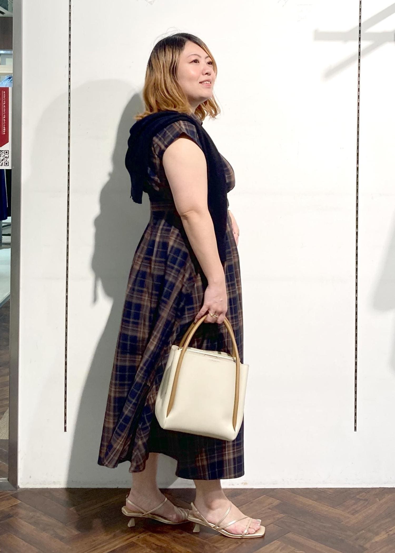 シルエットがすごくきれいなワンピースなので、着るだけでフェミニンスタイルが叶います。