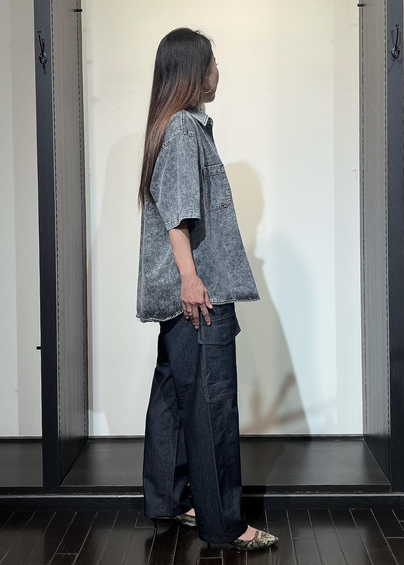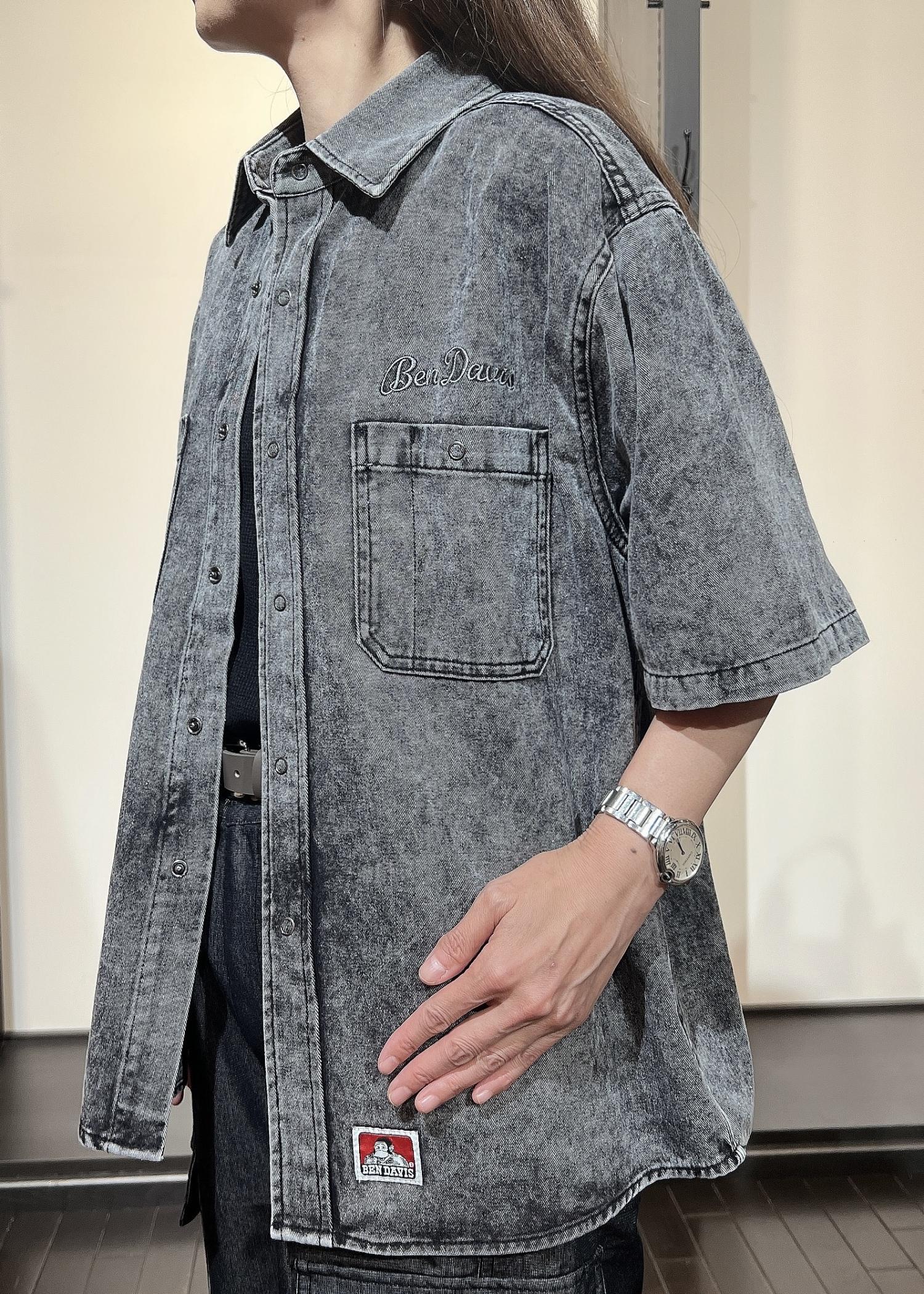 BENDAVIS別注デニムライクシャツを主役にブラックカラーでコーディネートしました。