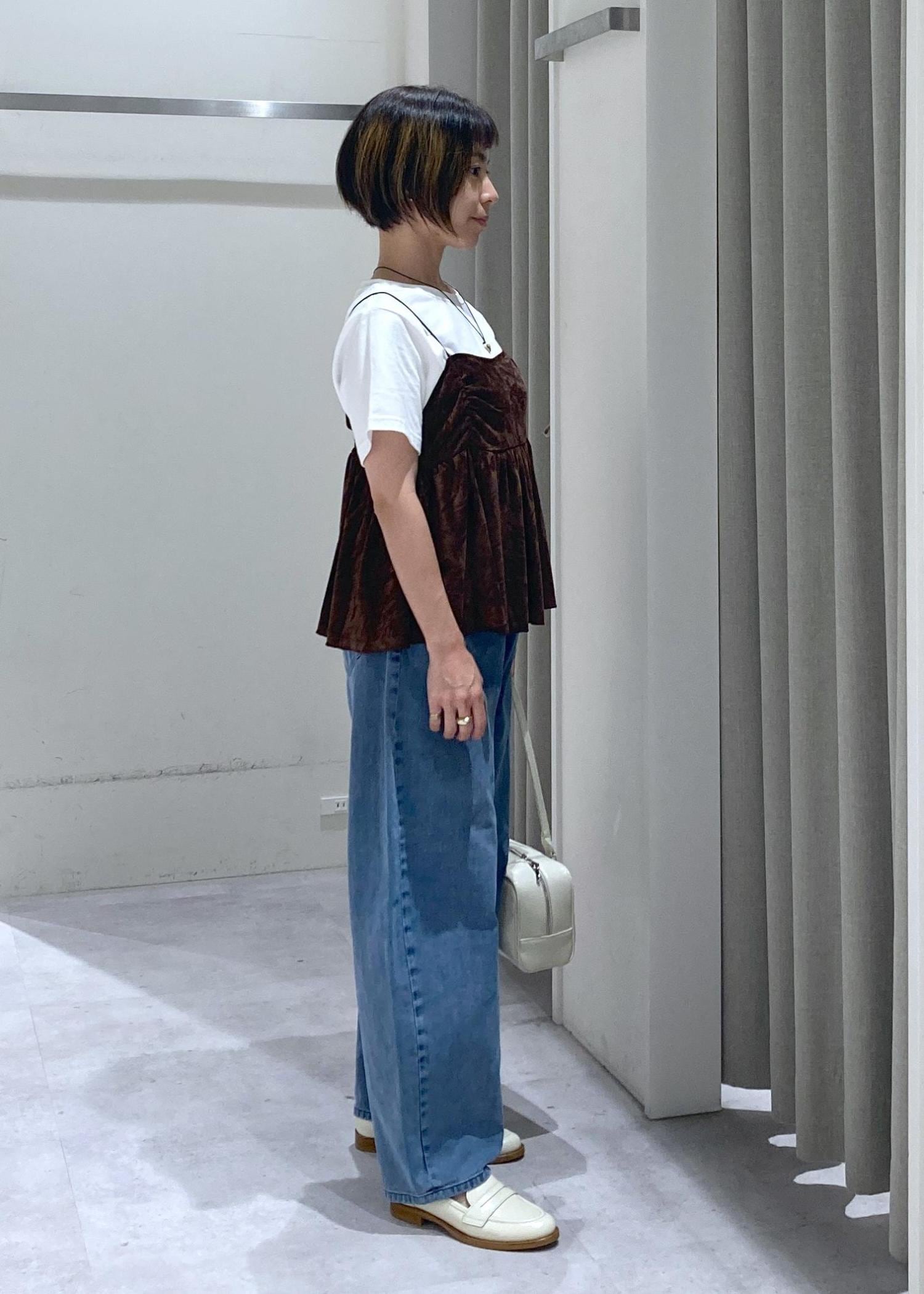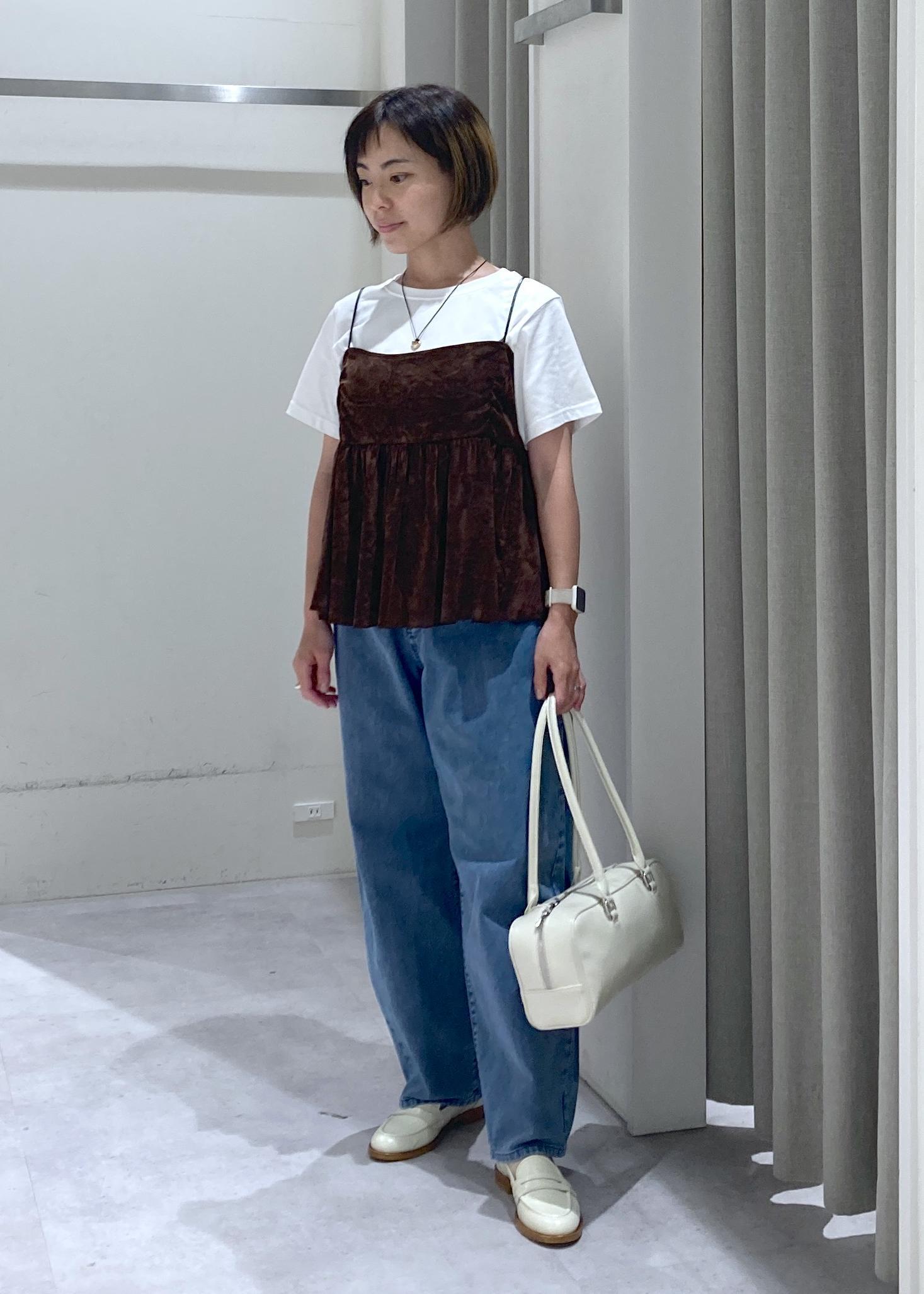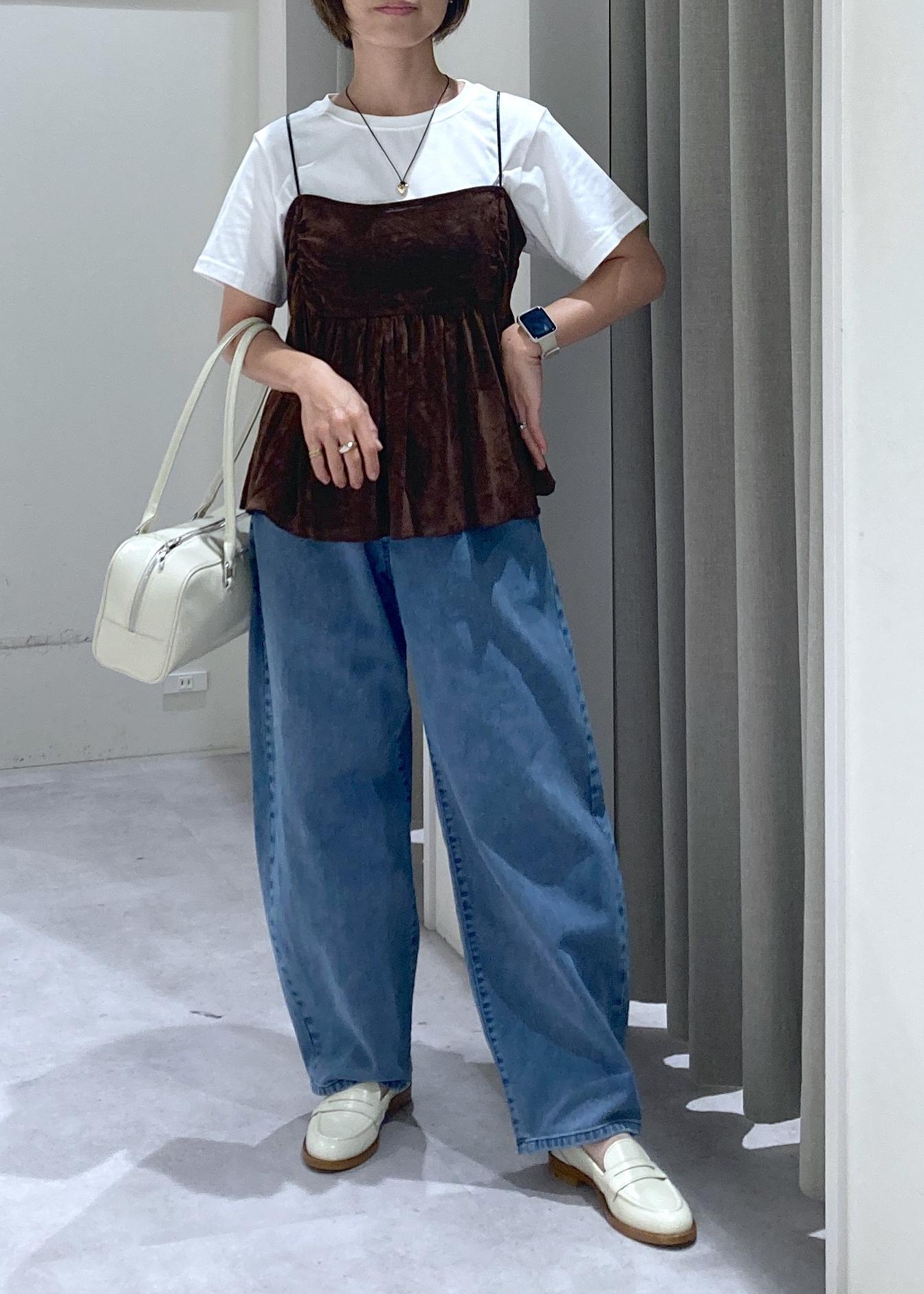 でも秋を取り入れたくて白TEEにダークブラウンのキャミソールを重ねました。