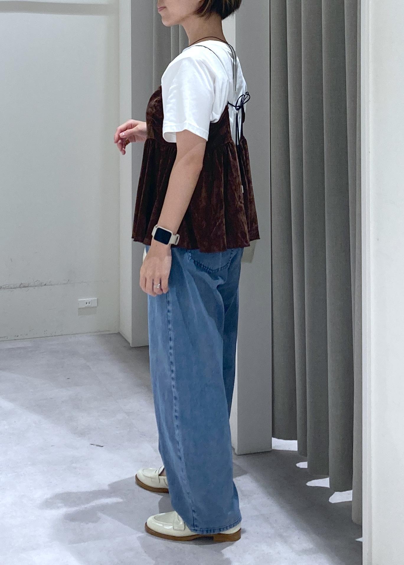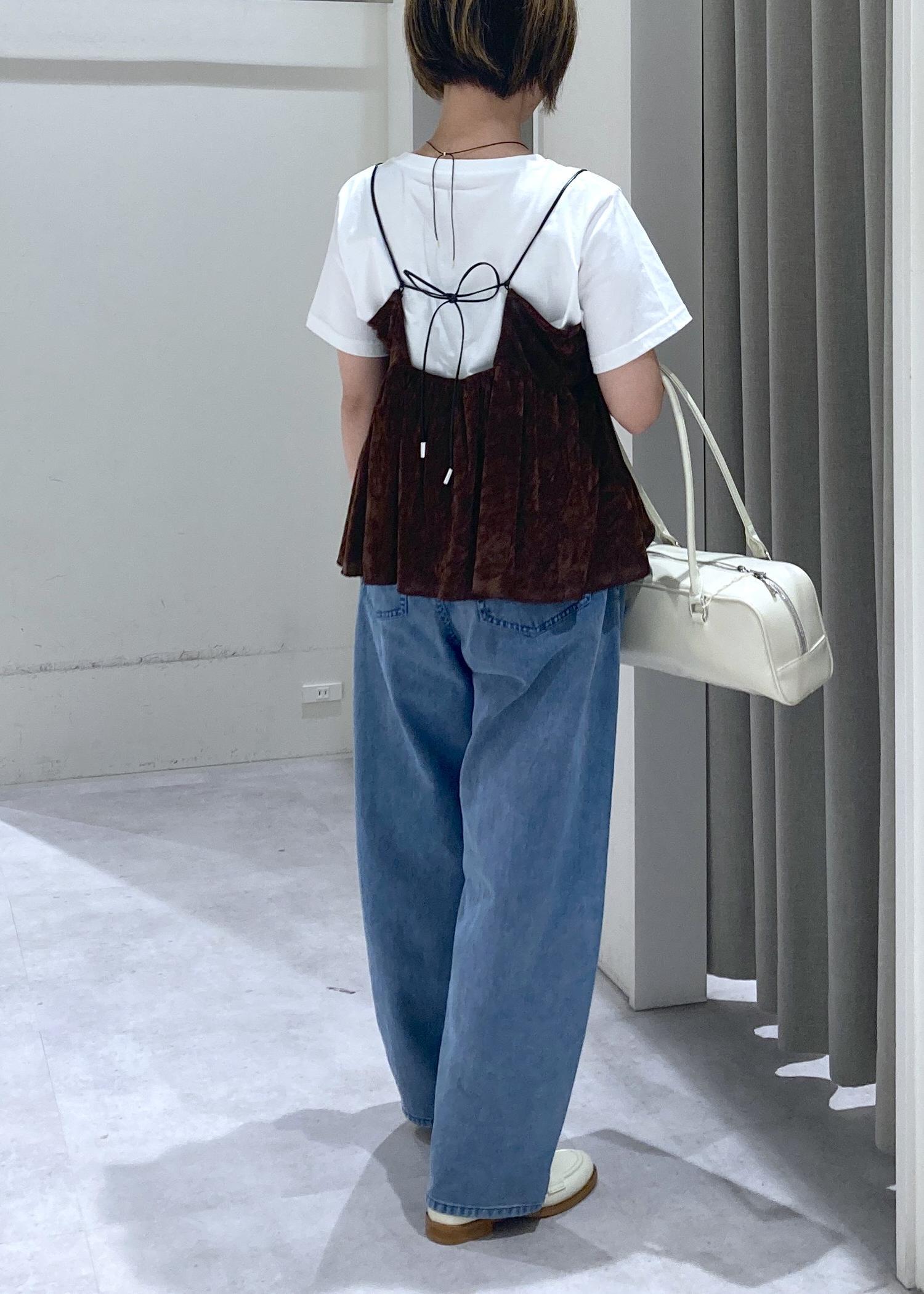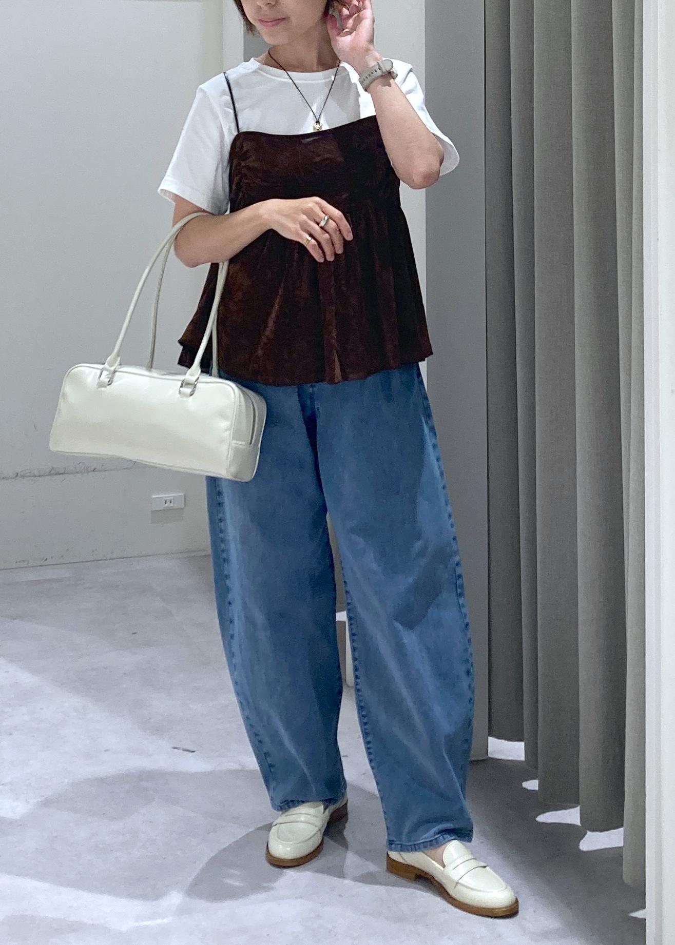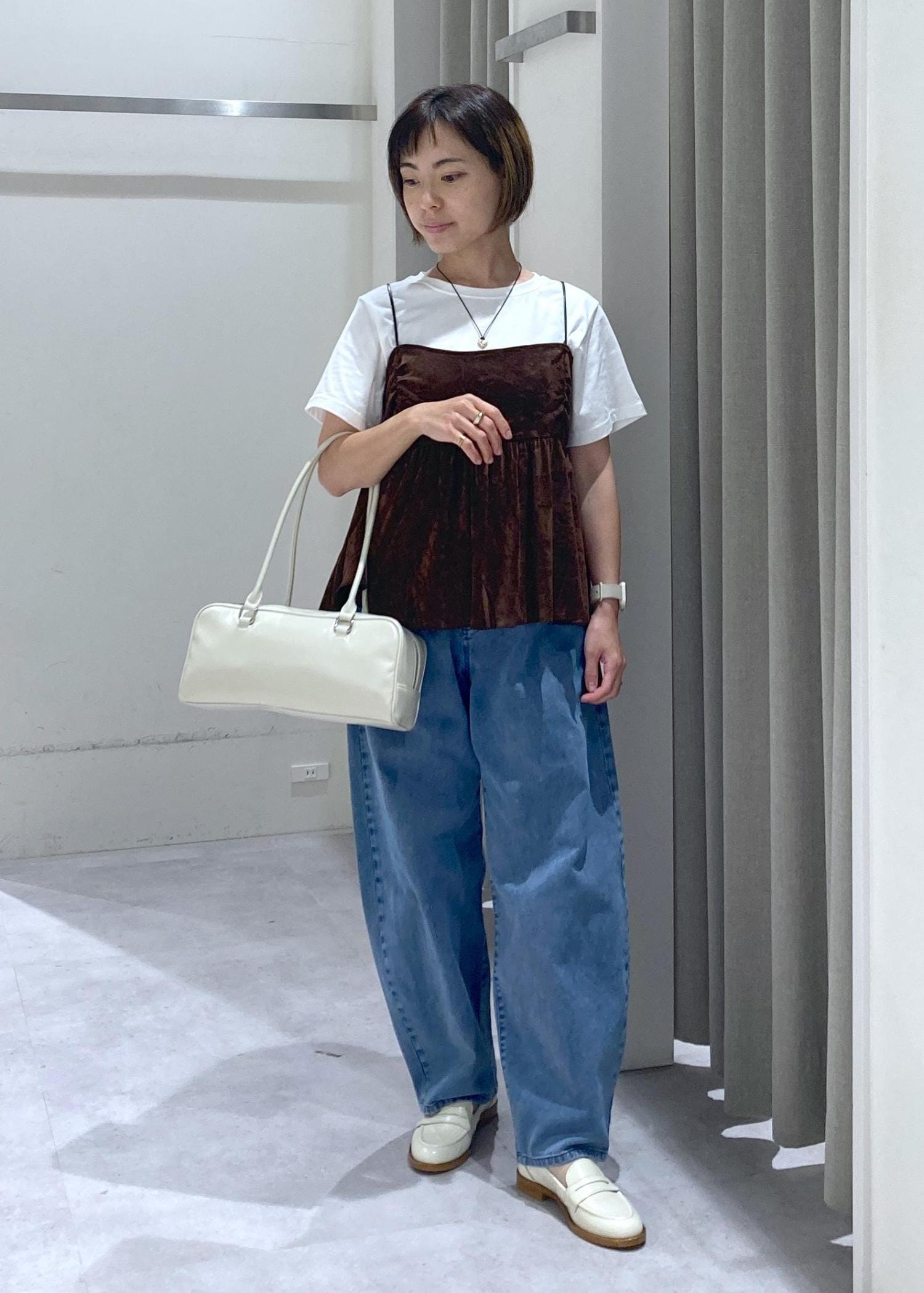でも秋を取り入れたくて白TEEにダークブラウンのキャミソールを重ねました。