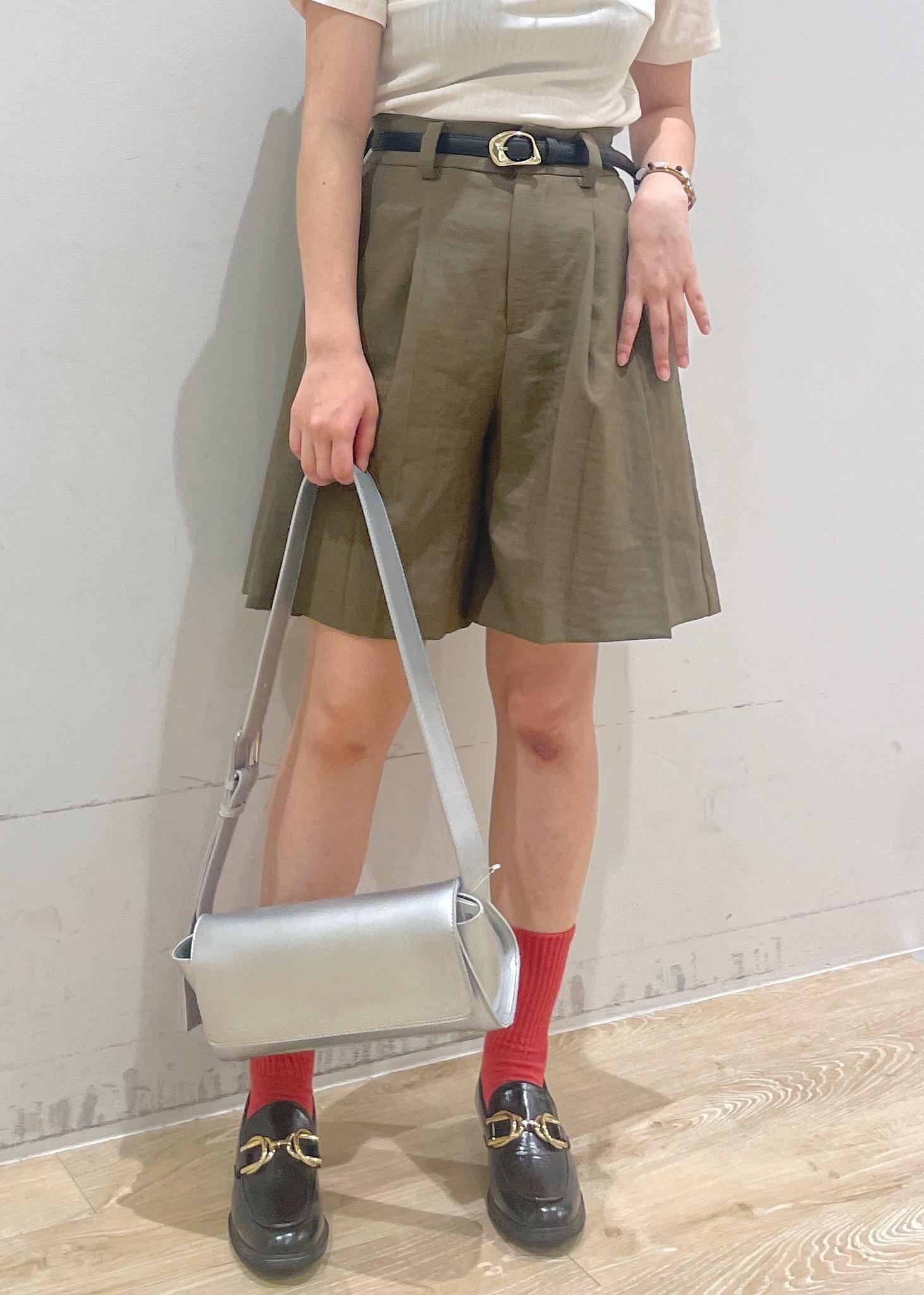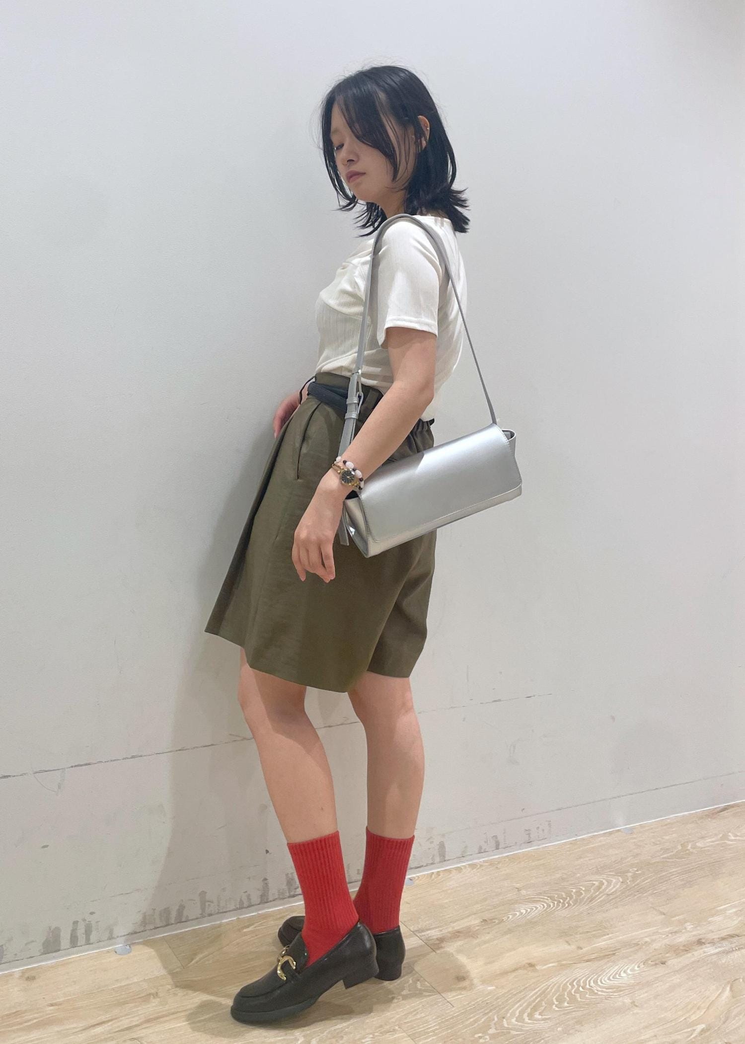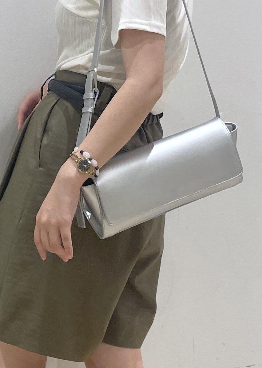 シルバーのバッグで都会的な雰囲気も忘れずプラスです!!