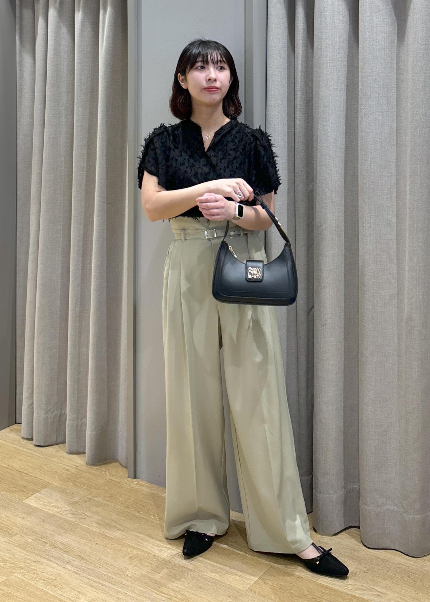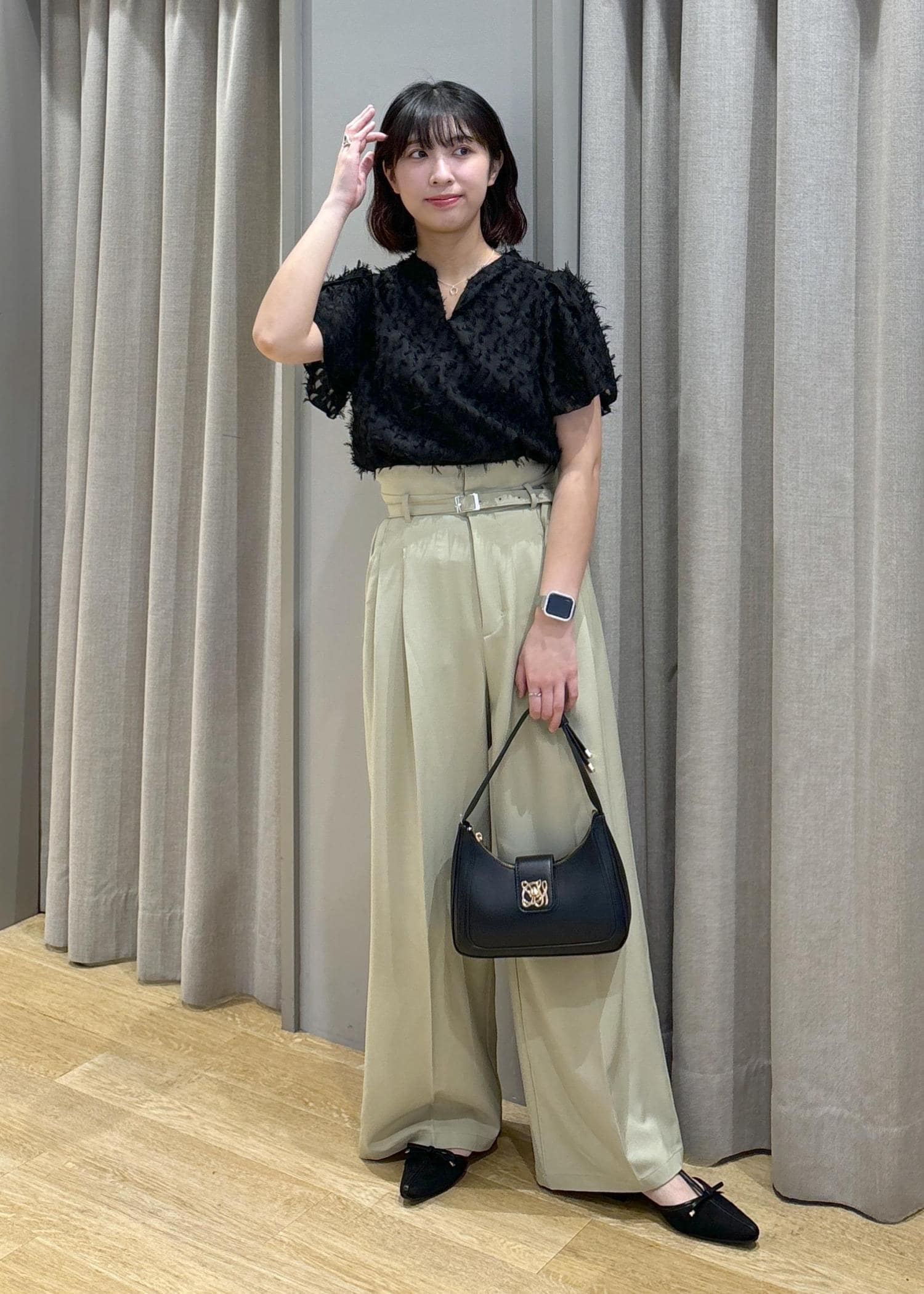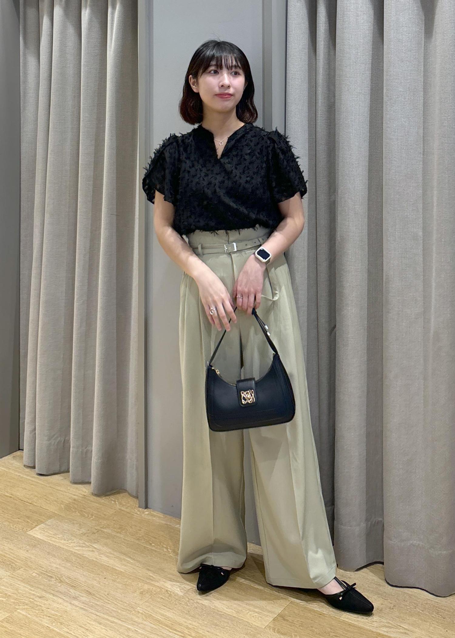 VISチューリップスリーブジャガードスキッパーブラウスブラック / F¥2,963レビュー身長158cm、Fサイズ着用。