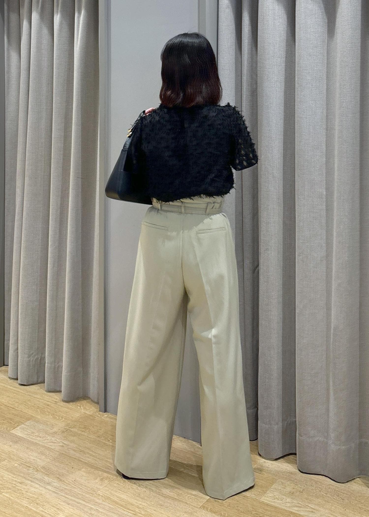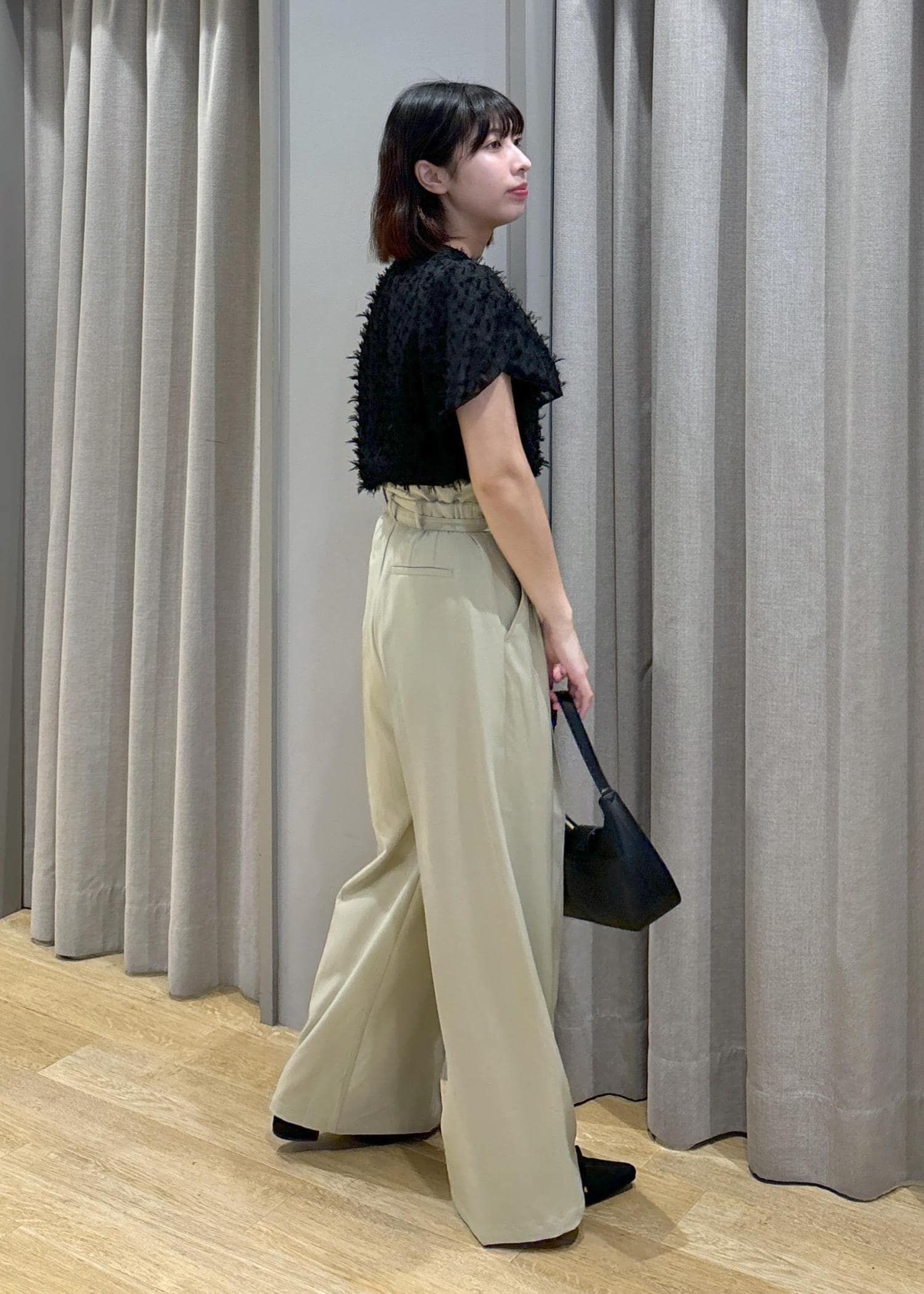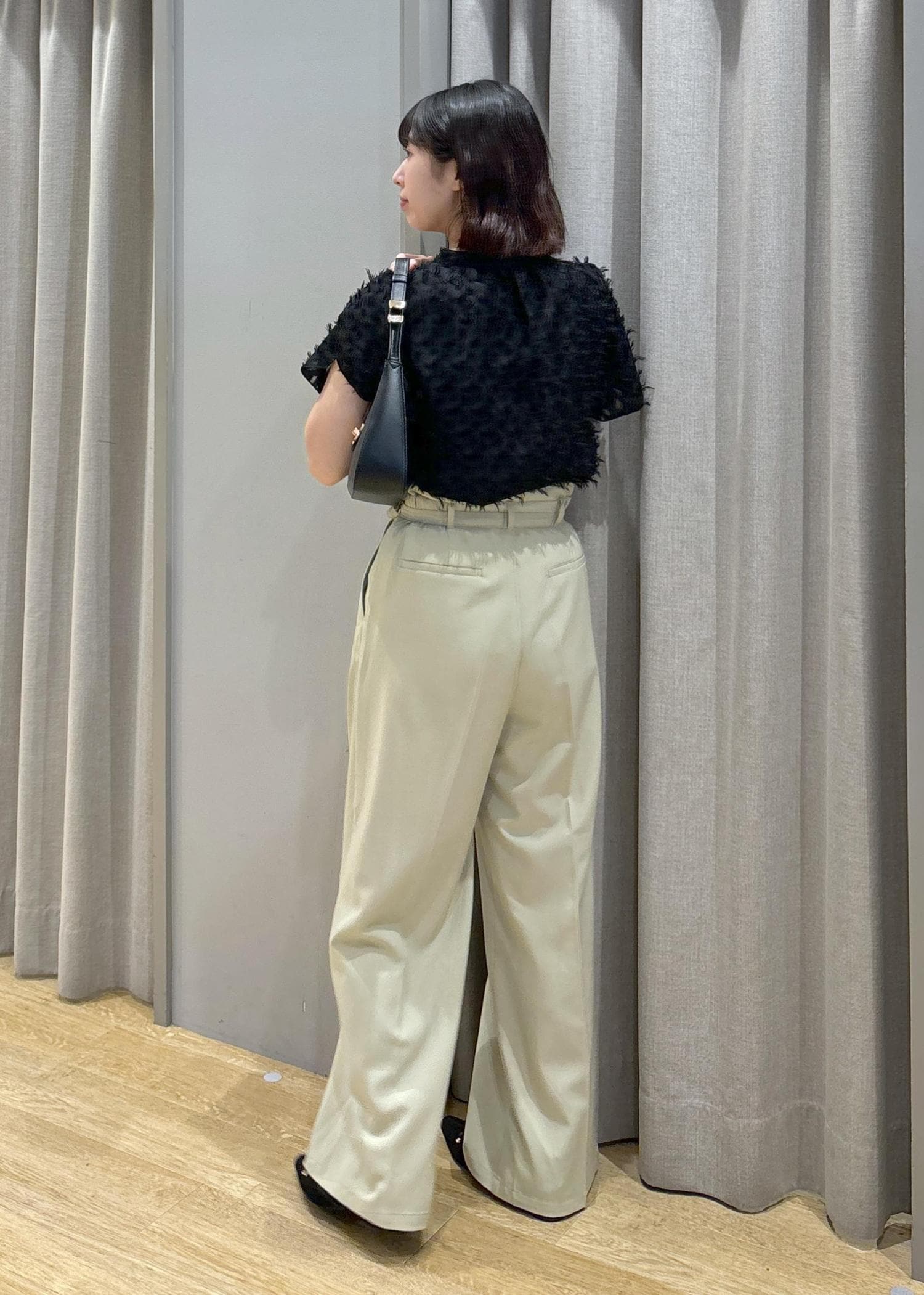 VISチューリップスリーブジャガードスキッパーブラウスブラック / F¥2,963レビュー身長158cm、Fサイズ着用。