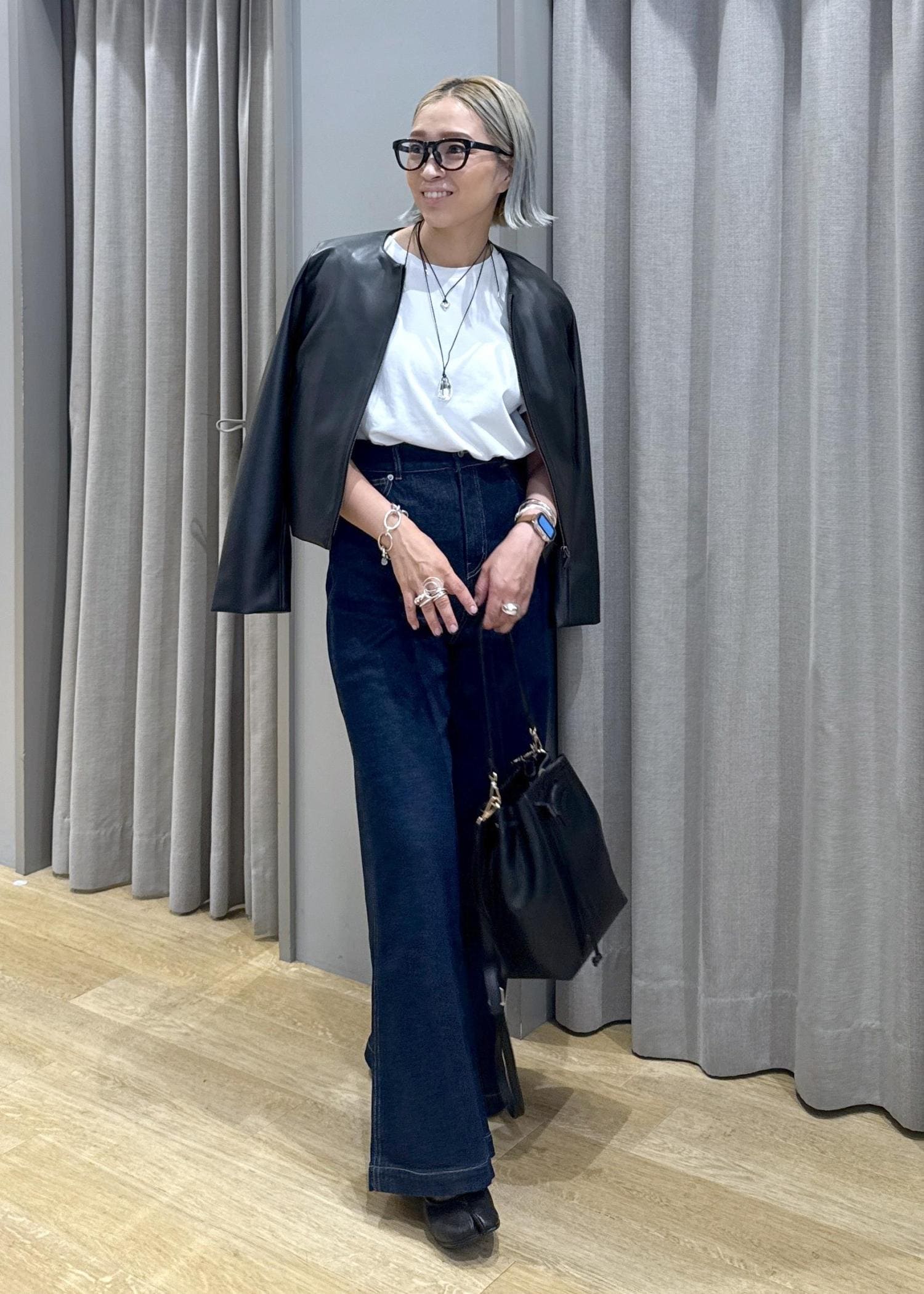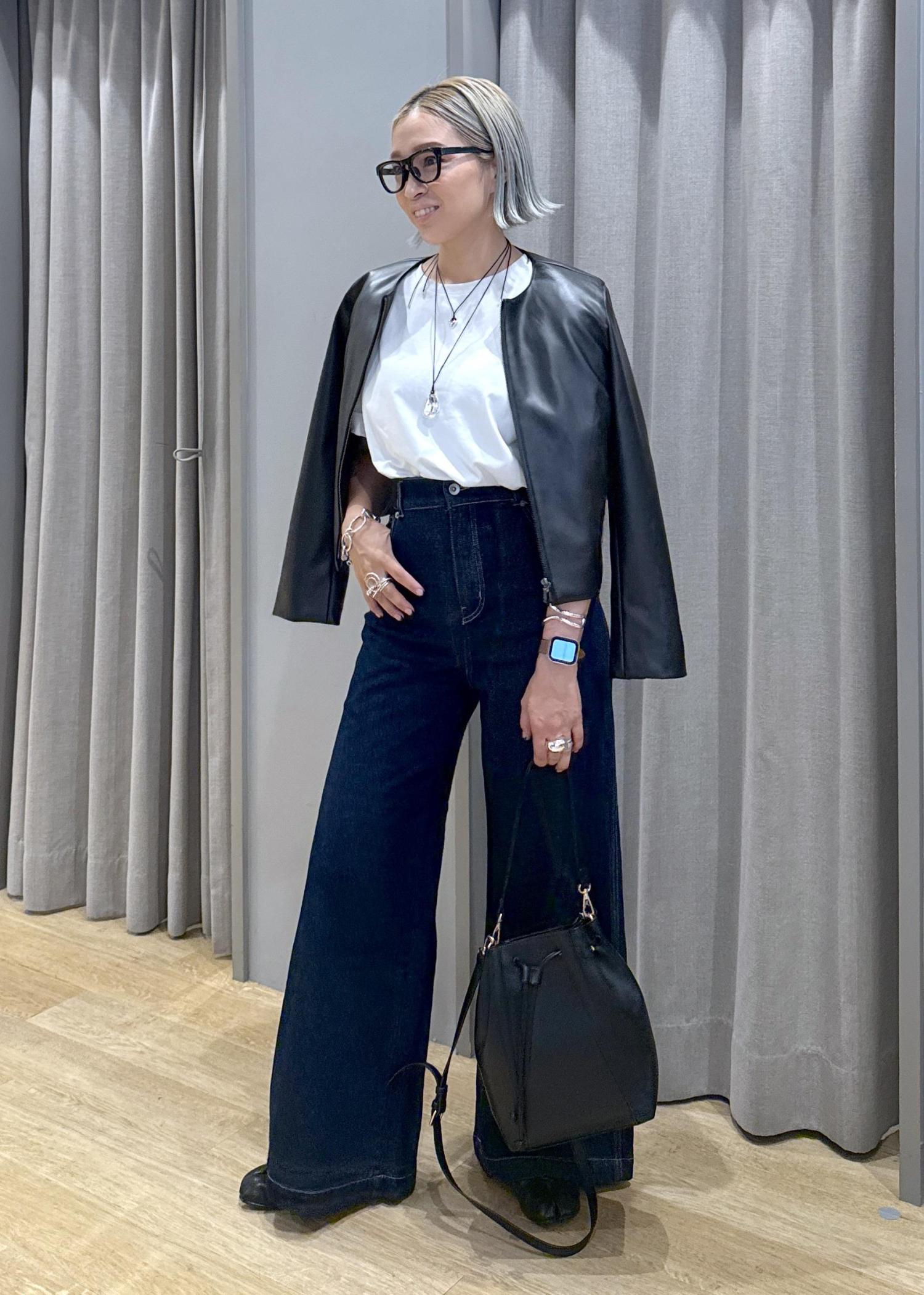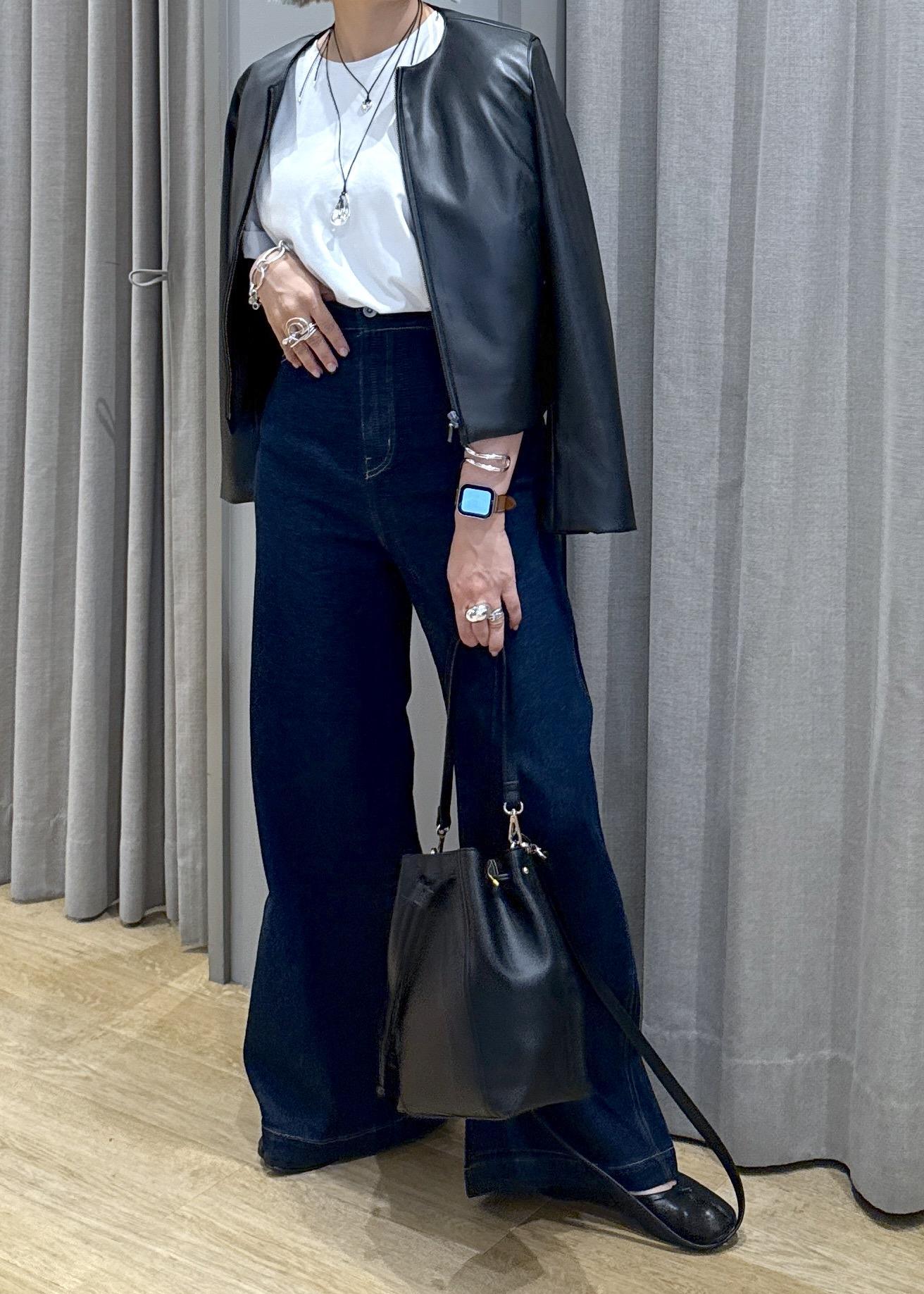 足元や小物もブラックレザーにすることで、綺麗めにカッコよくまとめています♪