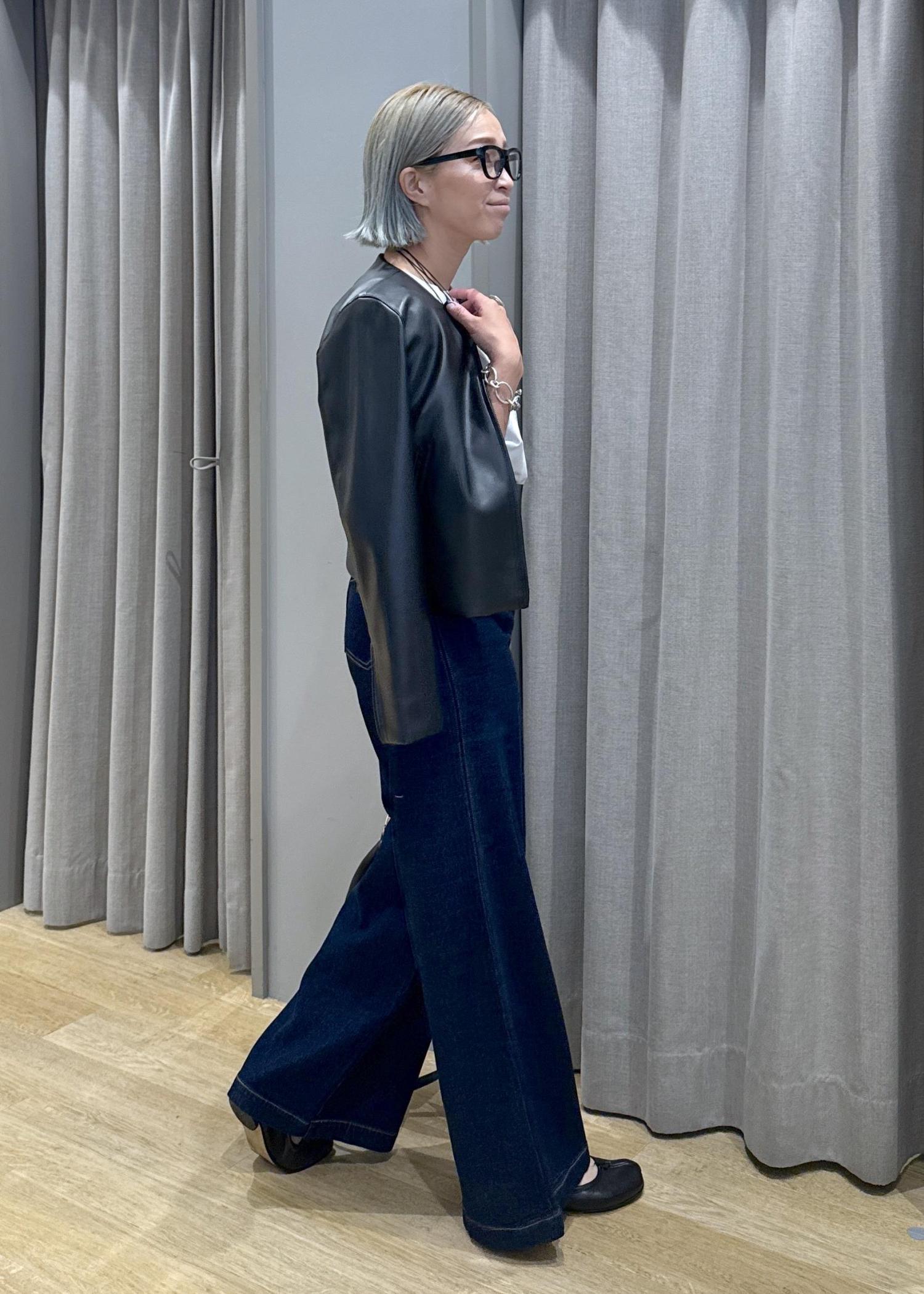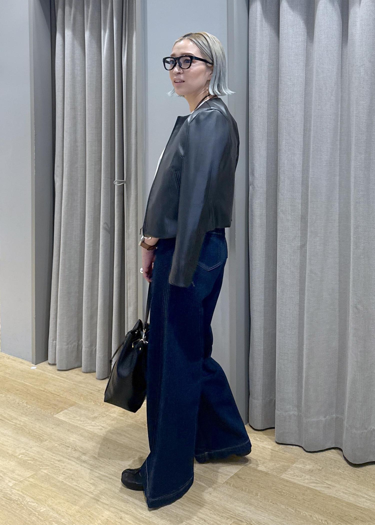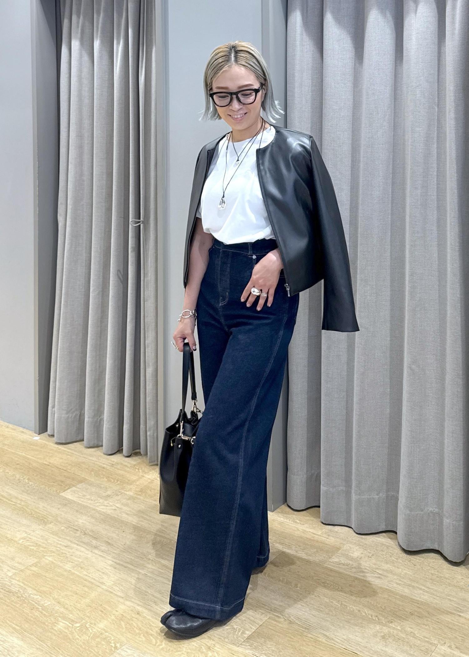 足元や小物もブラックレザーにすることで、綺麗めにカッコよくまとめています♪