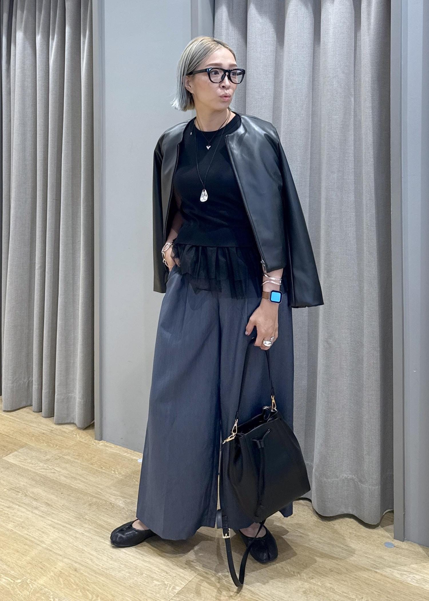 インナーのチュールで甘さをプラスさせたスタイリング。
