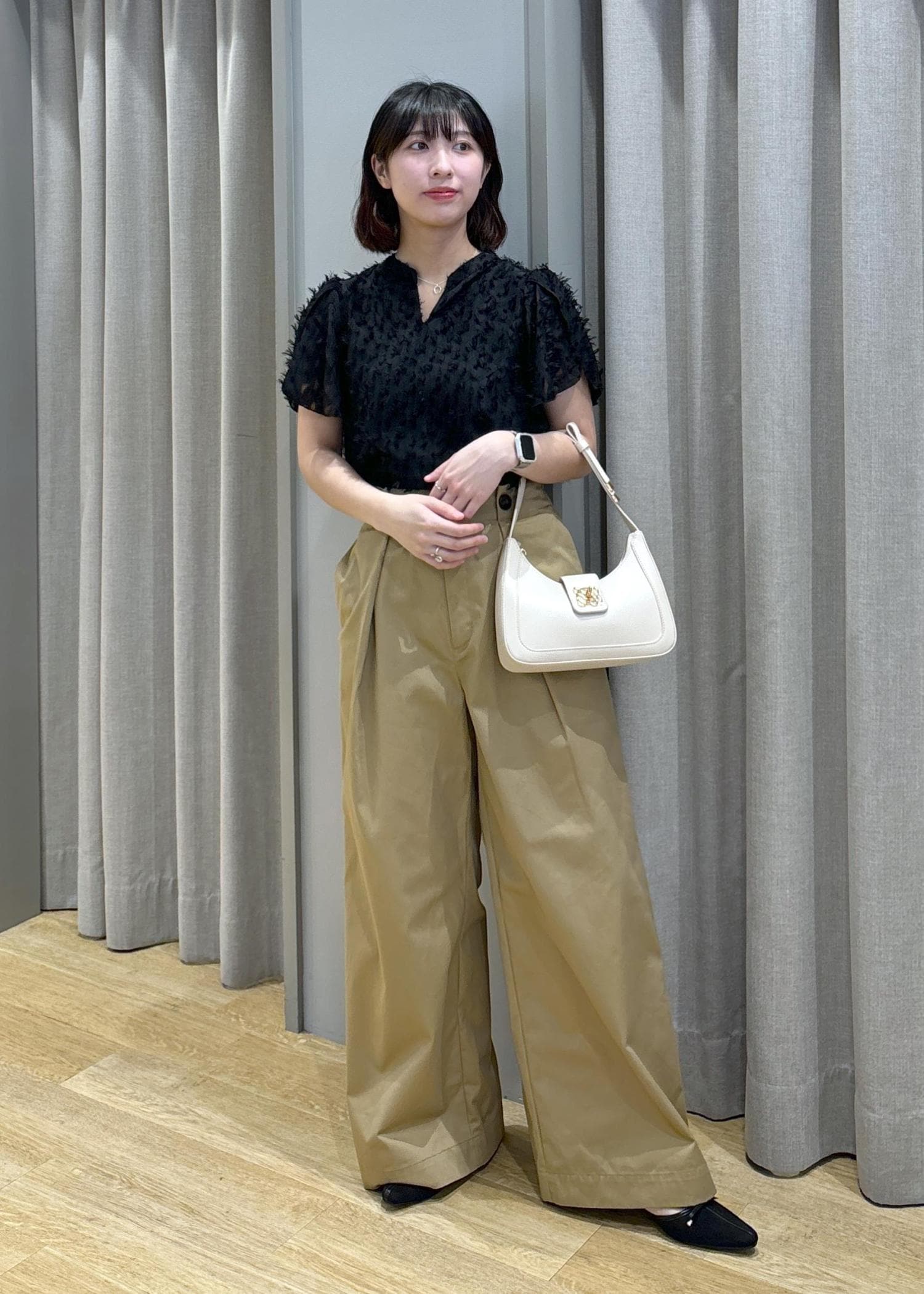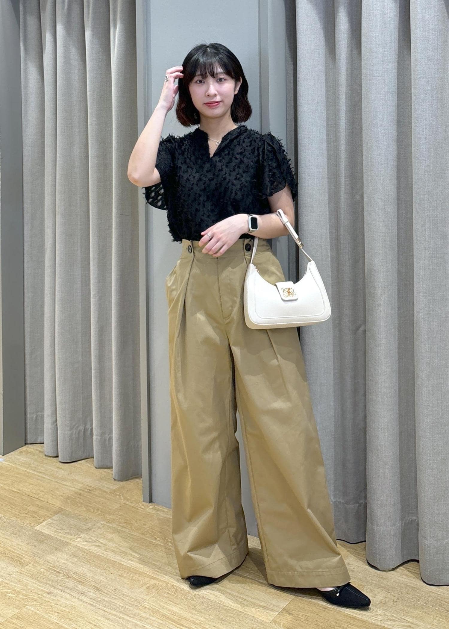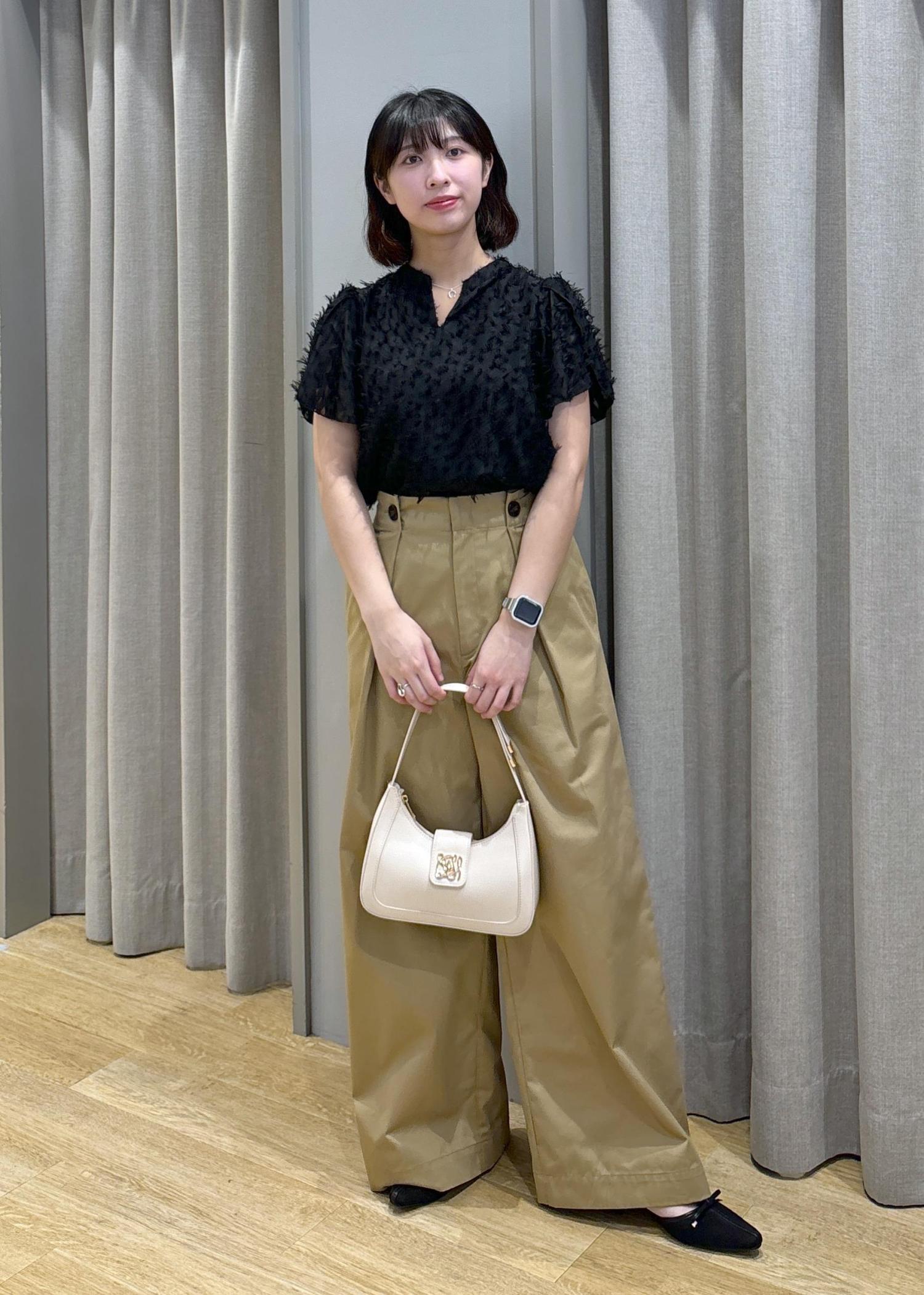 VISチューリップスリーブジャガードスキッパーブラウスブラック / F¥2,963レビュー身長158cm、Fサイズ着用。