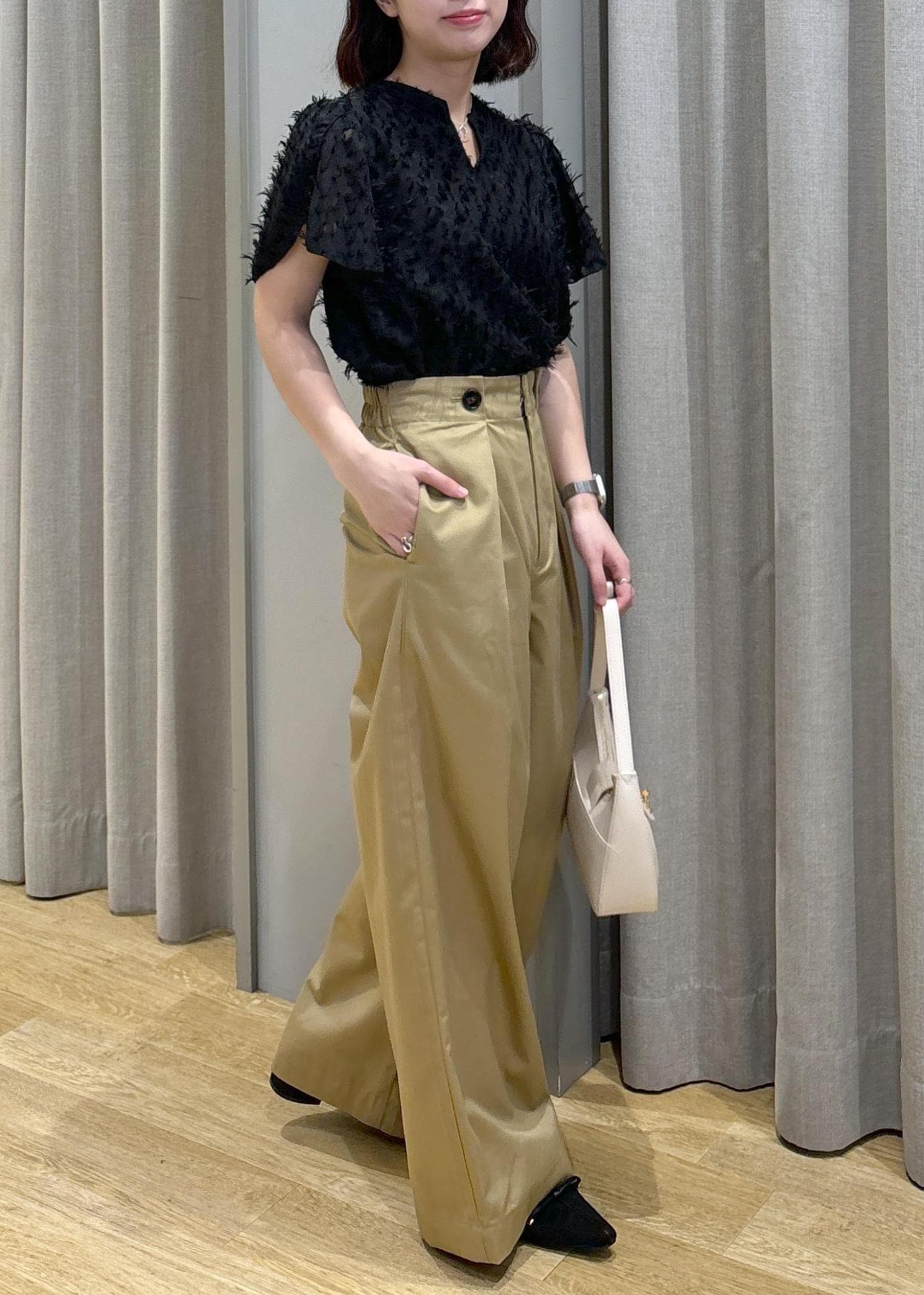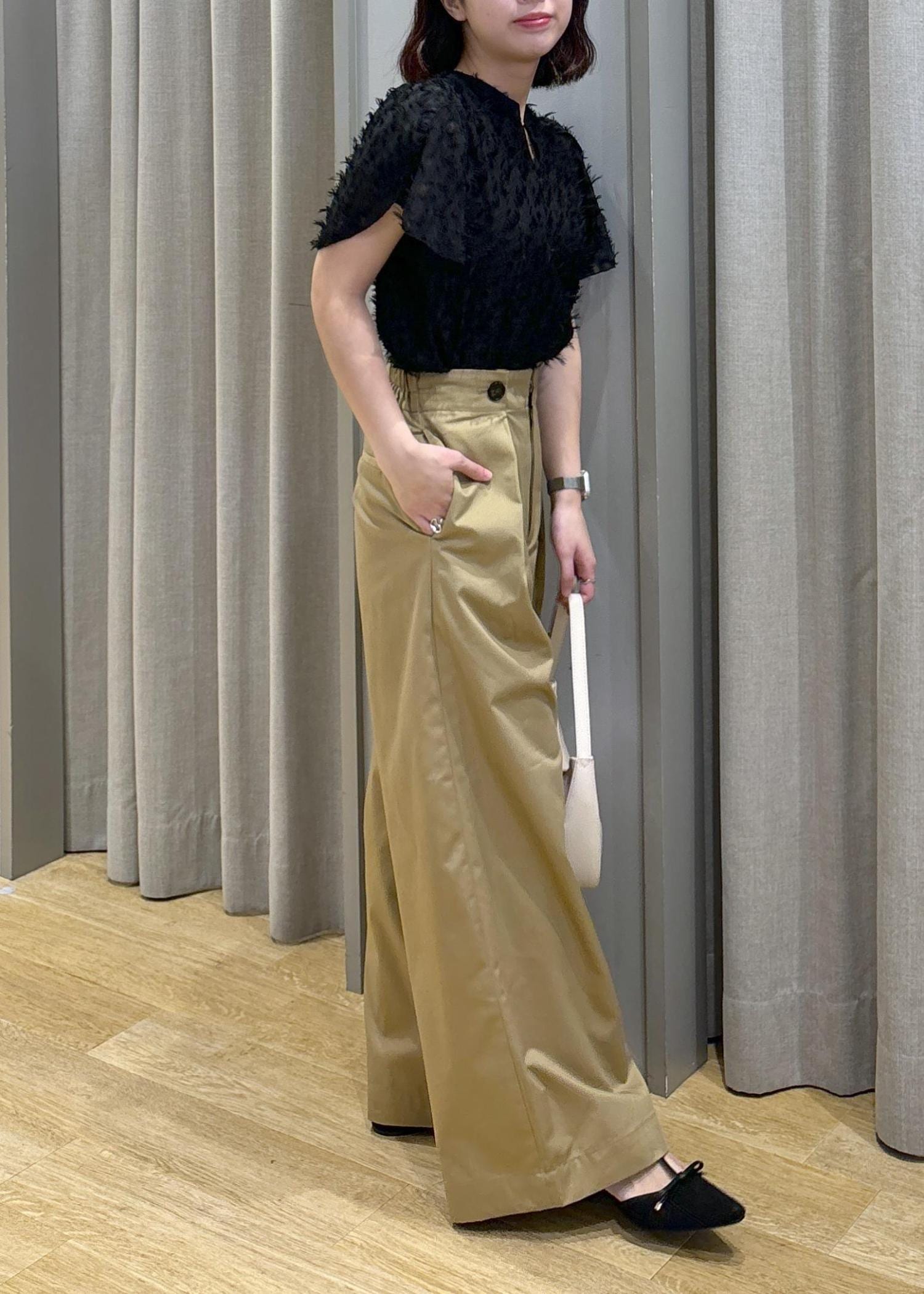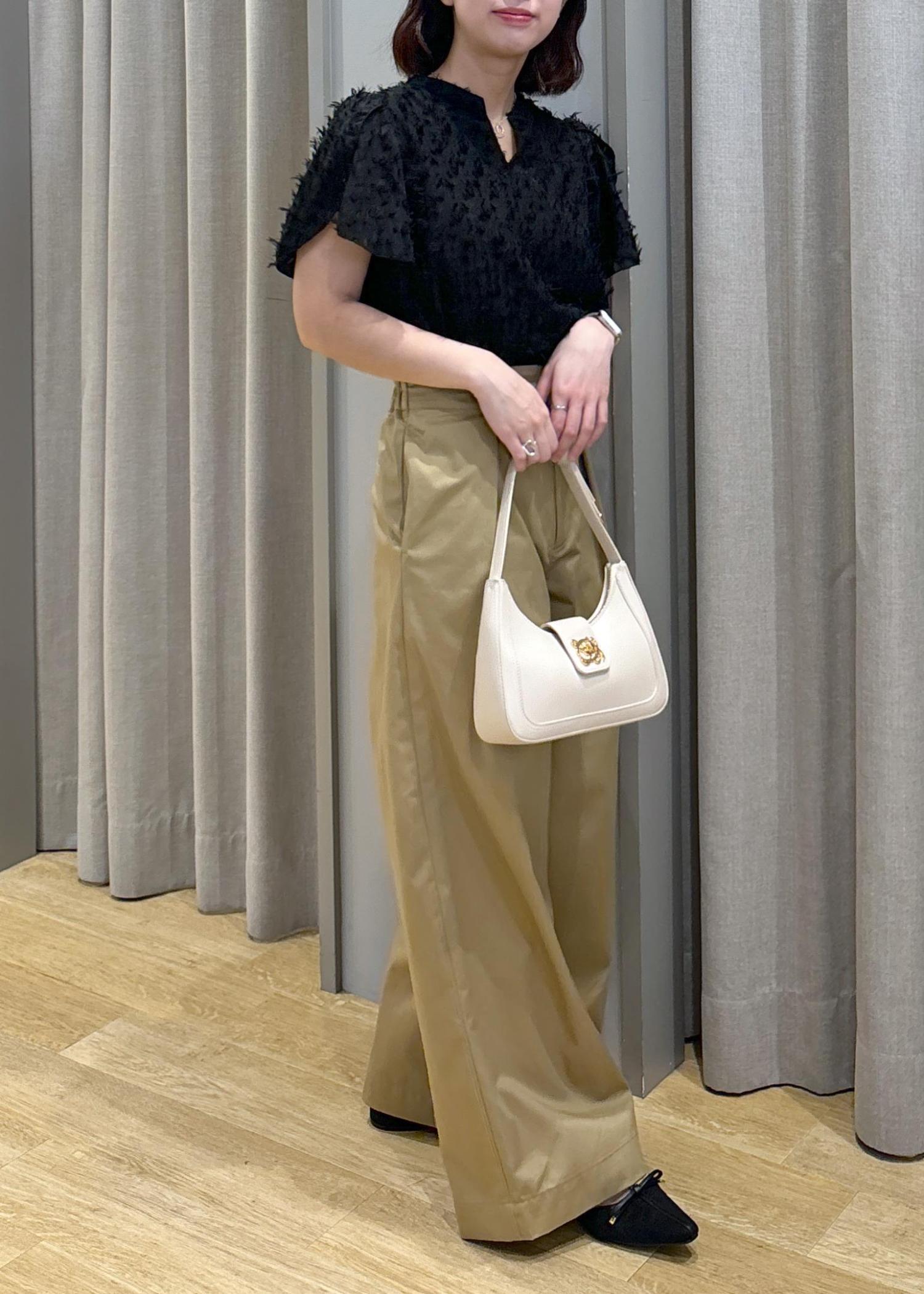 VISチューリップスリーブジャガードスキッパーブラウスブラック / F¥2,963レビュー身長158cm、Fサイズ着用。