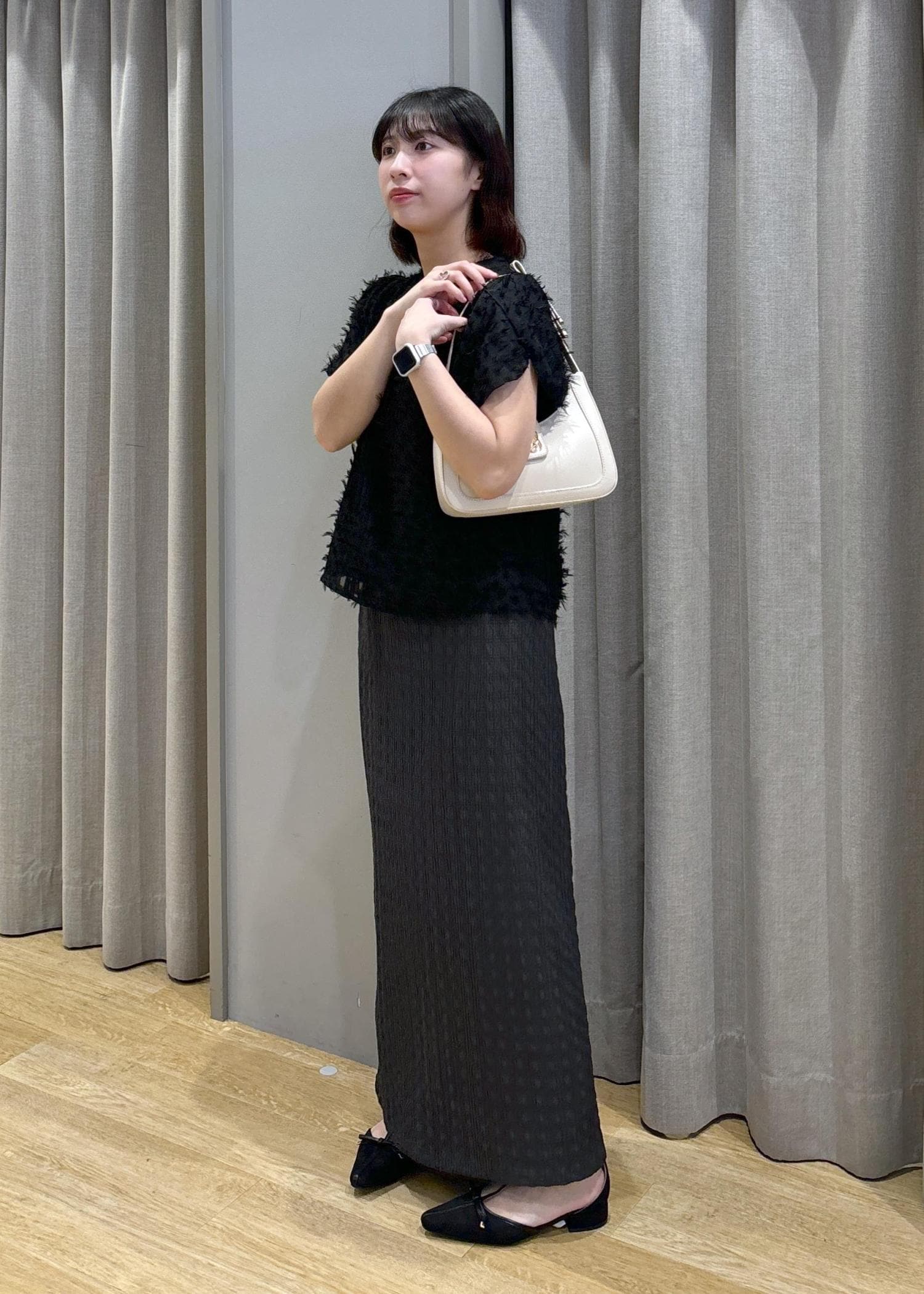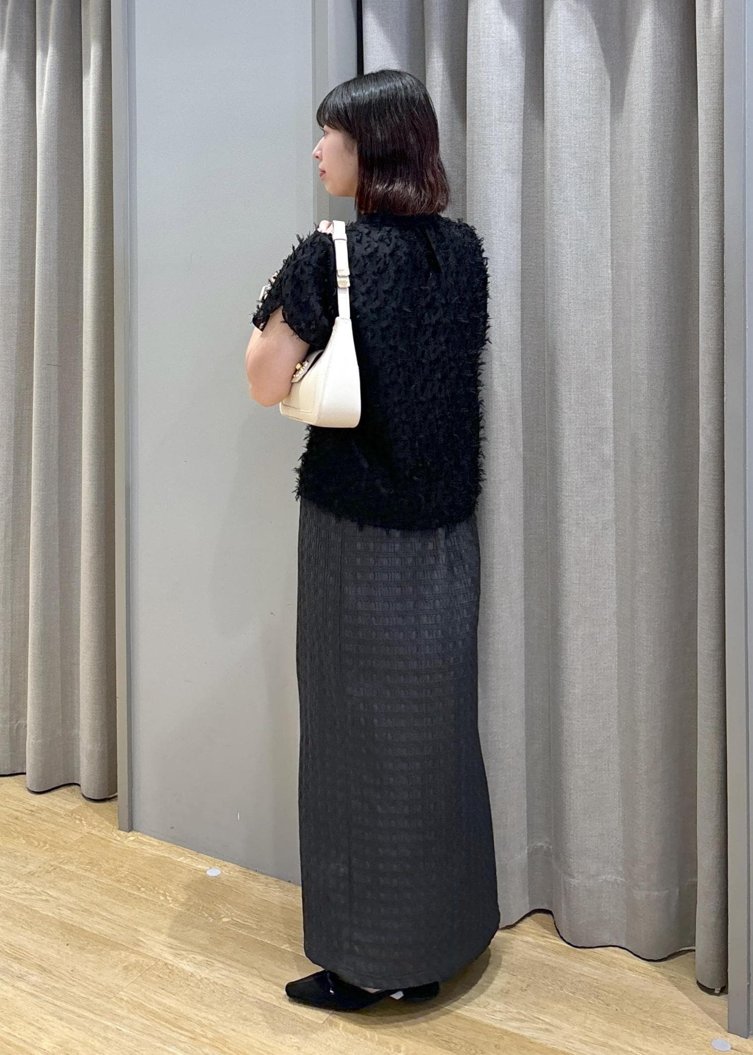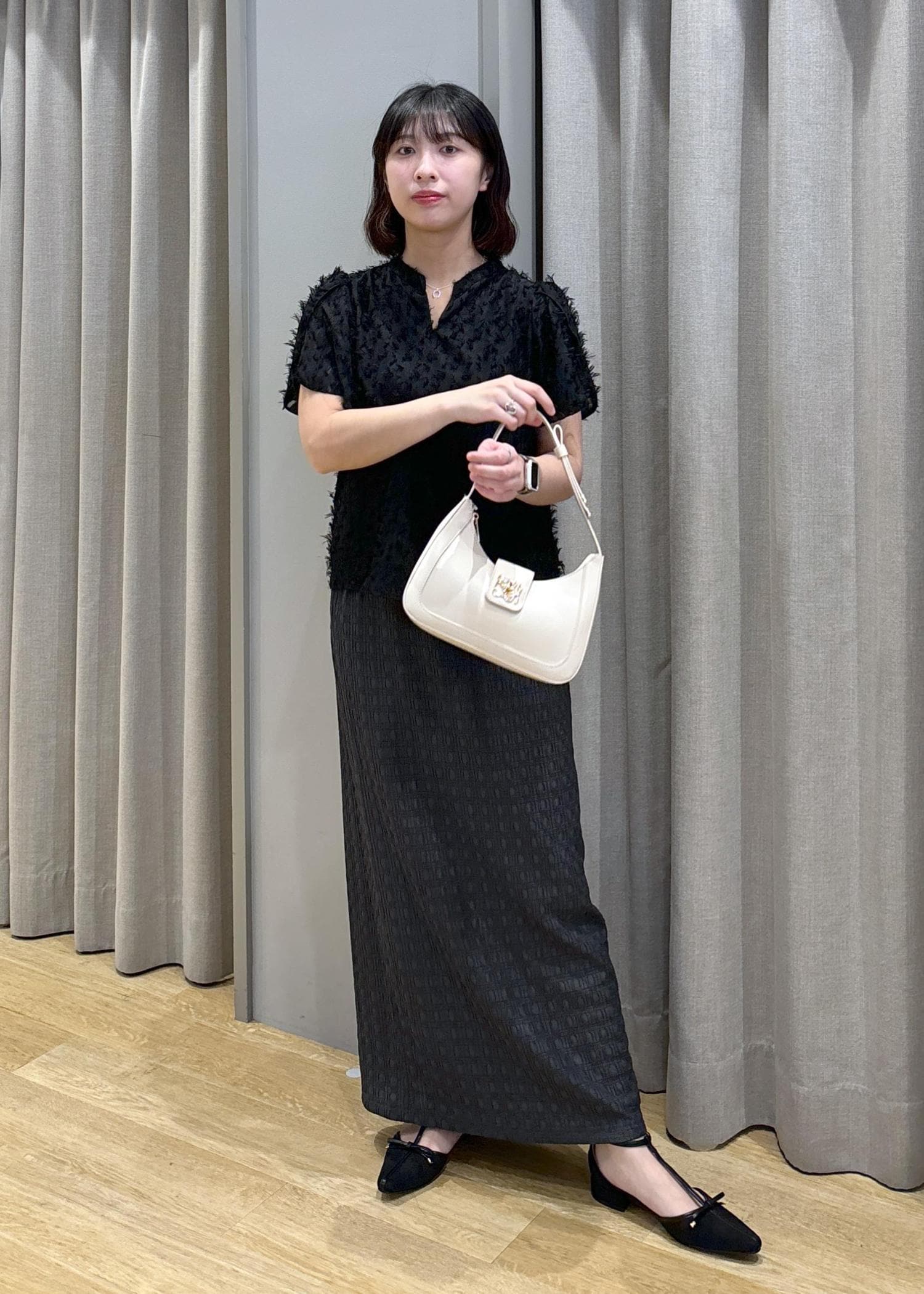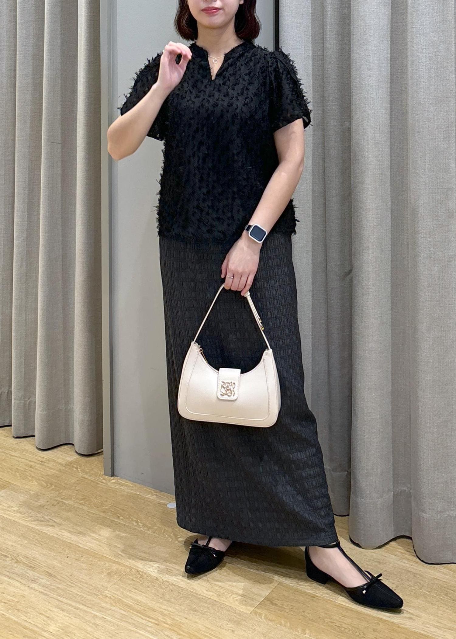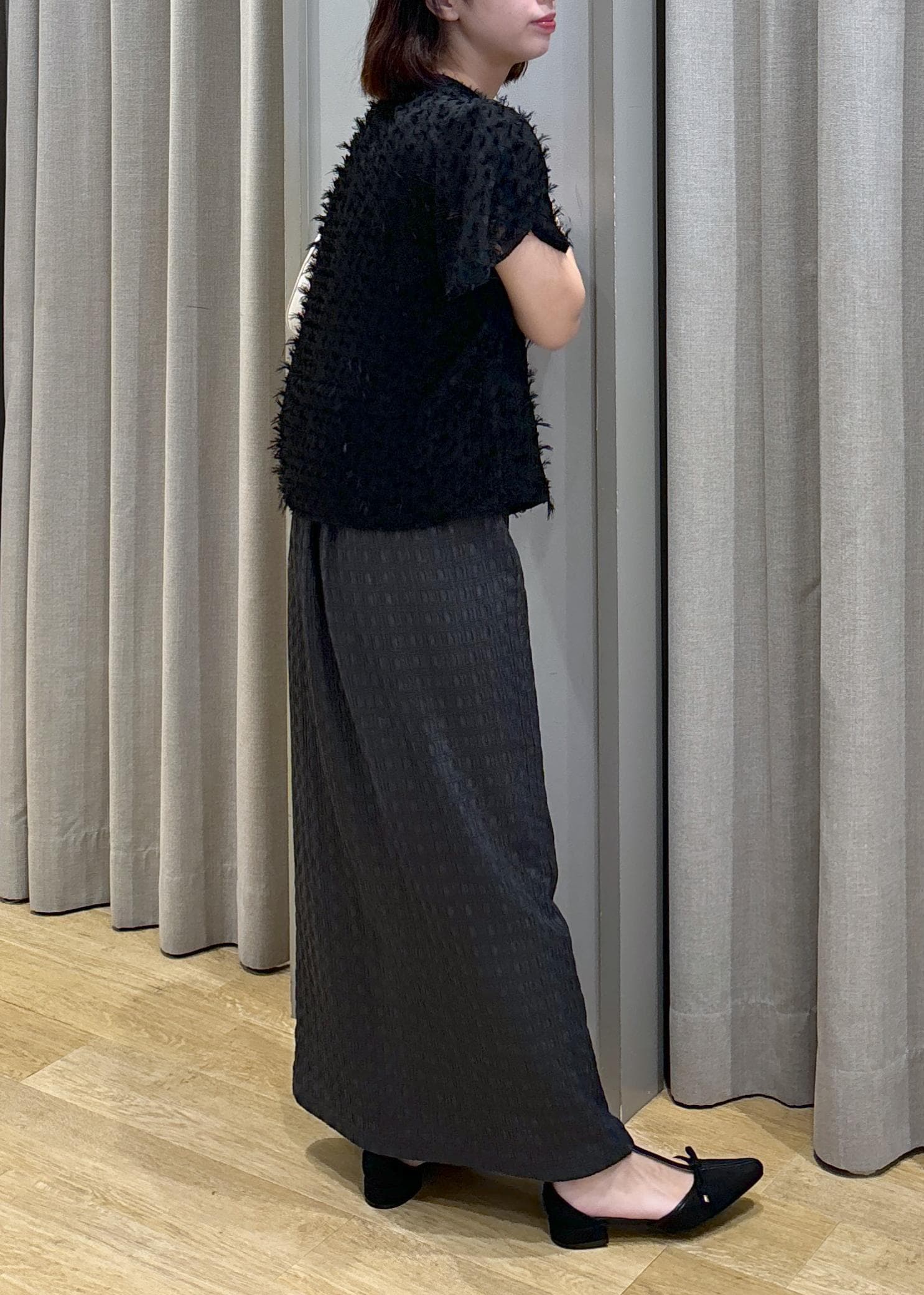 VISチューリップスリーブジャガードスキッパーブラウスブラック / F¥2,963レビュー身長158cm、Fサイズ着用。