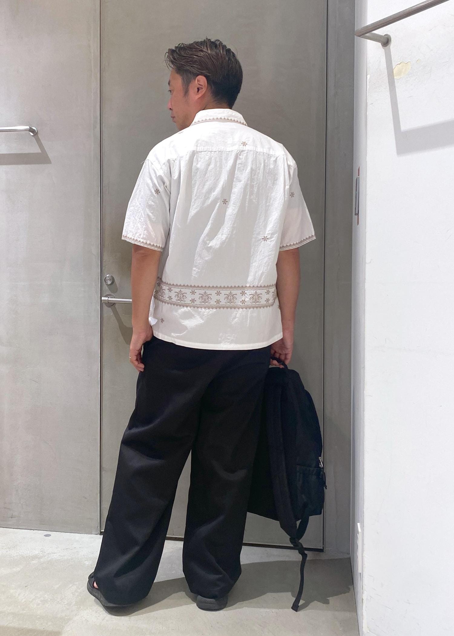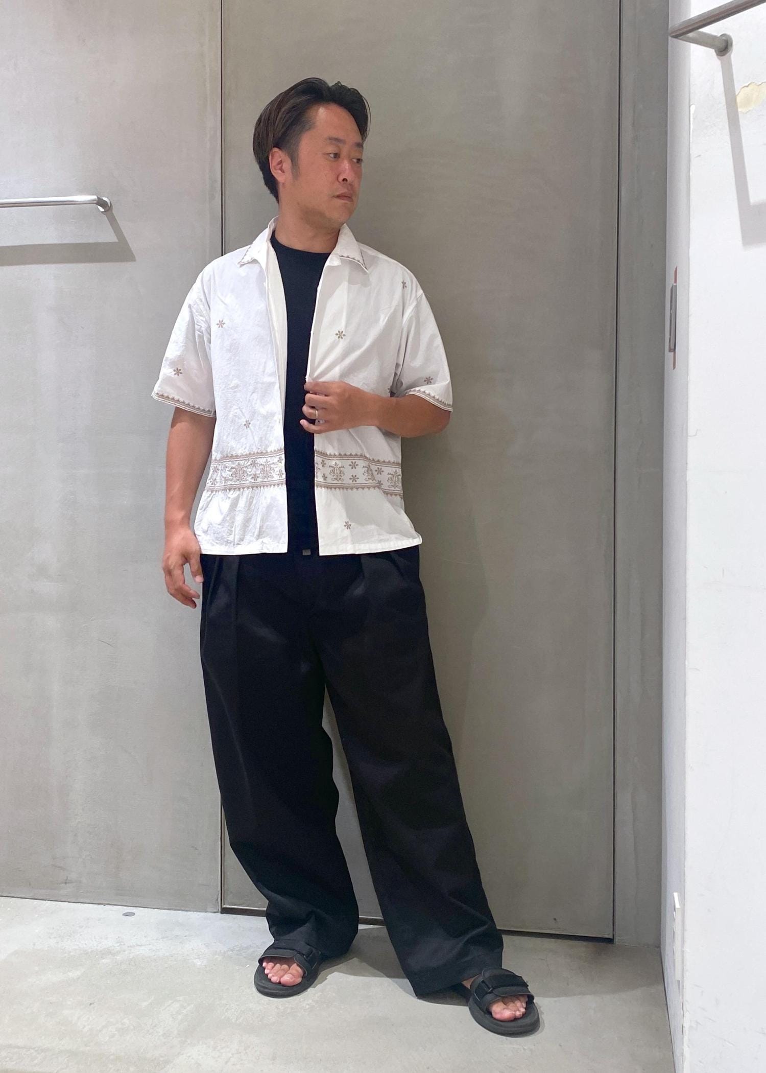 刺繍シャツコーデ