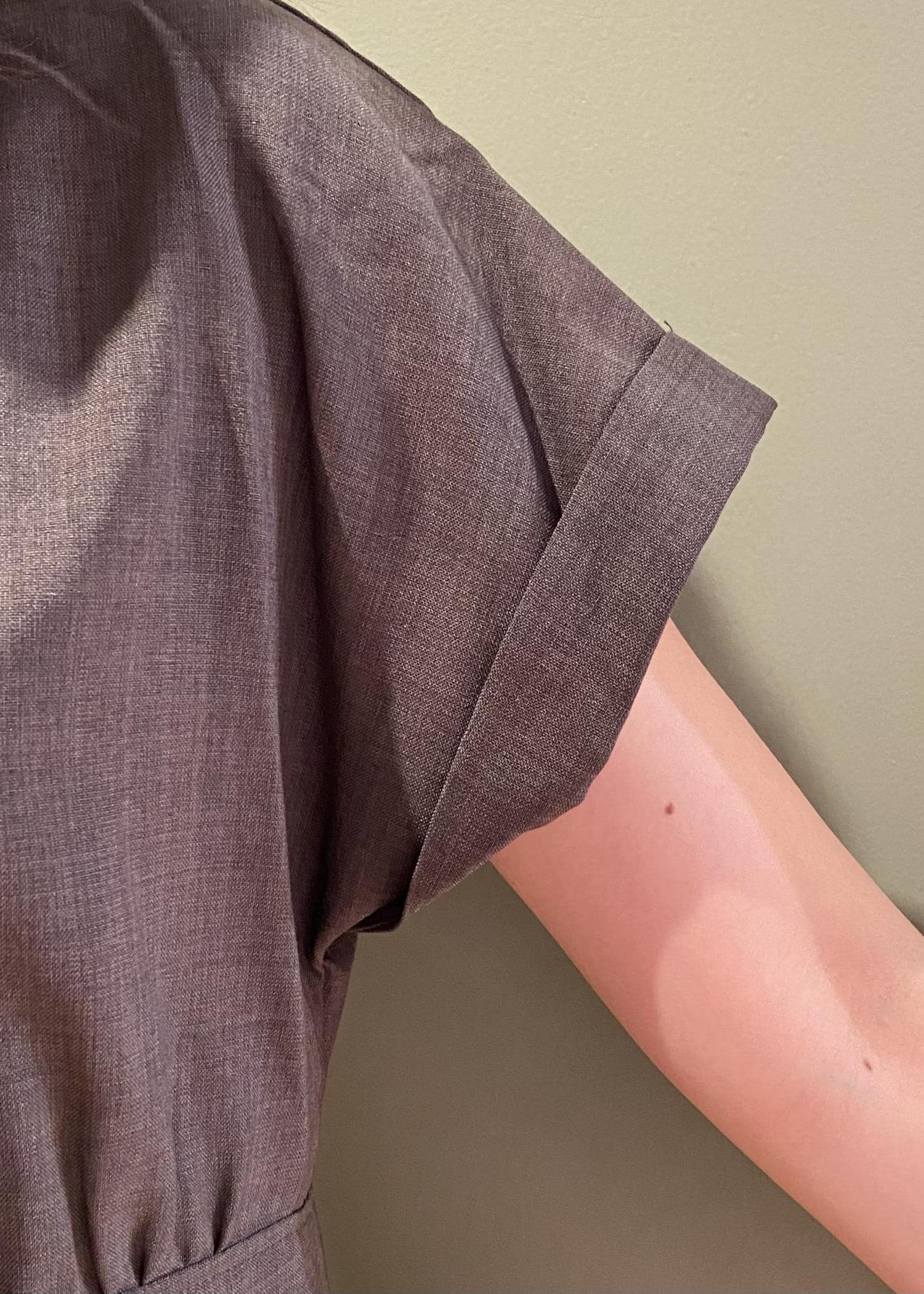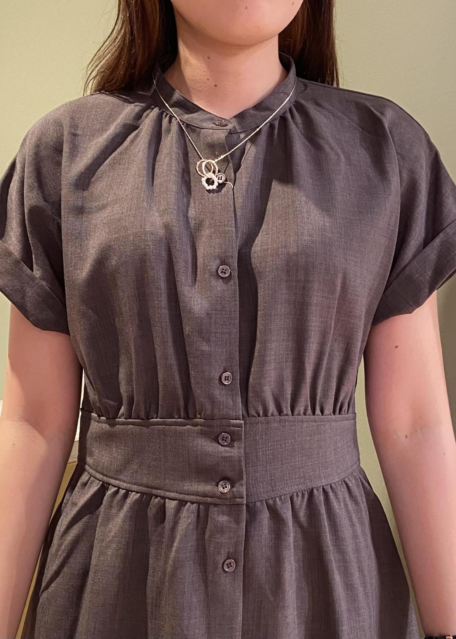 生地は麻調のポリエステル製でシワになりにくくドライタッチとなっております!