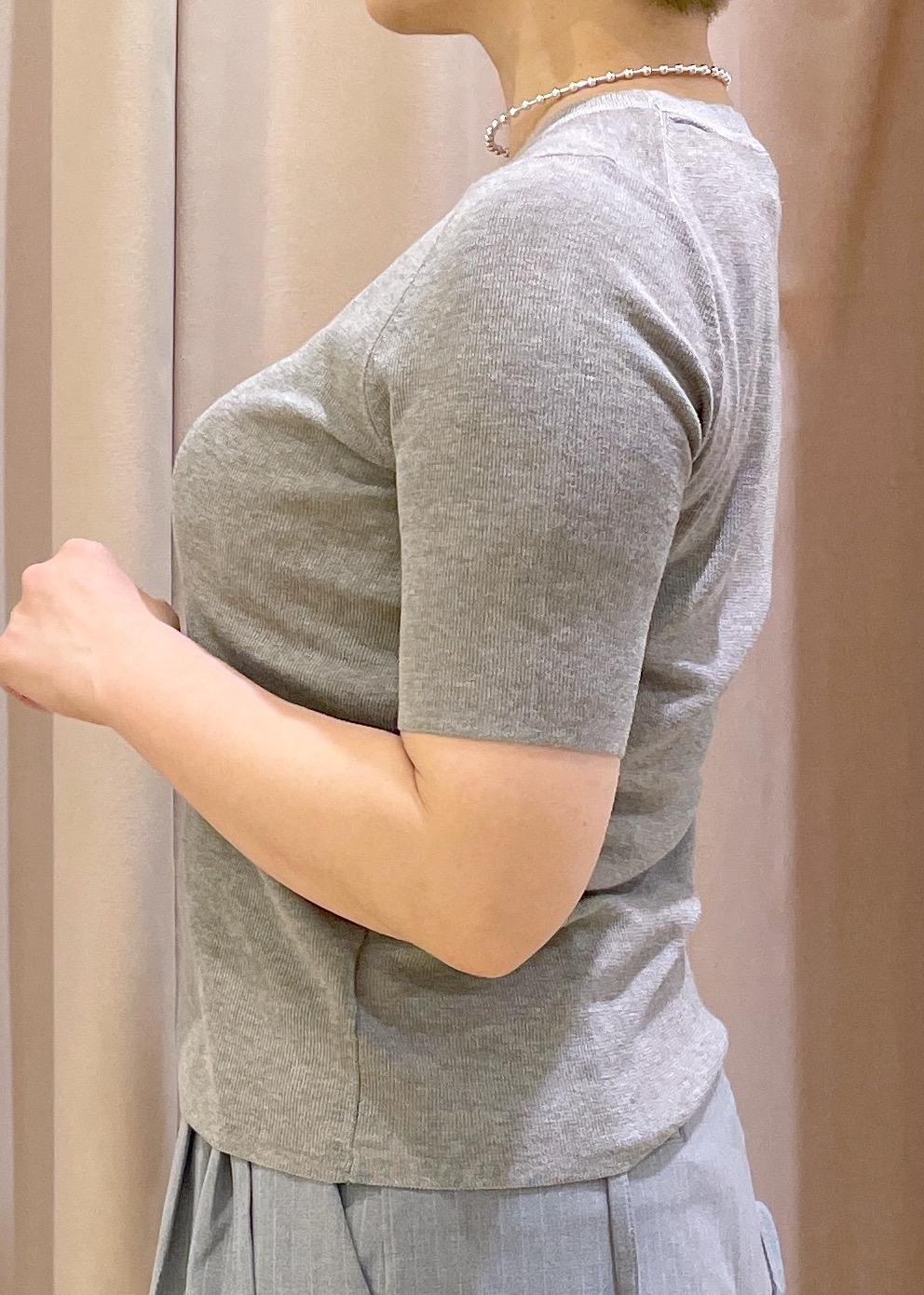 袖丈は、二の腕がスッキリ隠れる5分袖です。