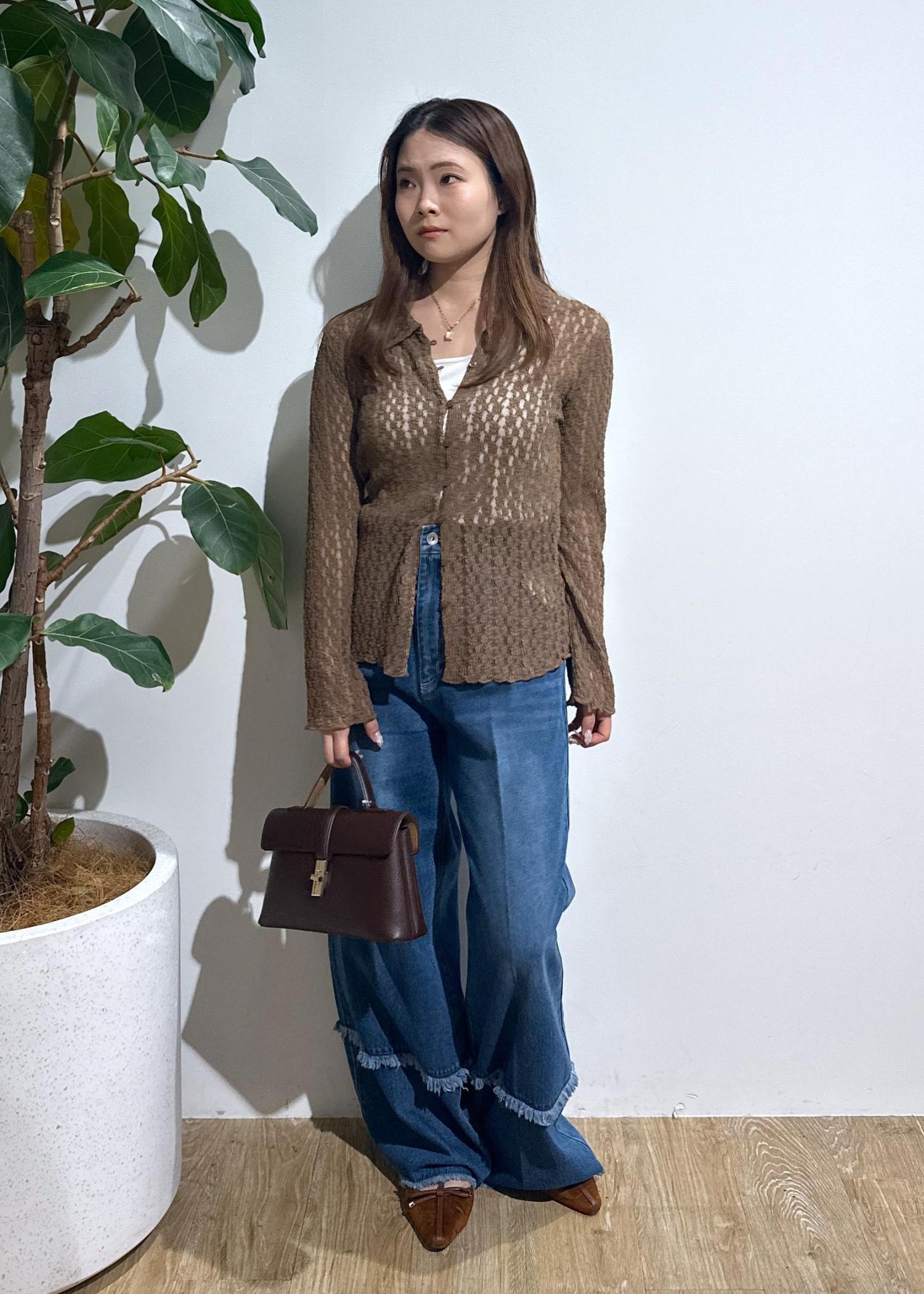 ボタンは程よく開けて、抜け感のあるスタイリングがおすすめです! -