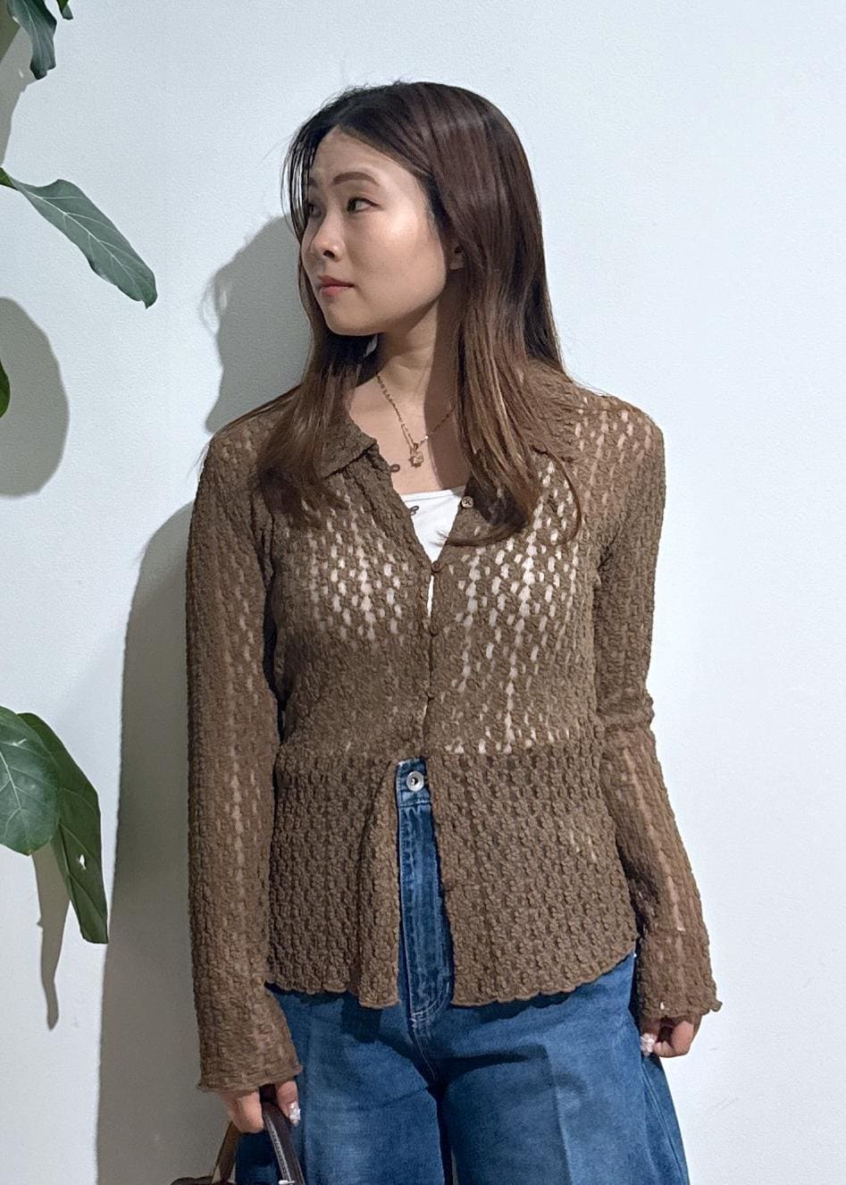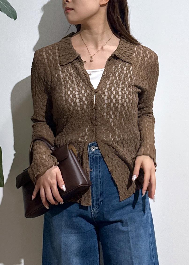 VISレースポロ襟カーディガンブラウン系 / F¥3,842レビュー伸縮性がある生地で、華奢見えするデザインです。