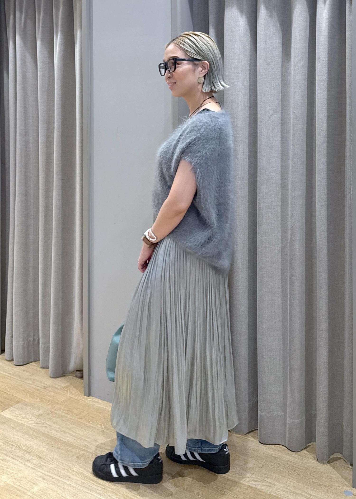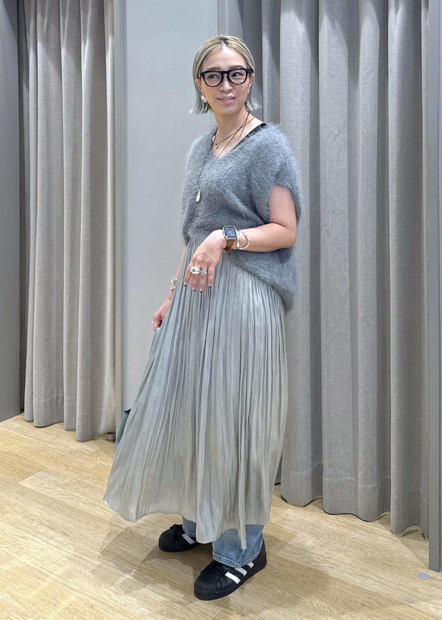 プリーツを巻きスカートのようにレイヤードアイテムにしました!