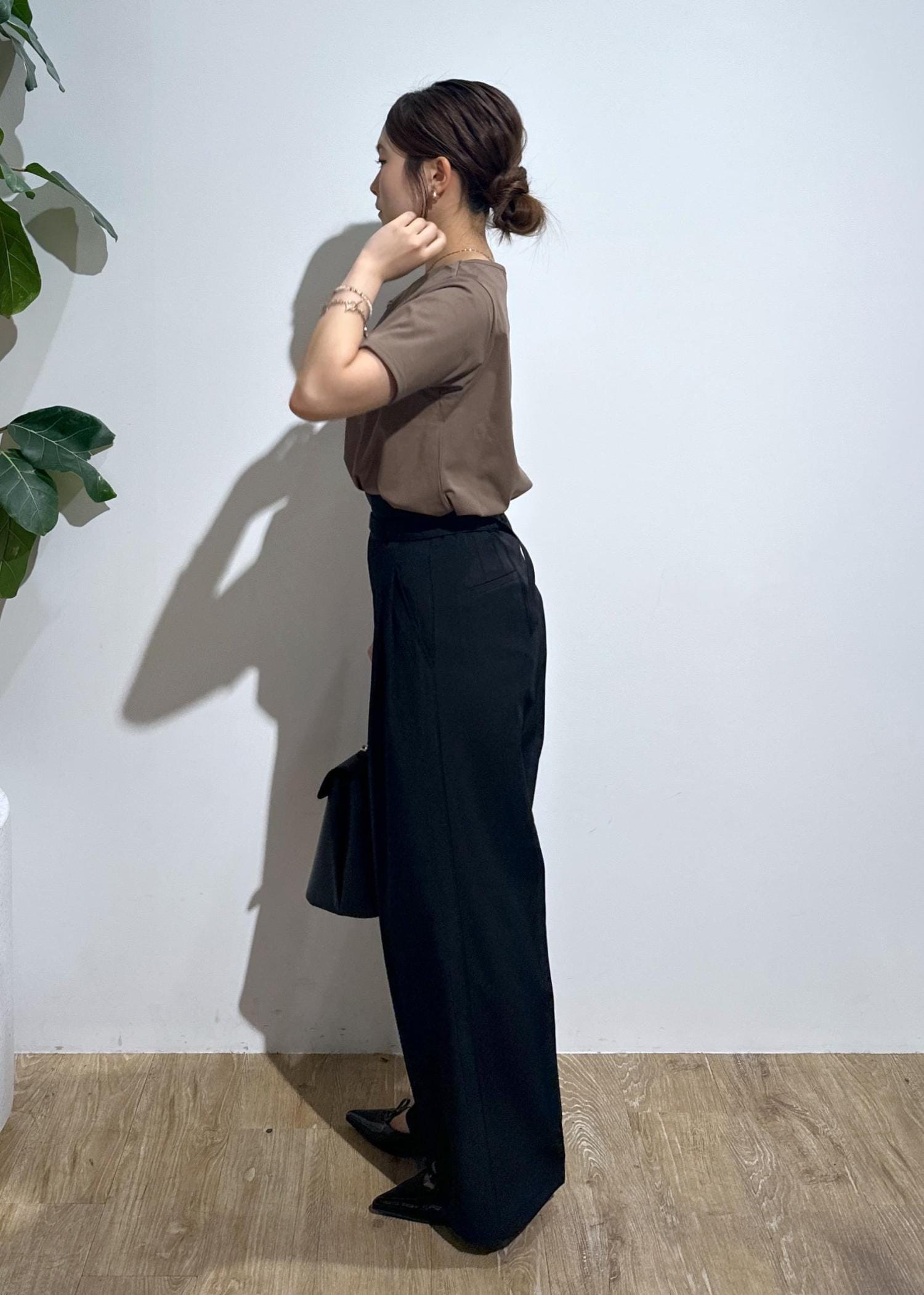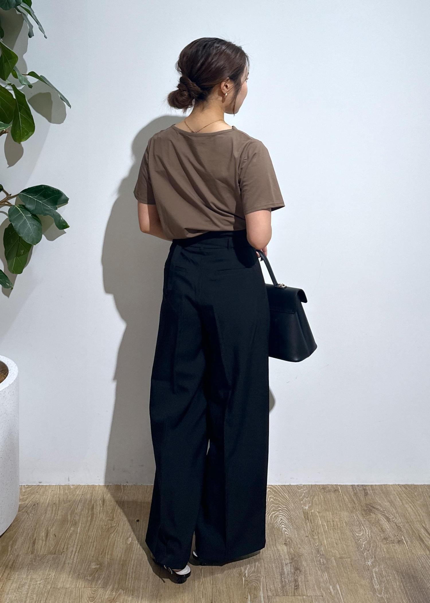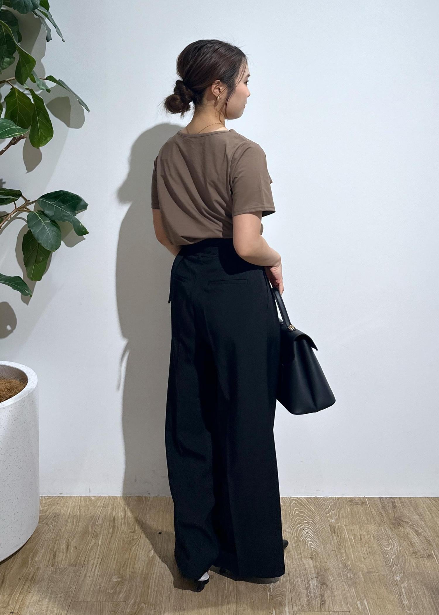 VIS【新色追加】【防シワ/接触冷感】ベルトディテールタックワイドスラックスパンツブラック / SS¥6,589レビューSSサイズ着用で、丈感サイズ感とちょうどよく着用出来ました。
