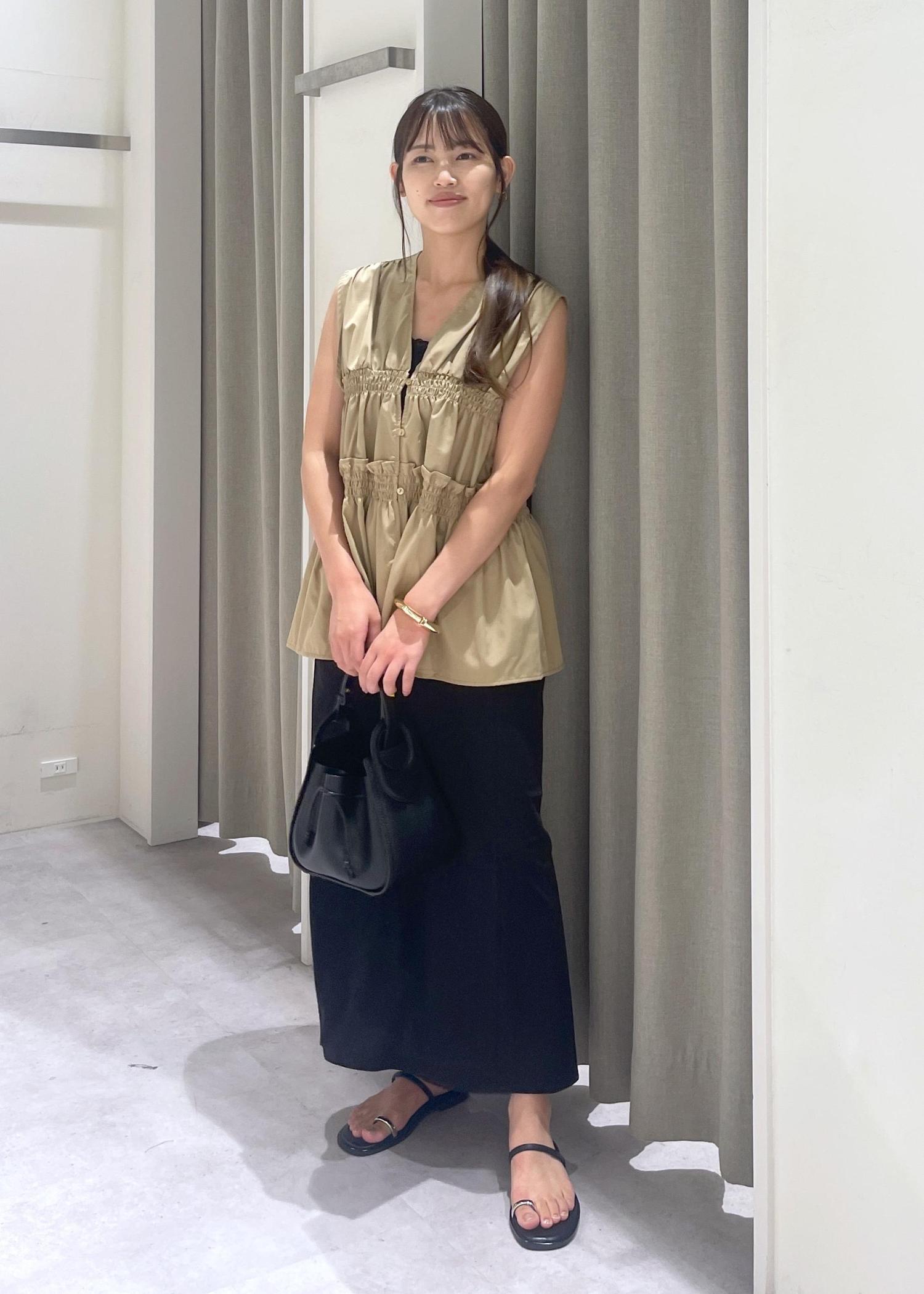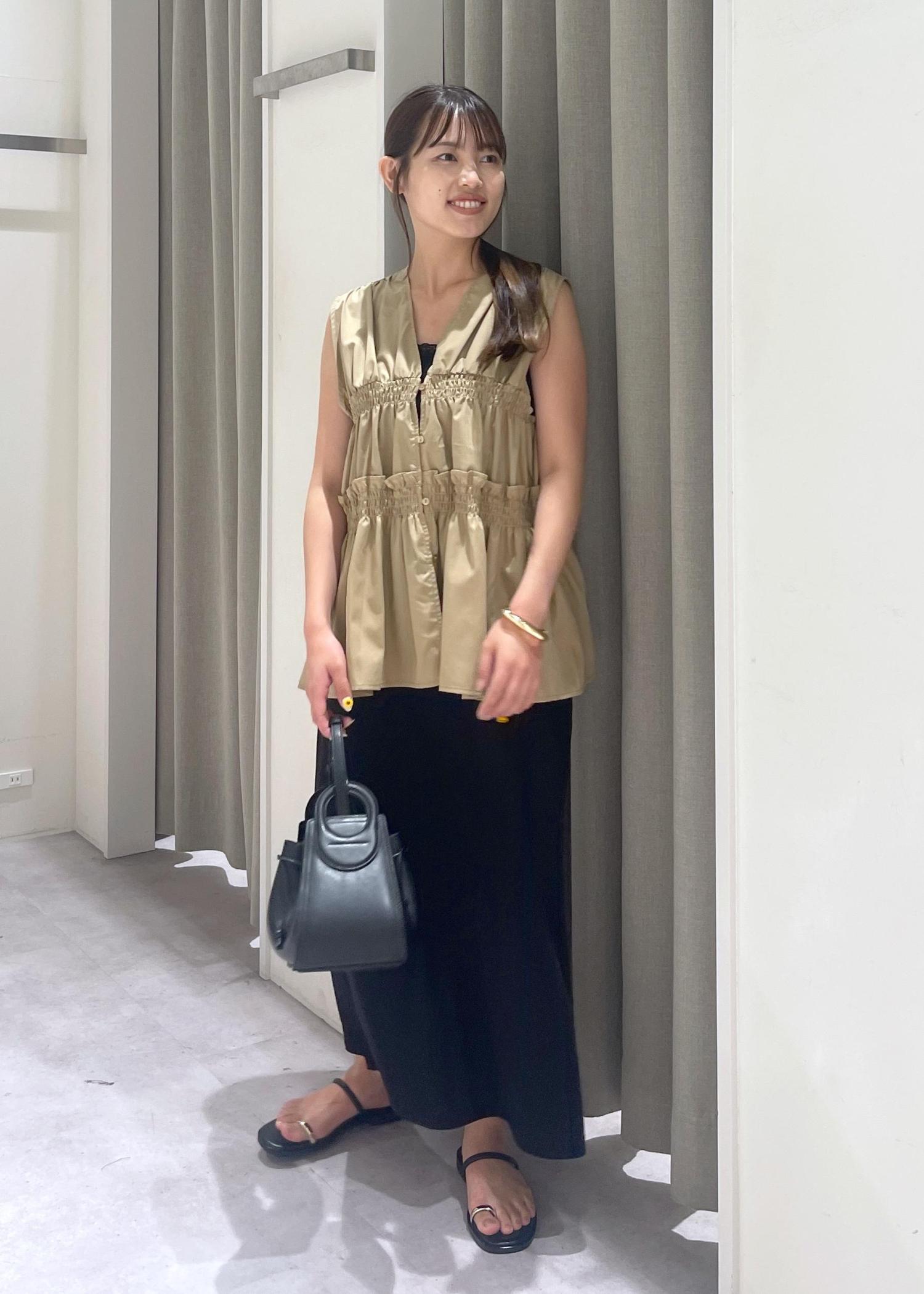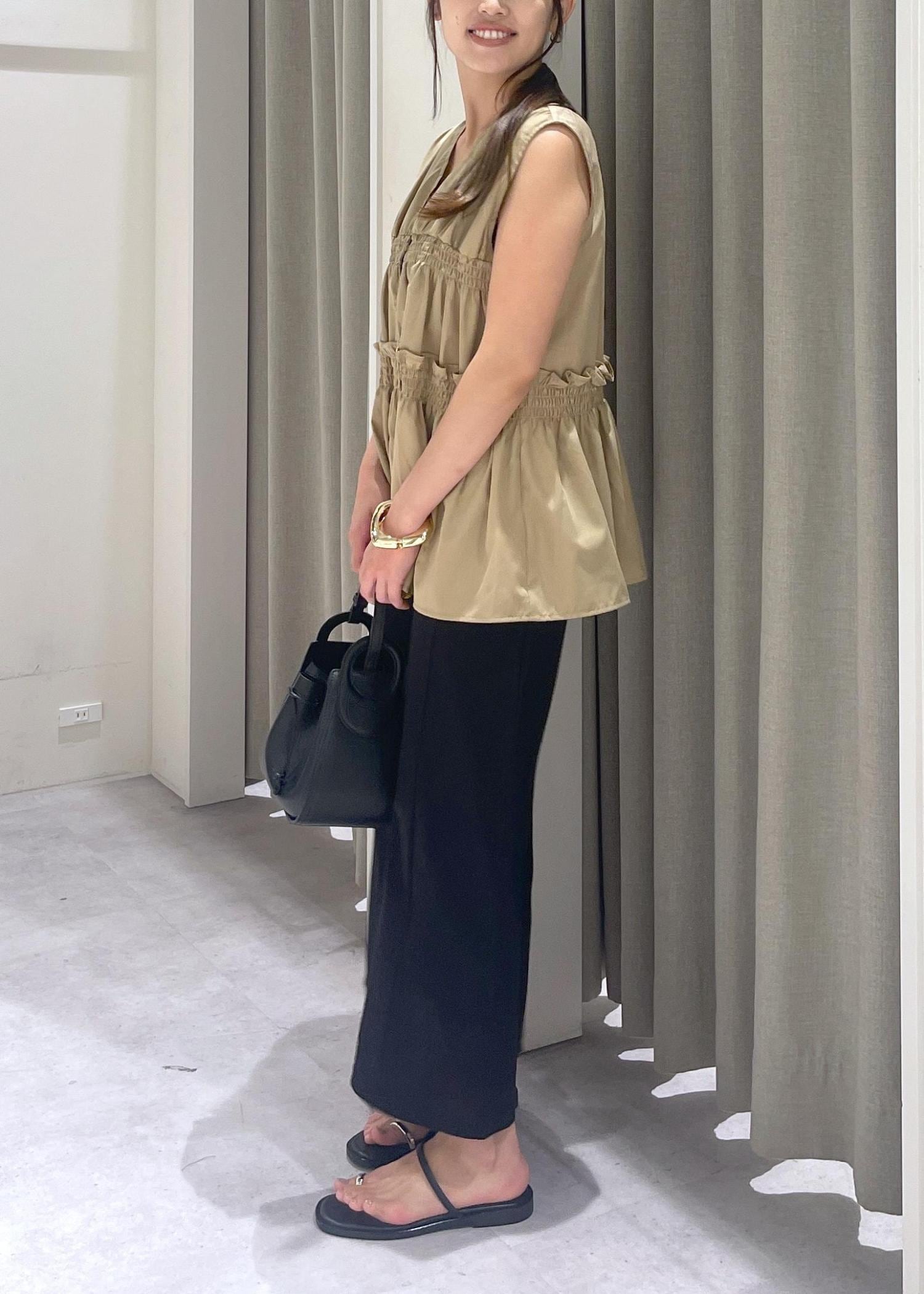 ロングのパンツに合わせると足元に抜け感が出て女性らしさをプラスできます!
