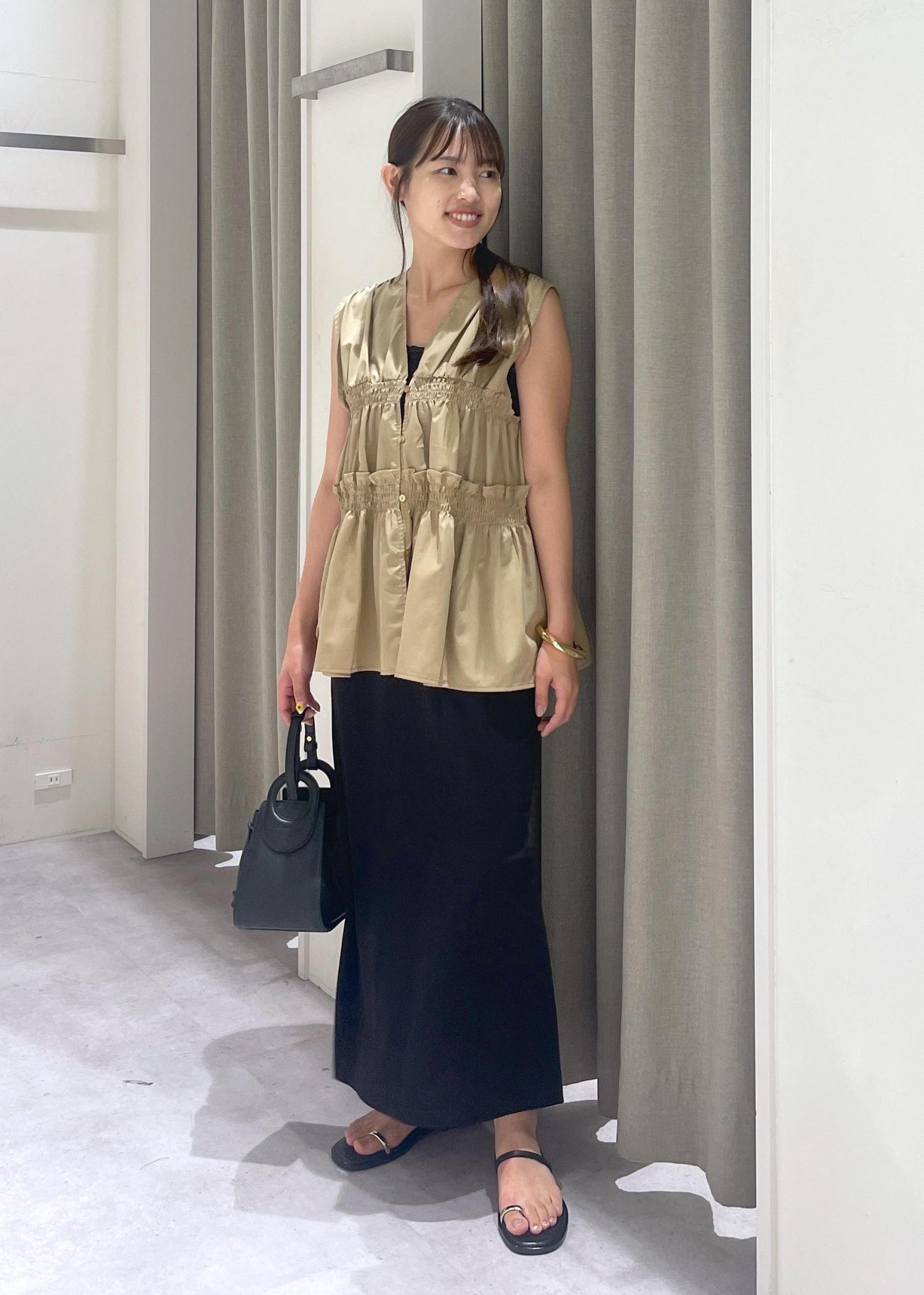 袖口が少し広めに空いているので二の腕や肩周りに隙間ができ細見え効果ありです◎