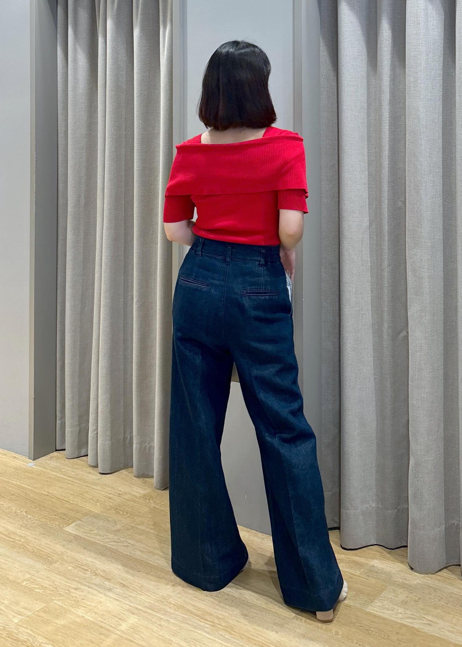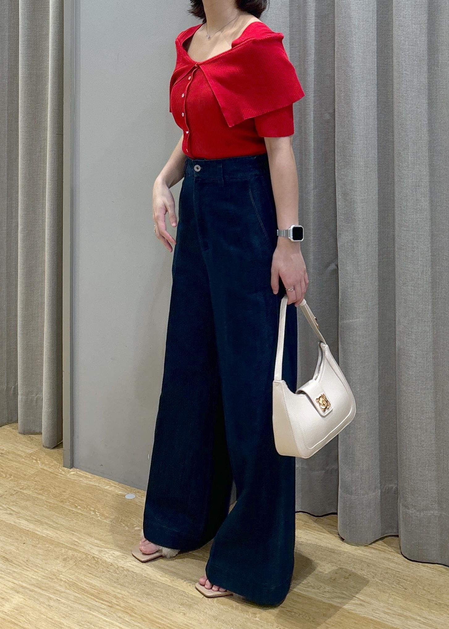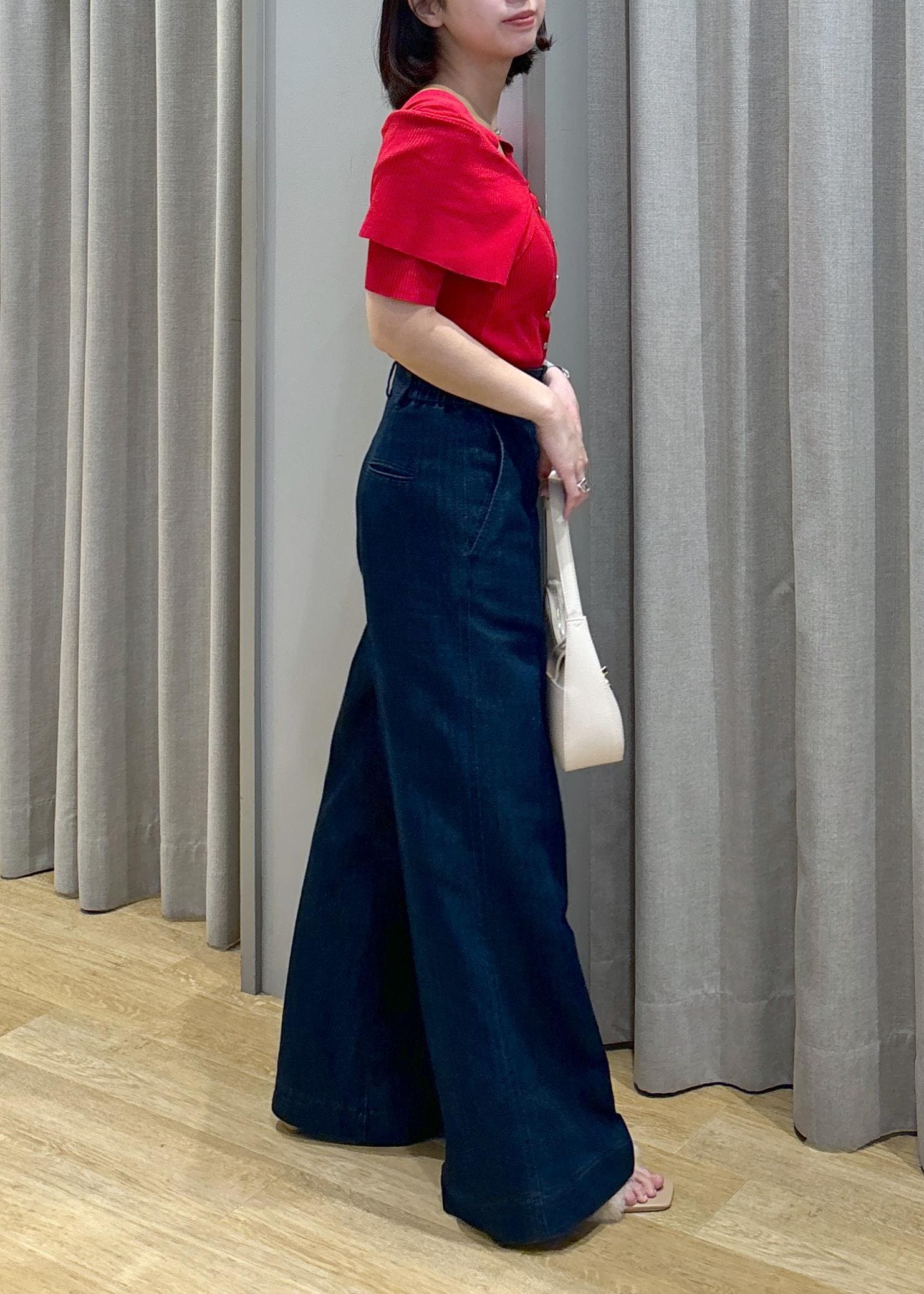 ビッグカラーオフショルニット×グリッターワイドデニム