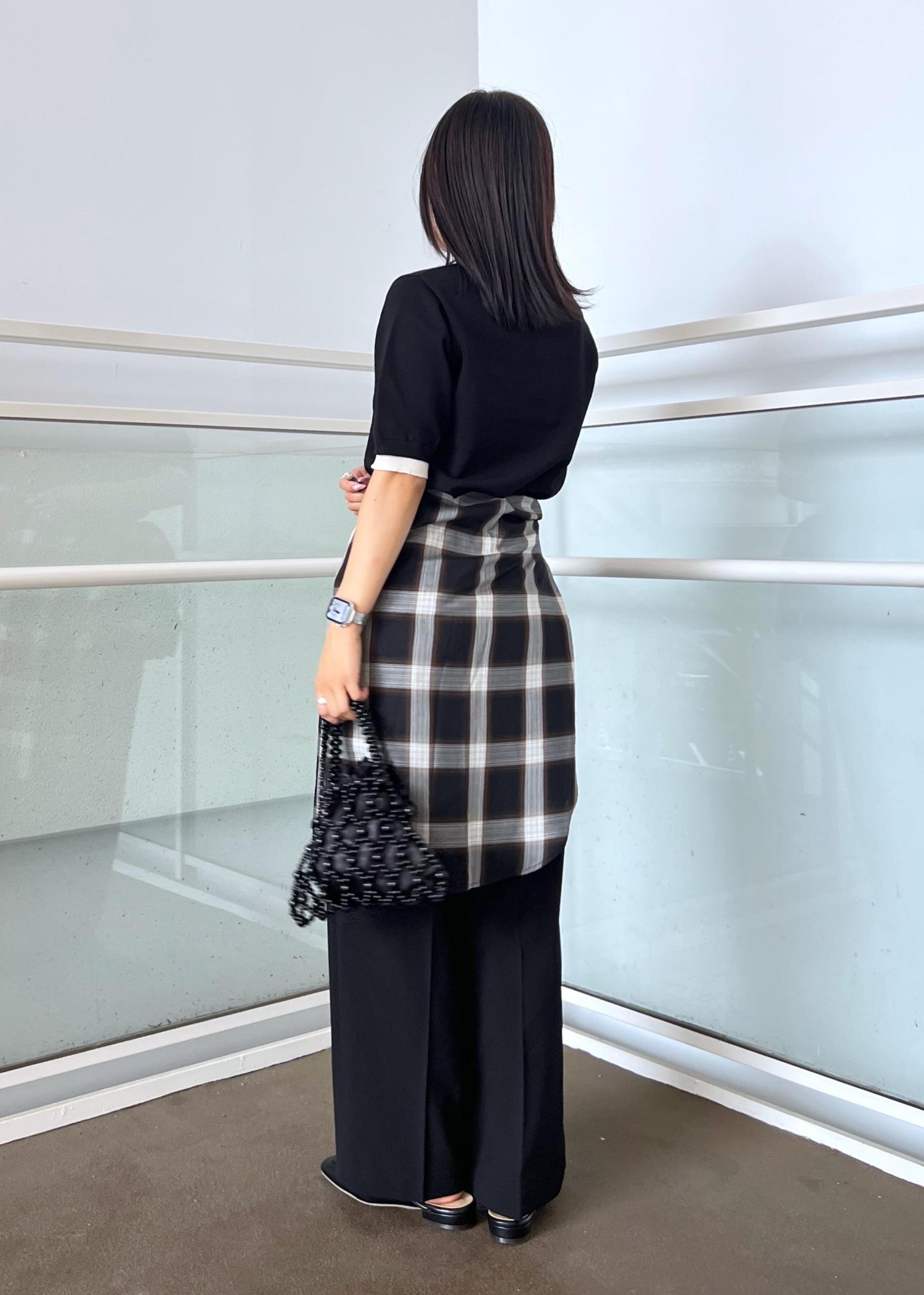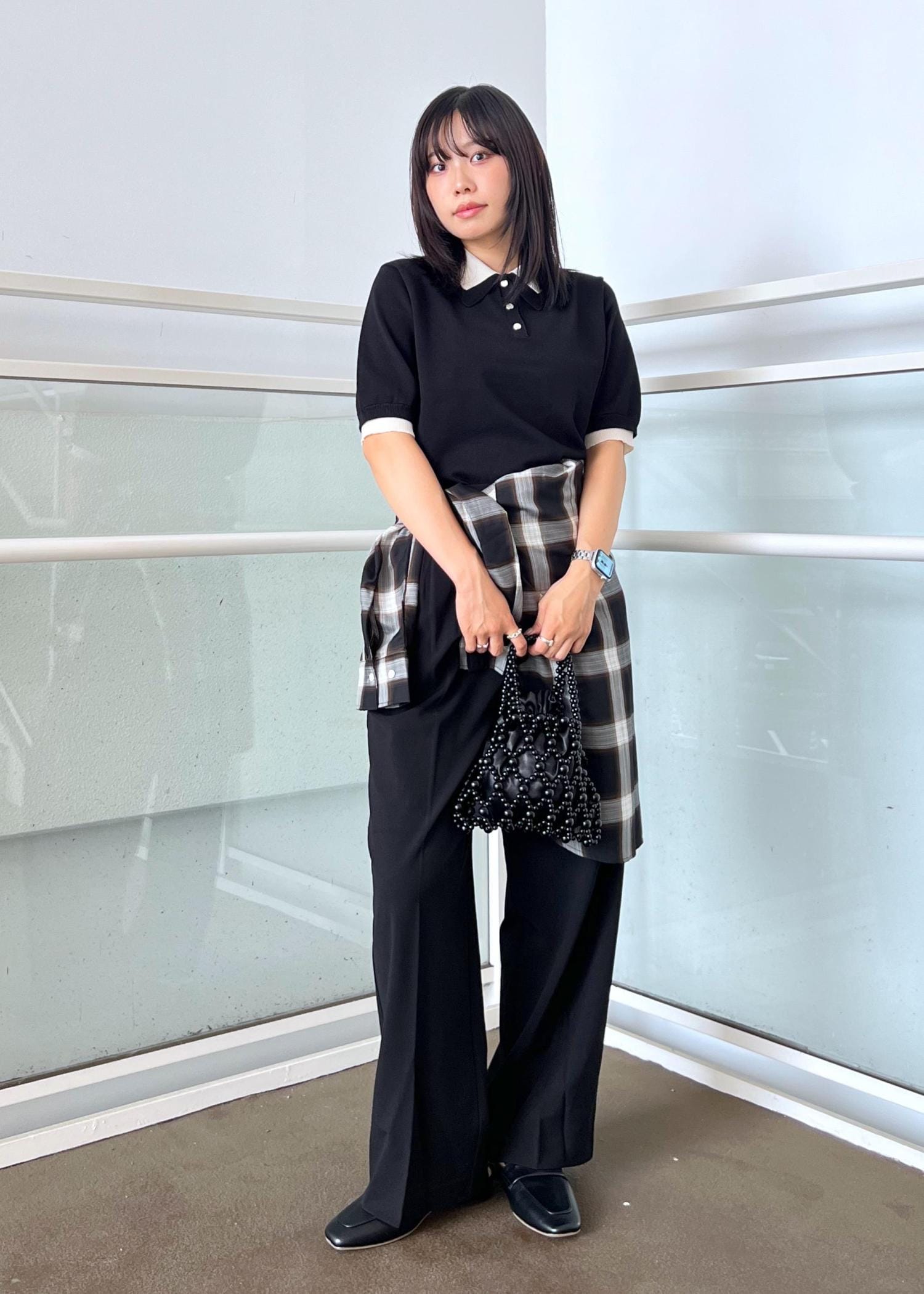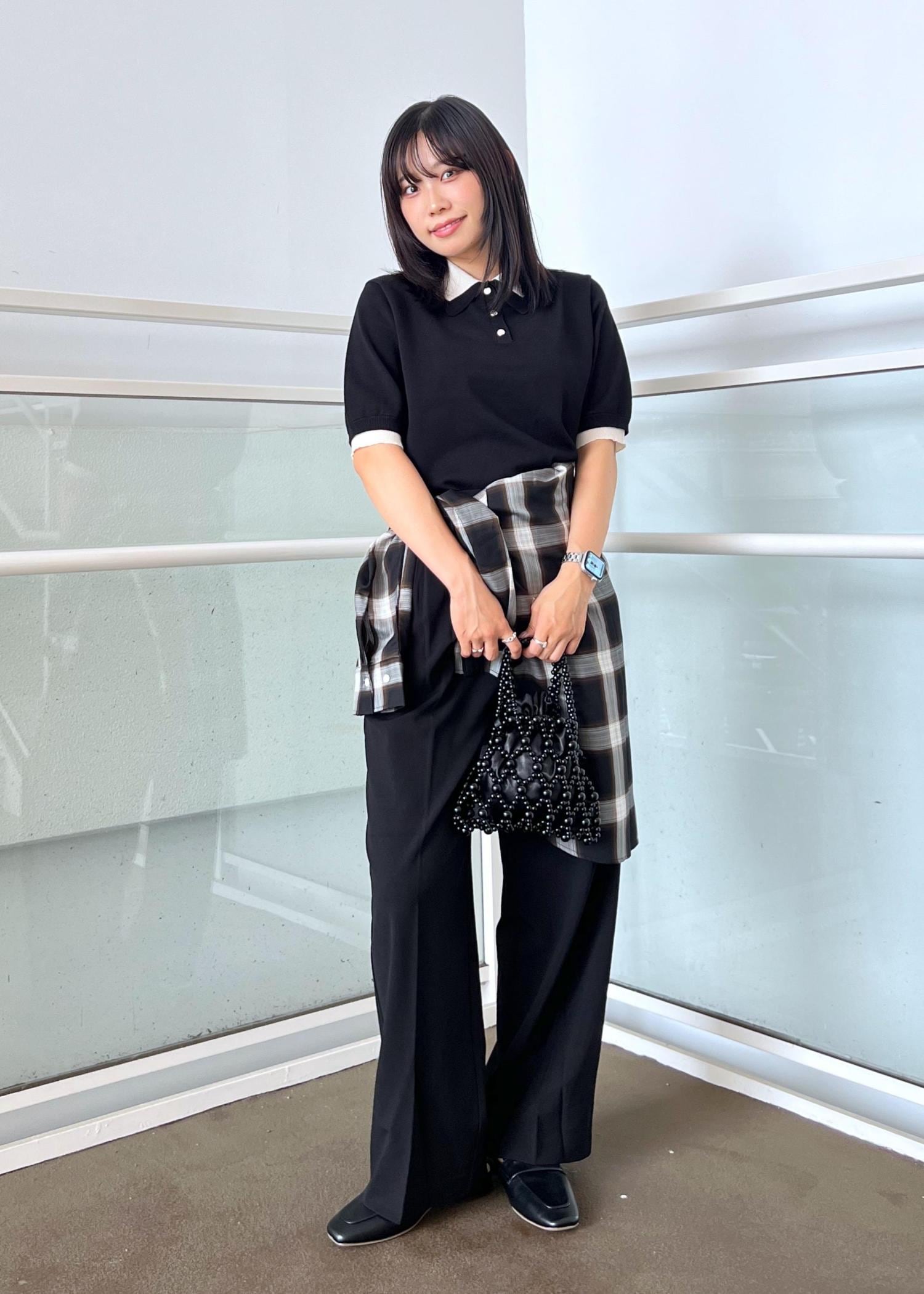 ベーシックカラーのブラックを基調とした、秋っぽさを取り入れたコーデを組みました!