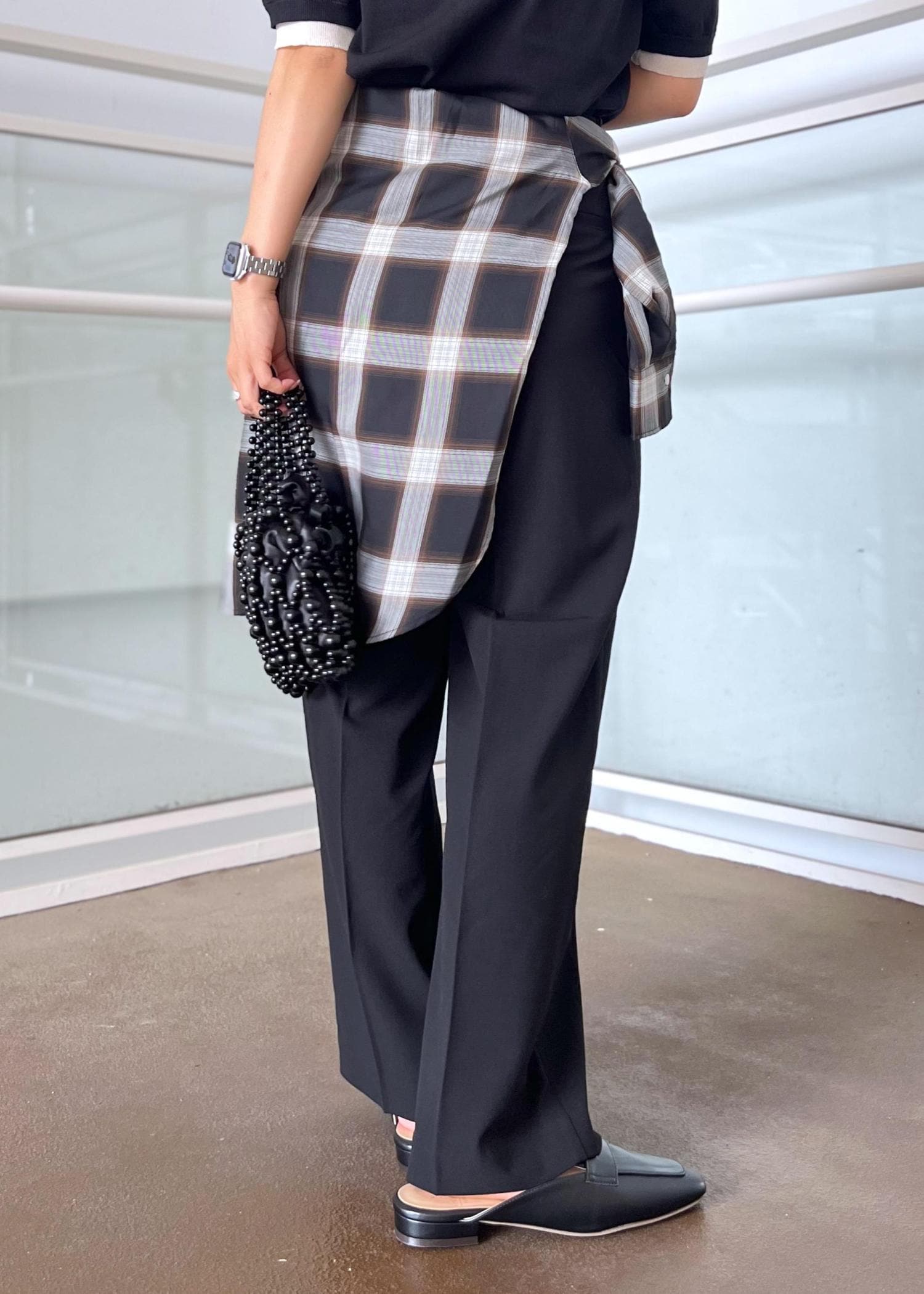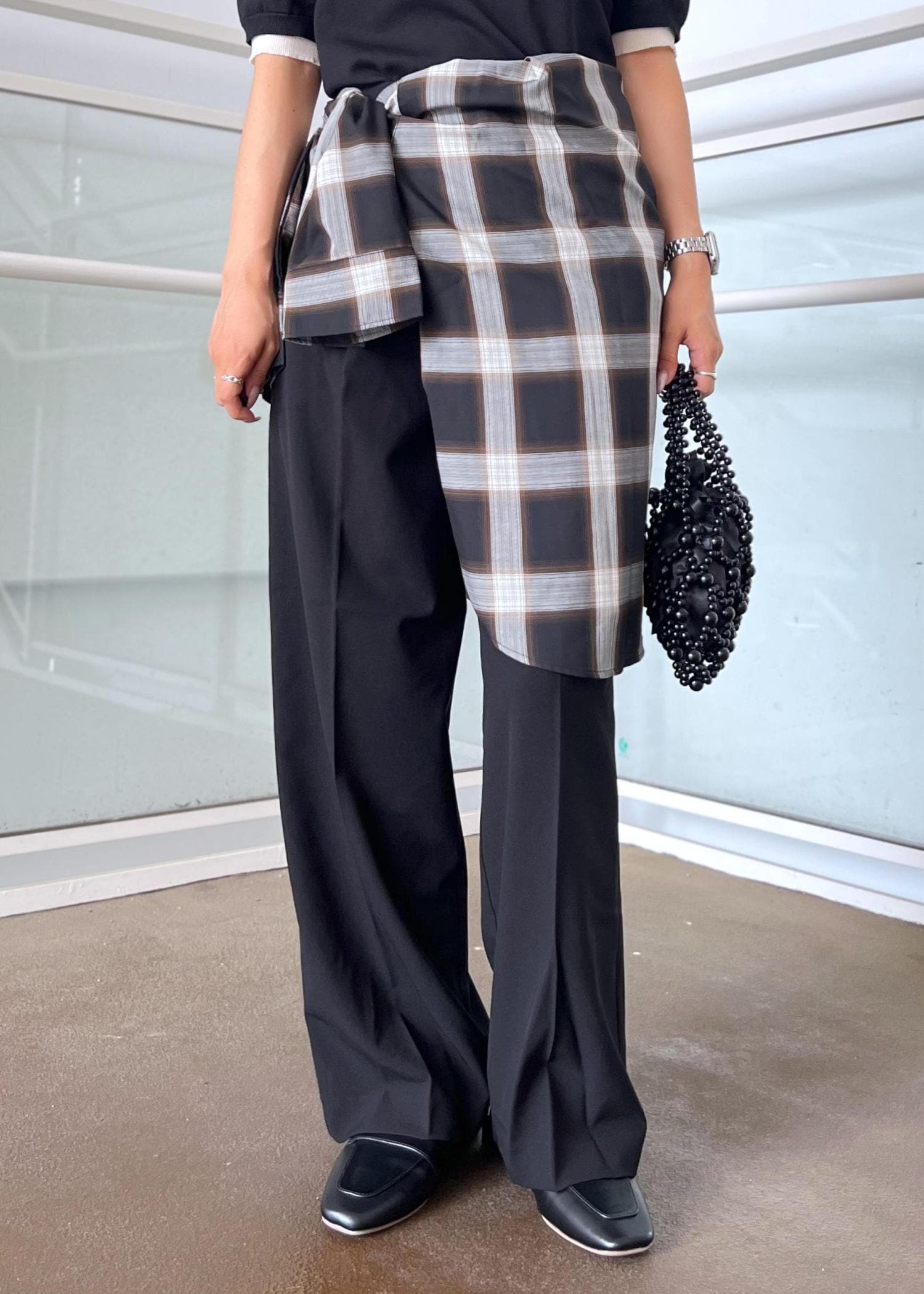 華奢でフェミニンなショルダーストラップとメンズライクな2タックパンツのミックス感がポイントです。