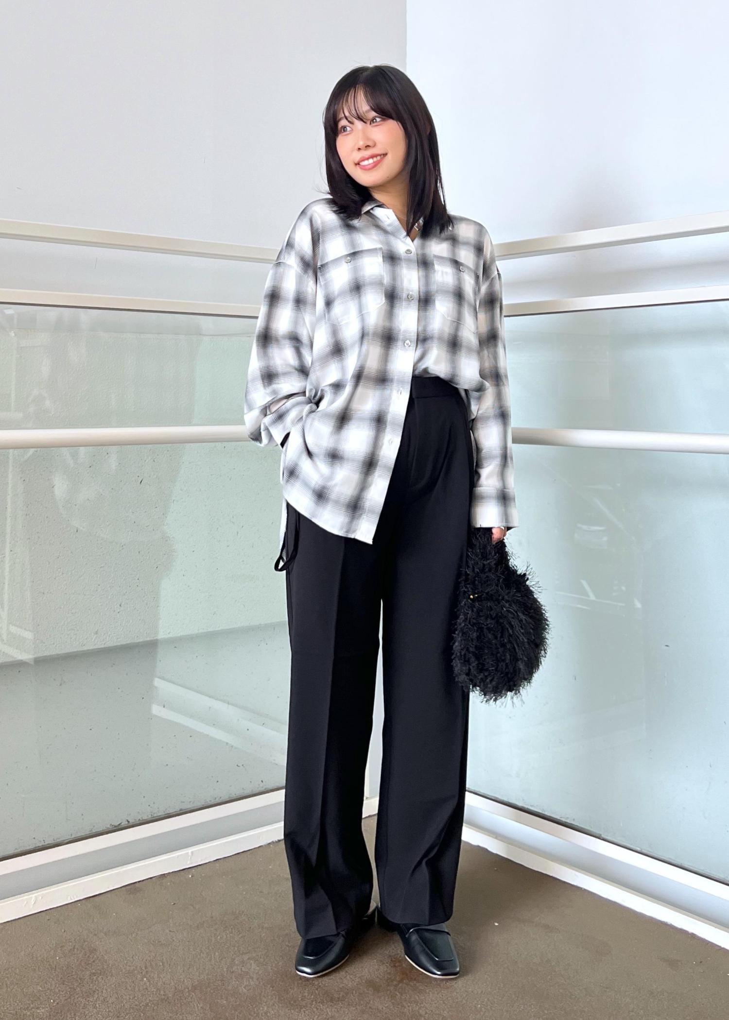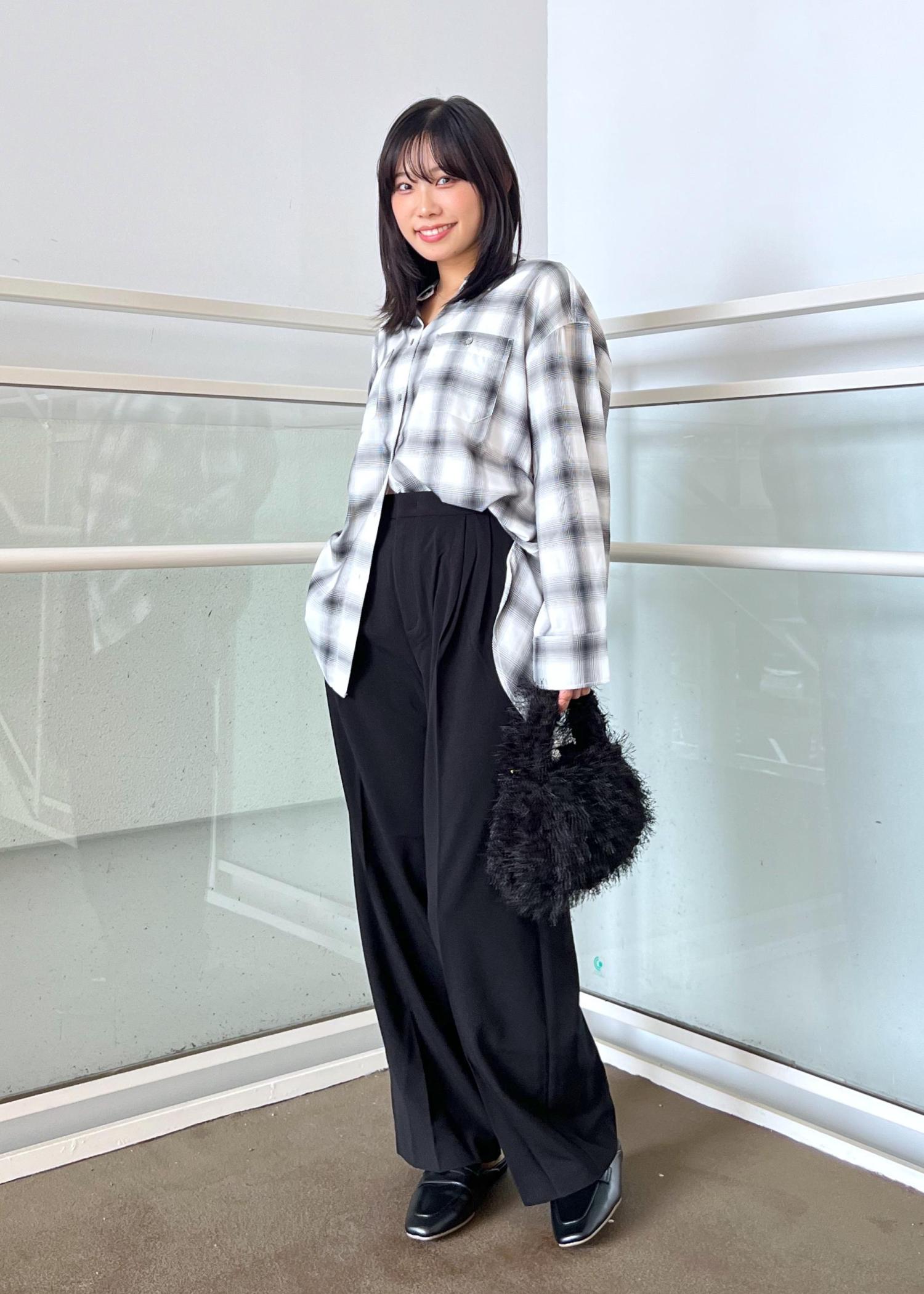 チェックシャツのゆったりコーデ