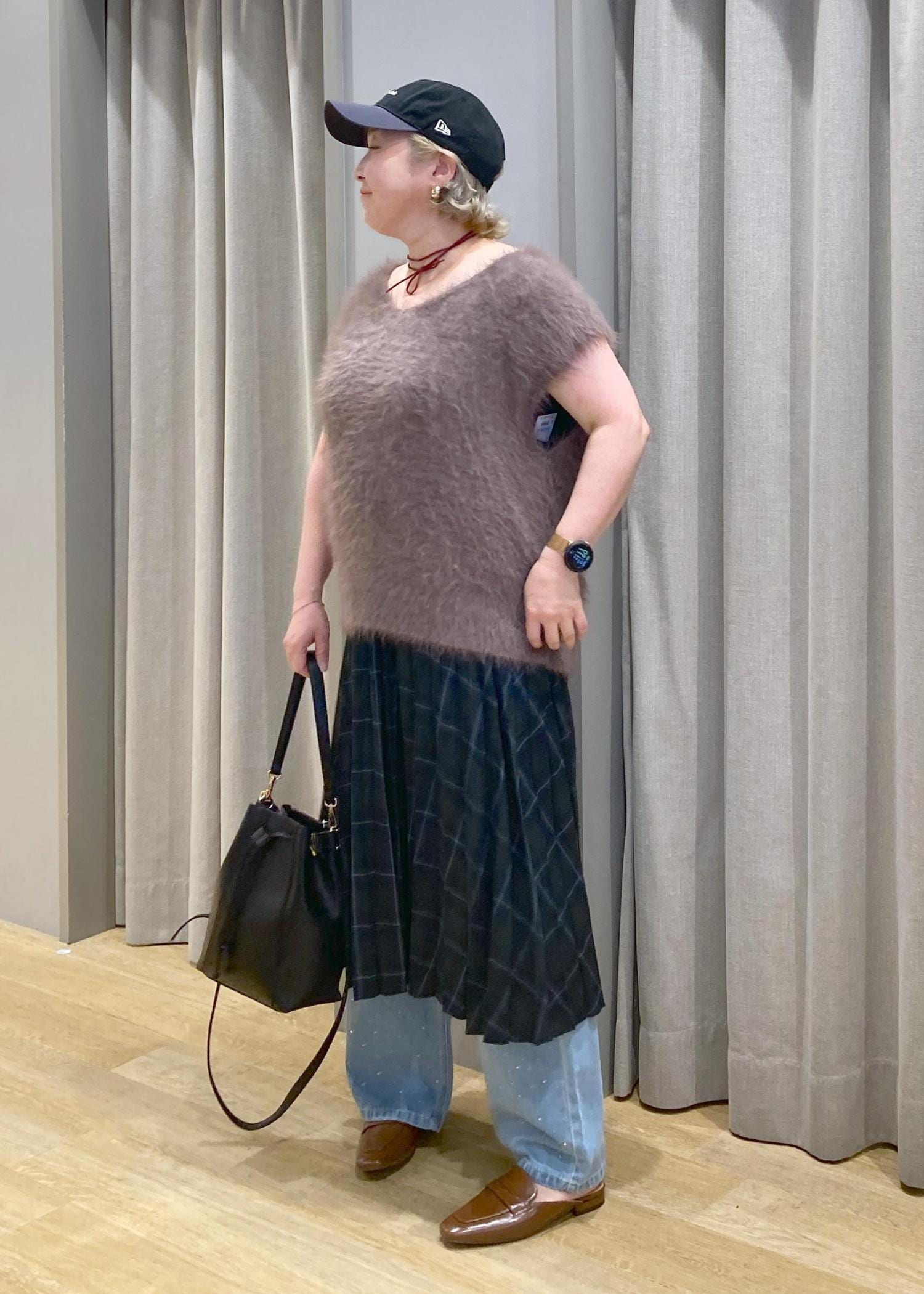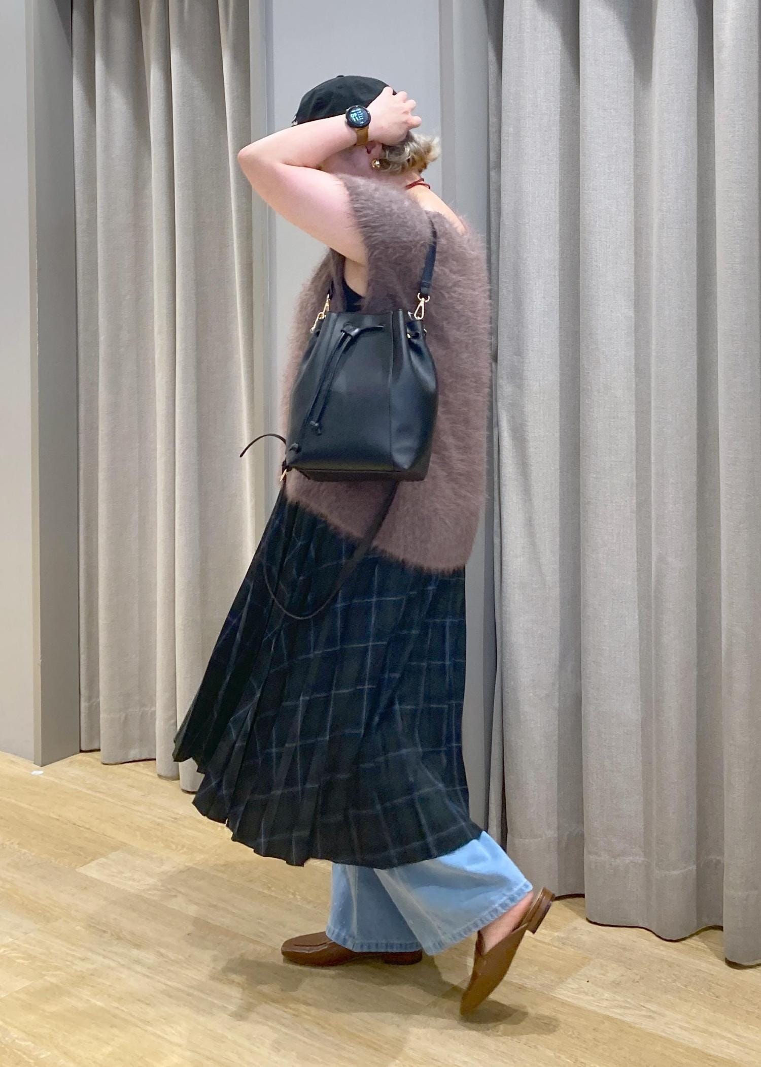 オーバーサイズのファーベストは、ゆったりして、二の腕もカバーしてくれるので嬉しいです