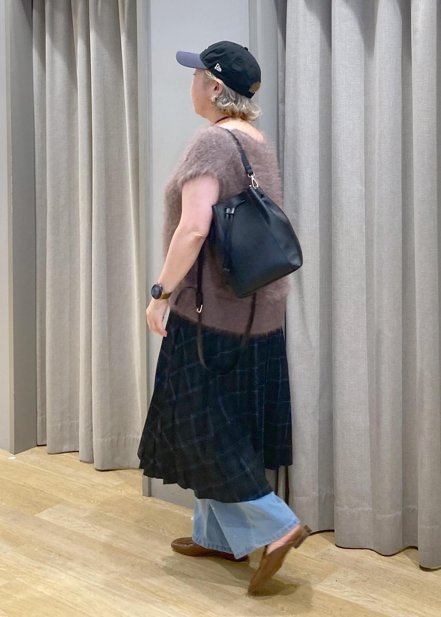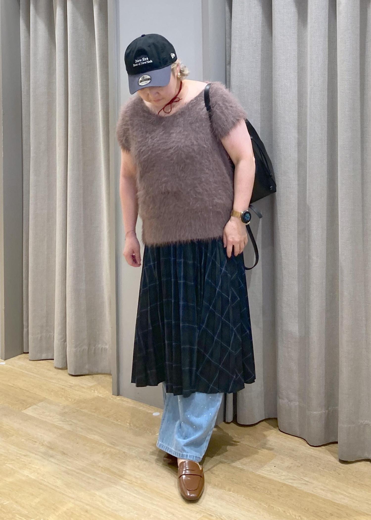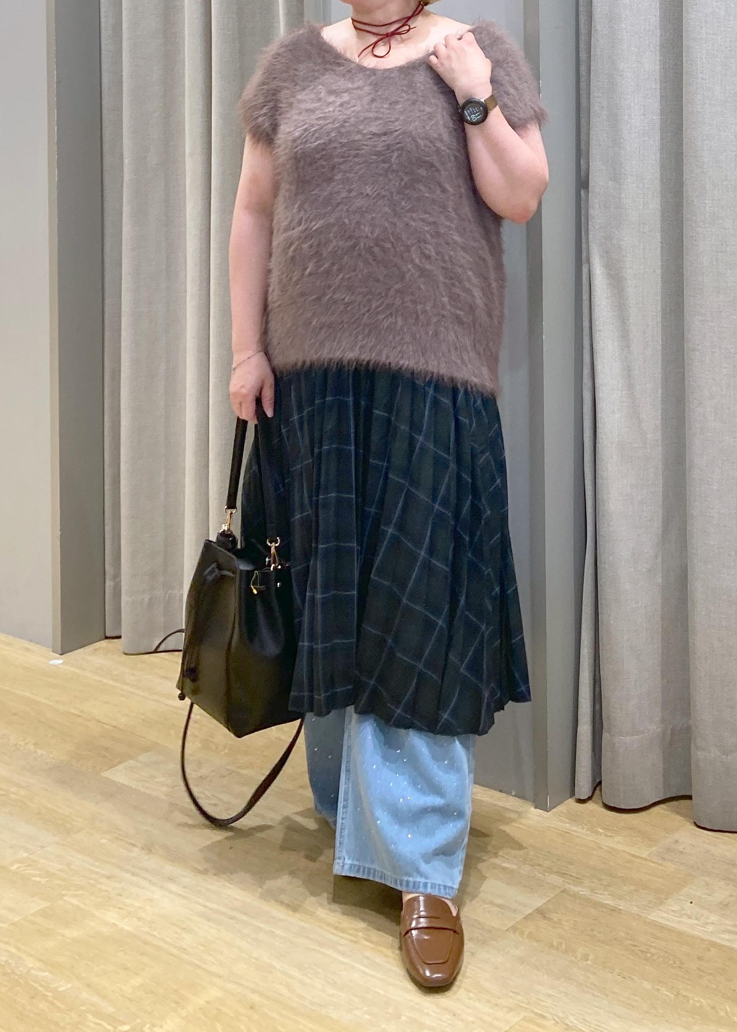 丈が、少し短く感じるので靴下合わせやレイヤード、ブーツとの相性バツグンです -