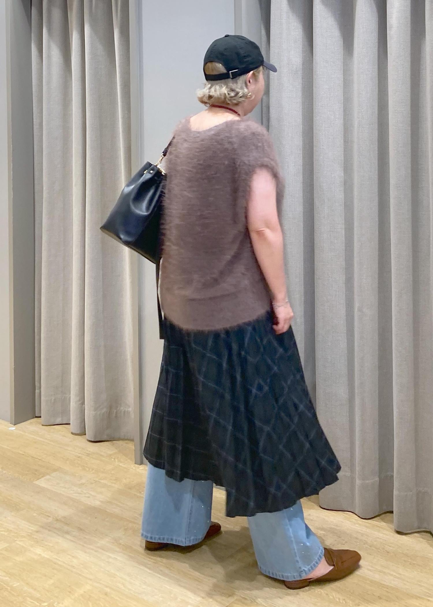 アームホールはゆったり目なので、インナーは必須ですが、キャミなどで一枚着として使えたり、レイヤードアイテムとしても、秋冬に使えるアイテムです -