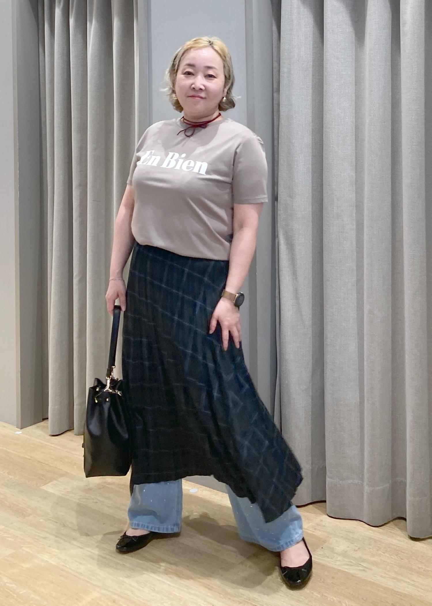 チェックスカートだけじゃ制服っぽくなりがちなスカートも