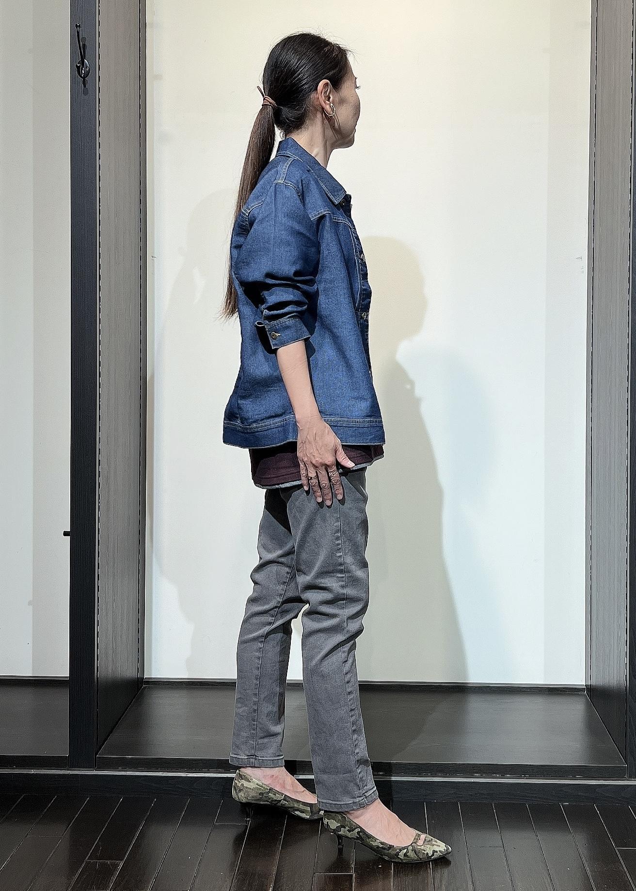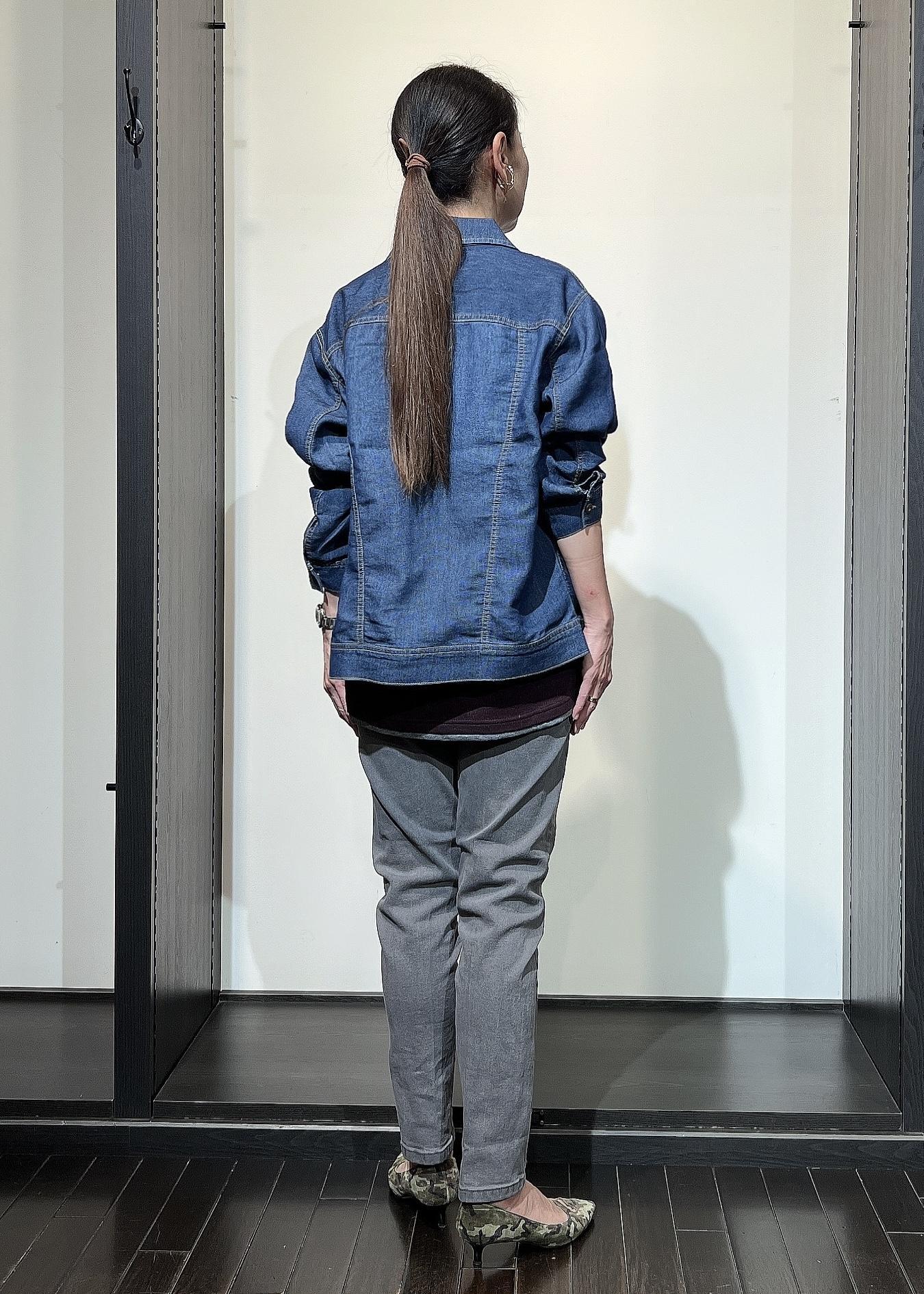 チルブルゾンをプラス、スリムテーパードデニムと合わせて秋カラーにしました。