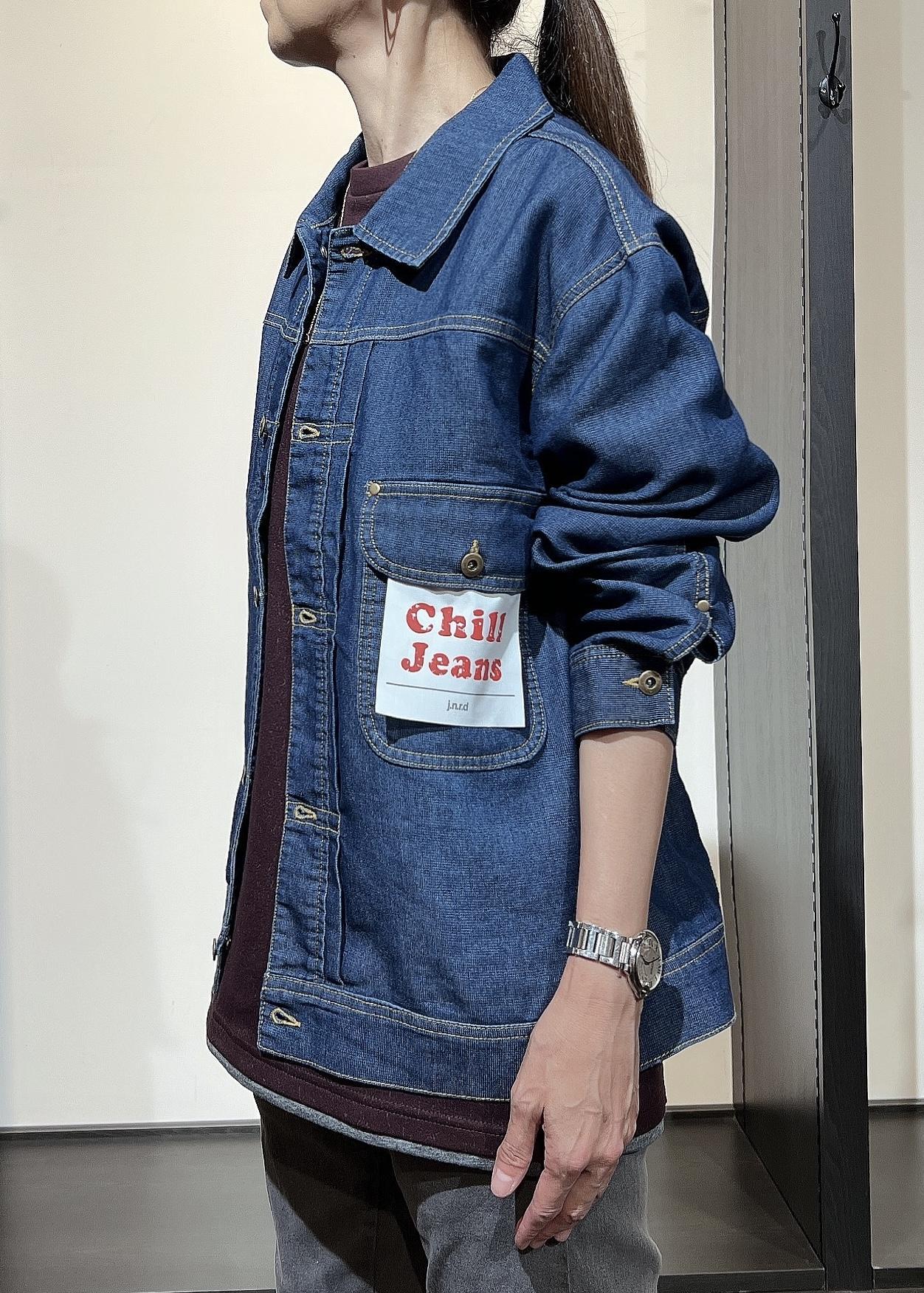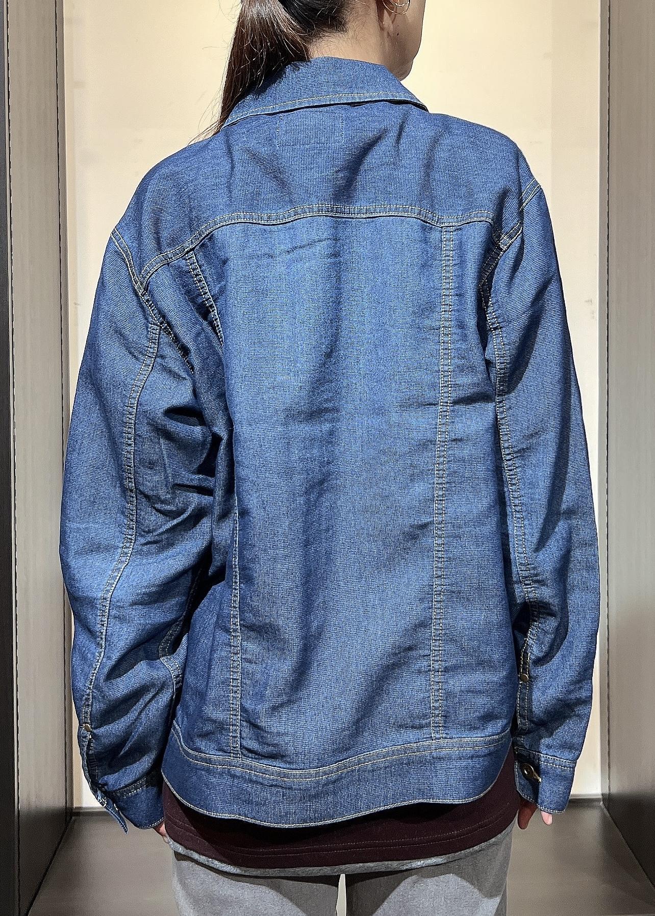Gジャンタイプのデニムブルゾンで清涼感があります。