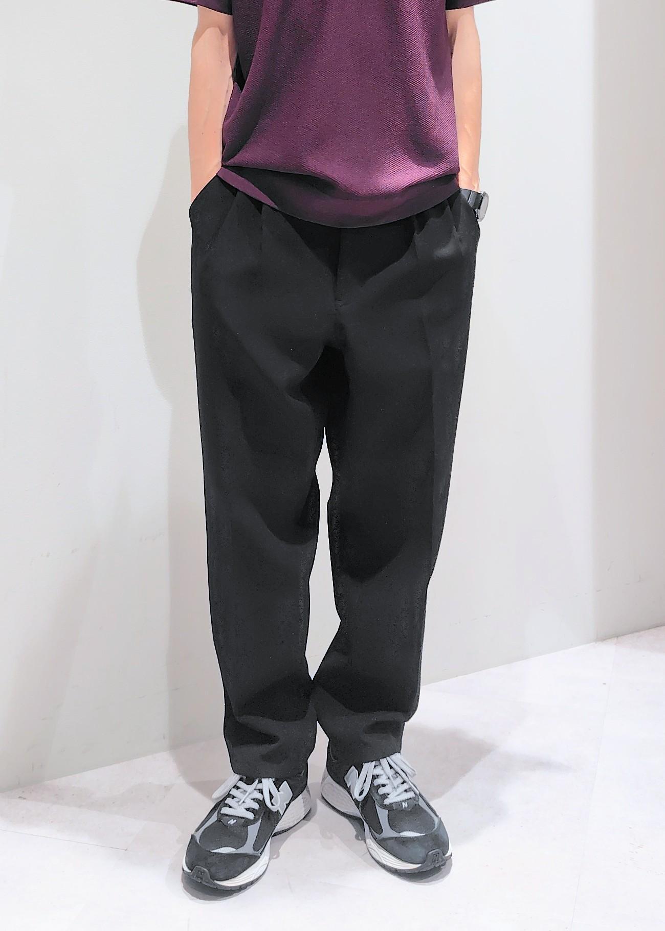 タック入りのワイドテーパードシルエットでオールウエストゴムのイージーパンツです。