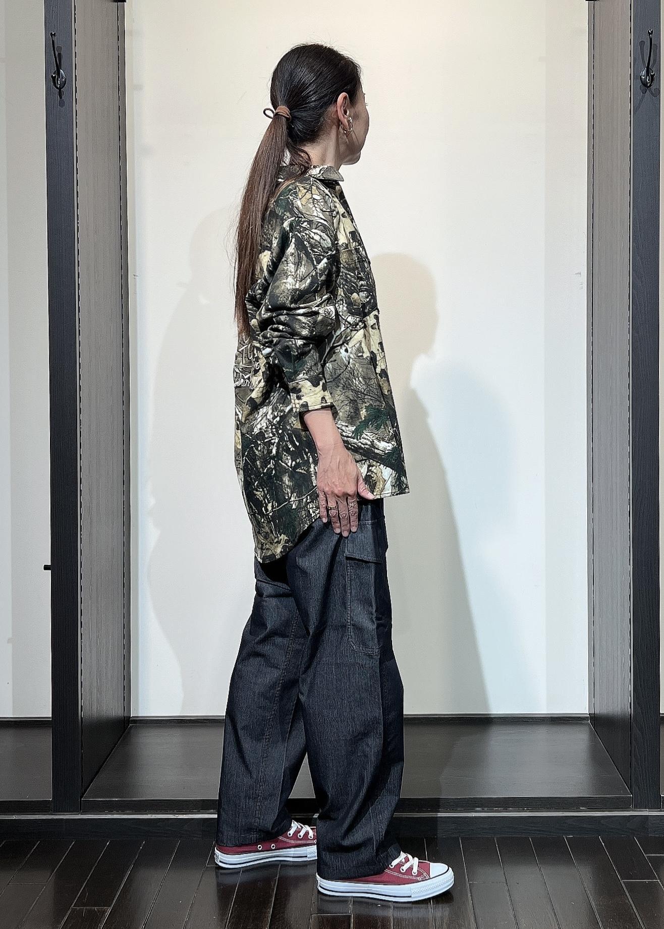 リアルツリーカモ柄とバックの刺繍がポイントです。 -