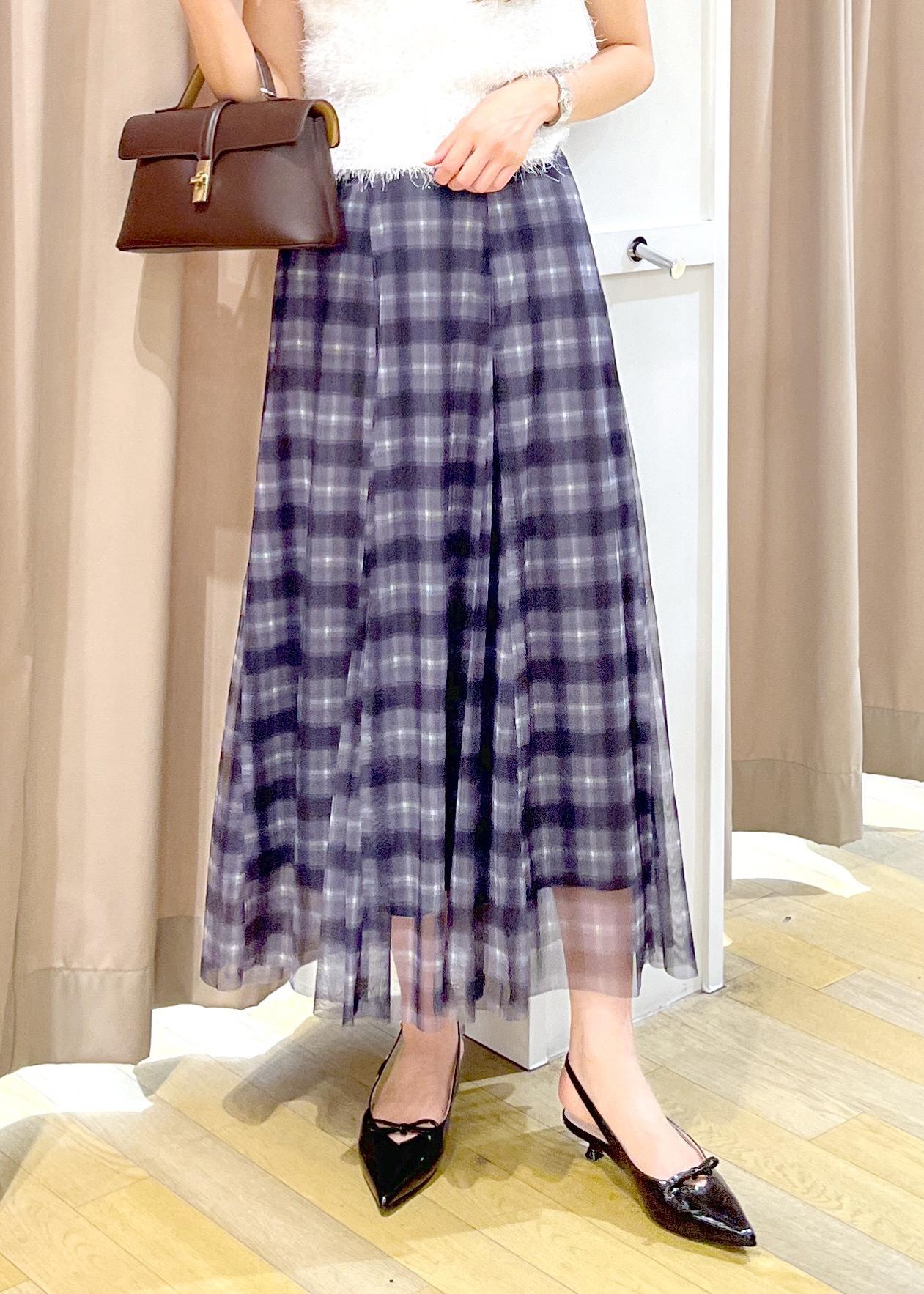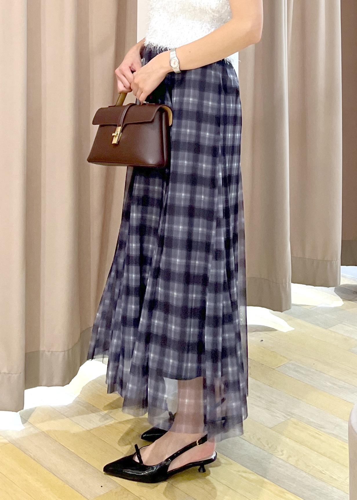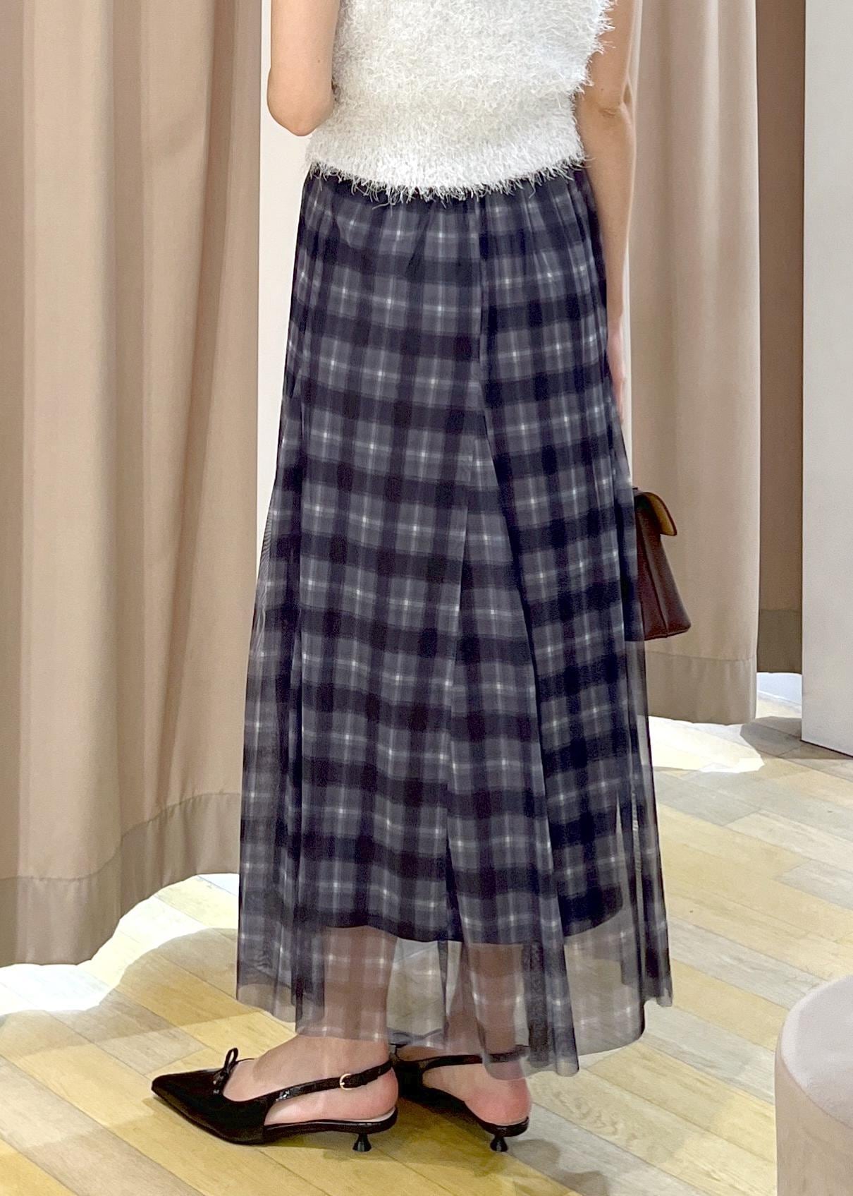 VIS【洗える】チュールプリントチェックスカートブラック系 / F¥4,612レビューチュール素材で軽やかで透け感もあるフレアスカートです。
