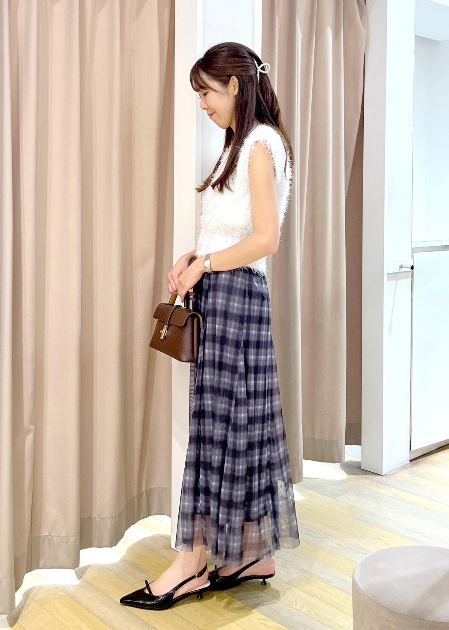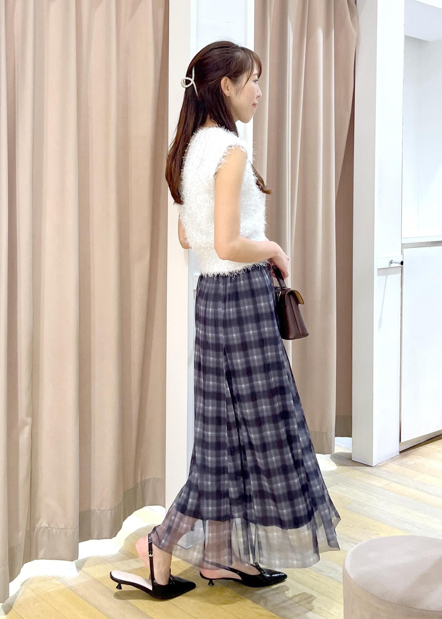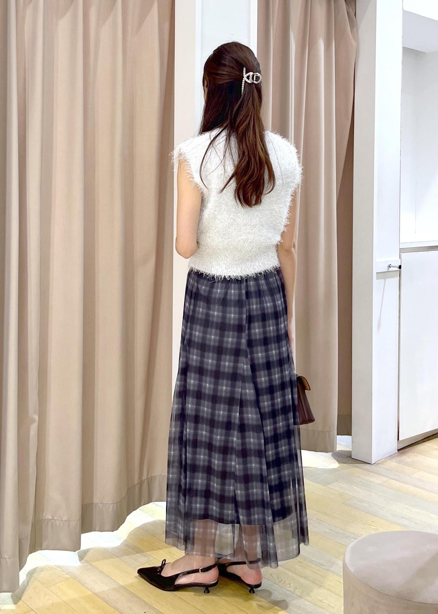 VIS【洗える】チュールプリントチェックスカートブラック系 / F¥4,612レビューチュール素材で軽やかで透け感もあるフレアスカートです。