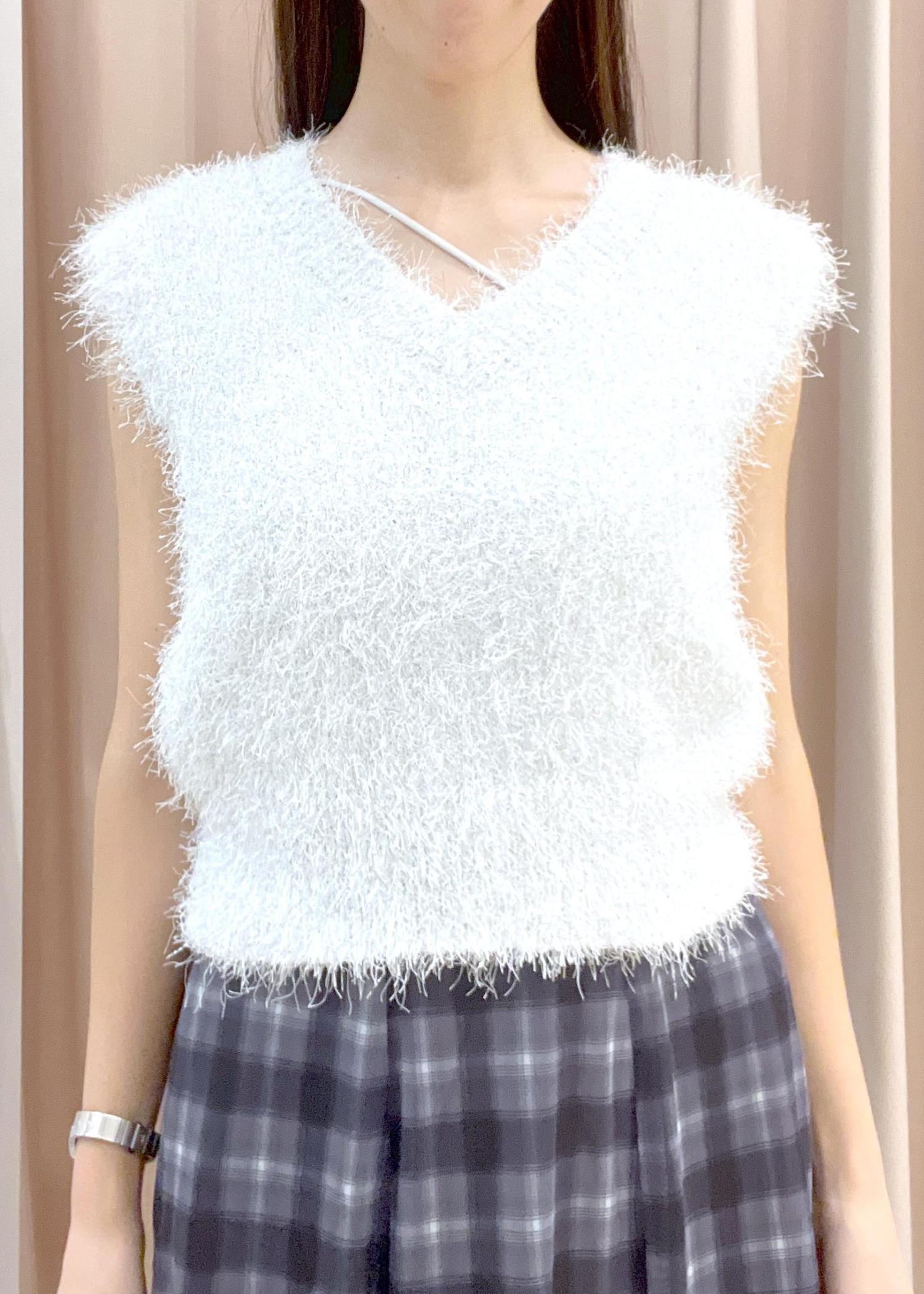 VIS【WEB限定サイズ:MT/着丈が選べる】【洗える】フェザーヤーンニットベストホワイト系 / M¥3,293レビューラメ糸入りでふわふわの肌触りです。