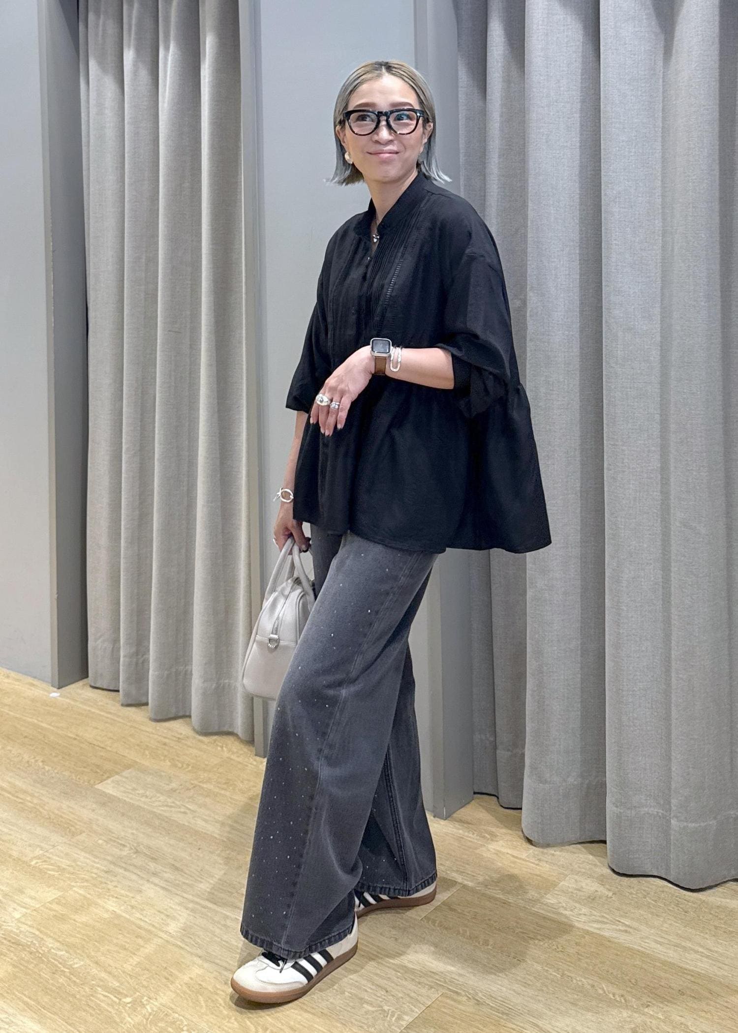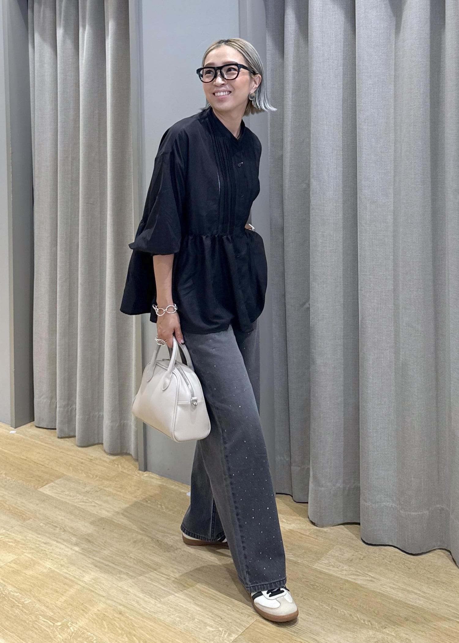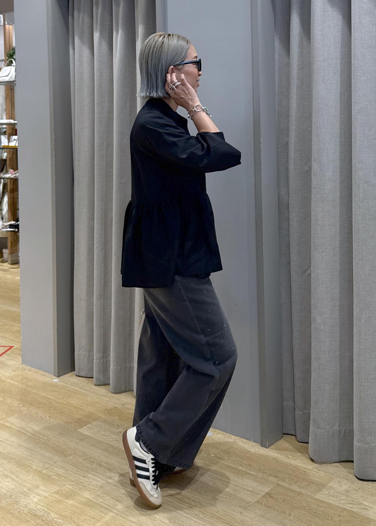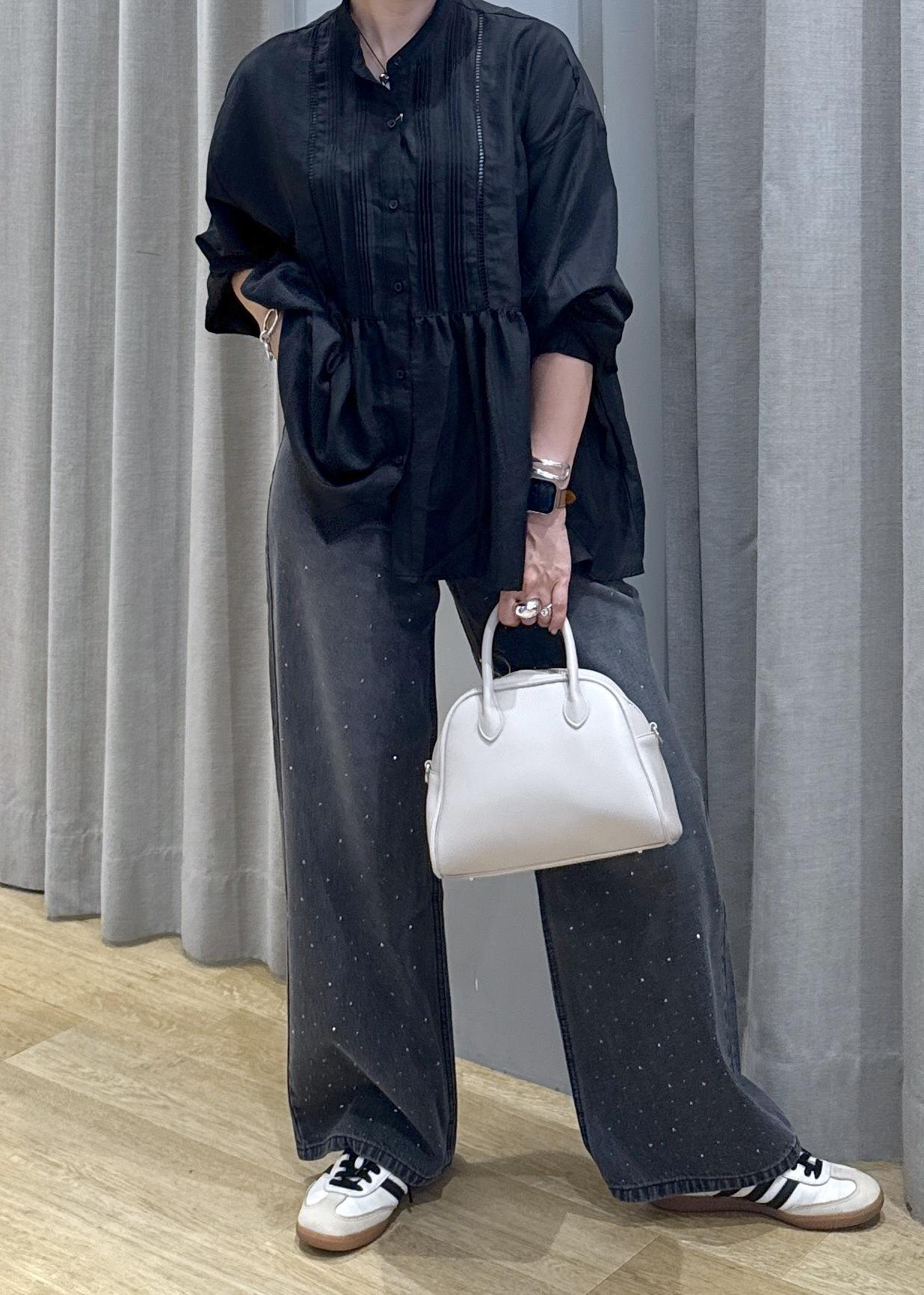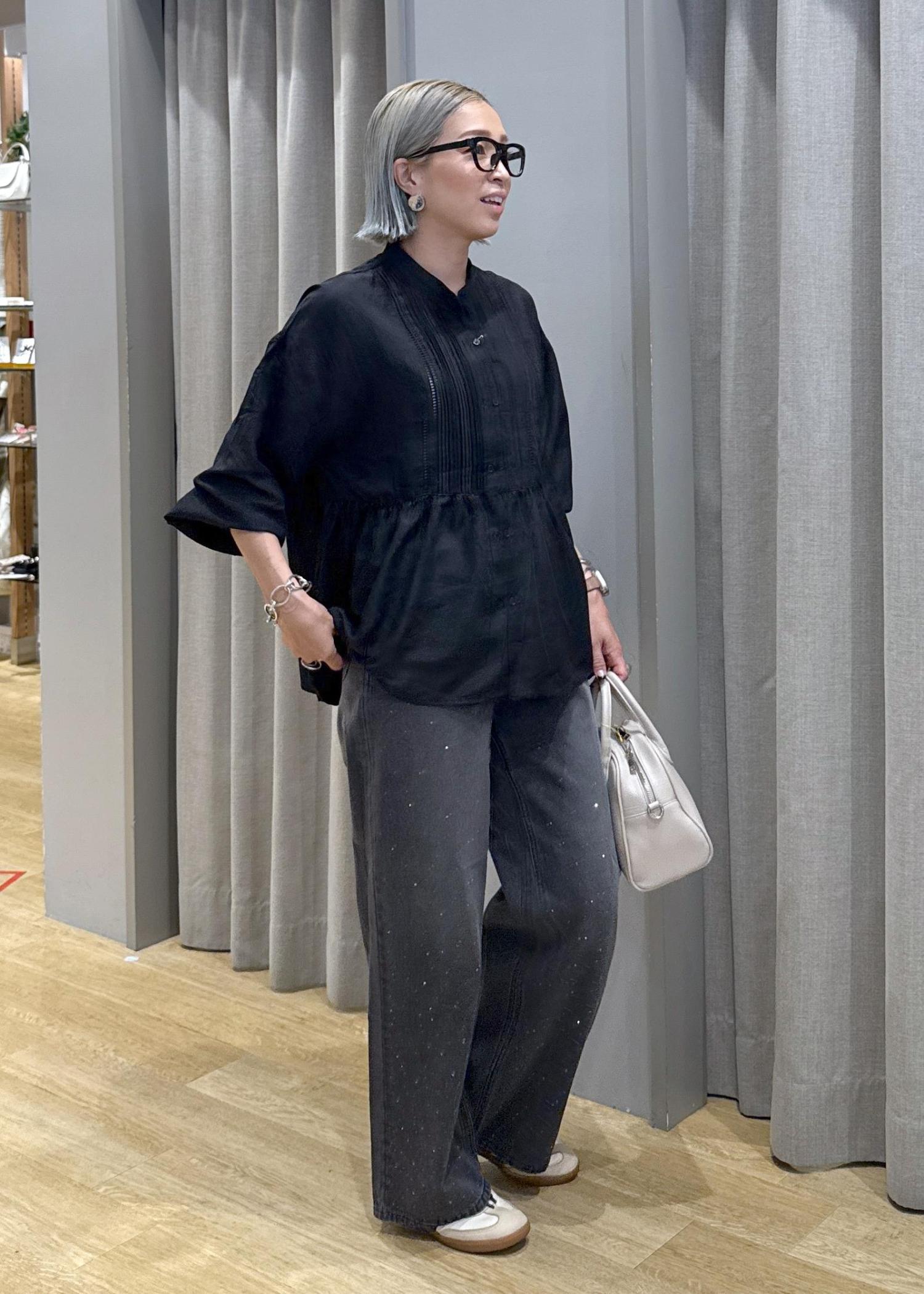 綺麗めカジュアルにまとめるために、デニムはあえてブラックにしました!