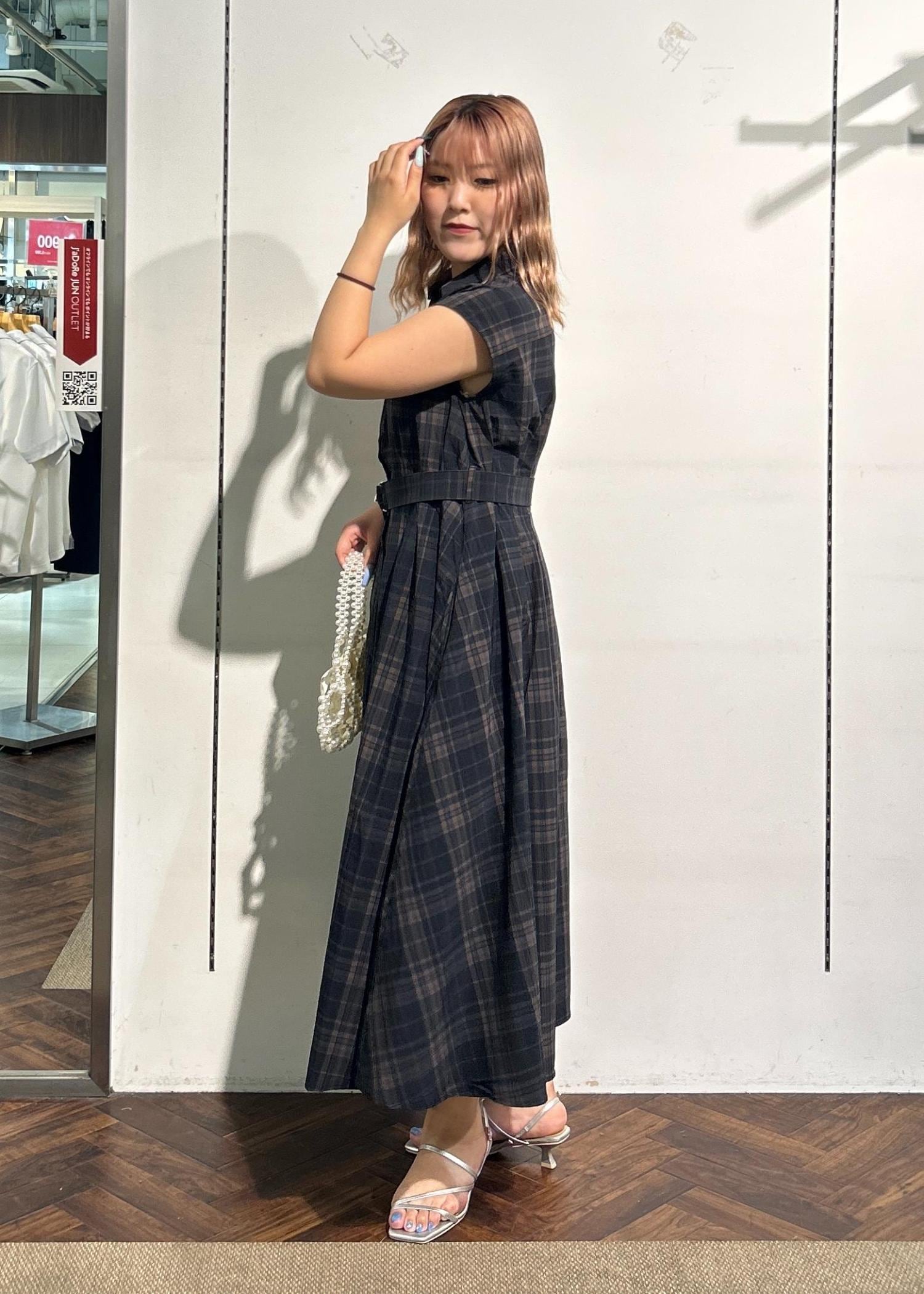 初秋にぴったりチェック柄ワンピを使ったコーディネートです⟡.·