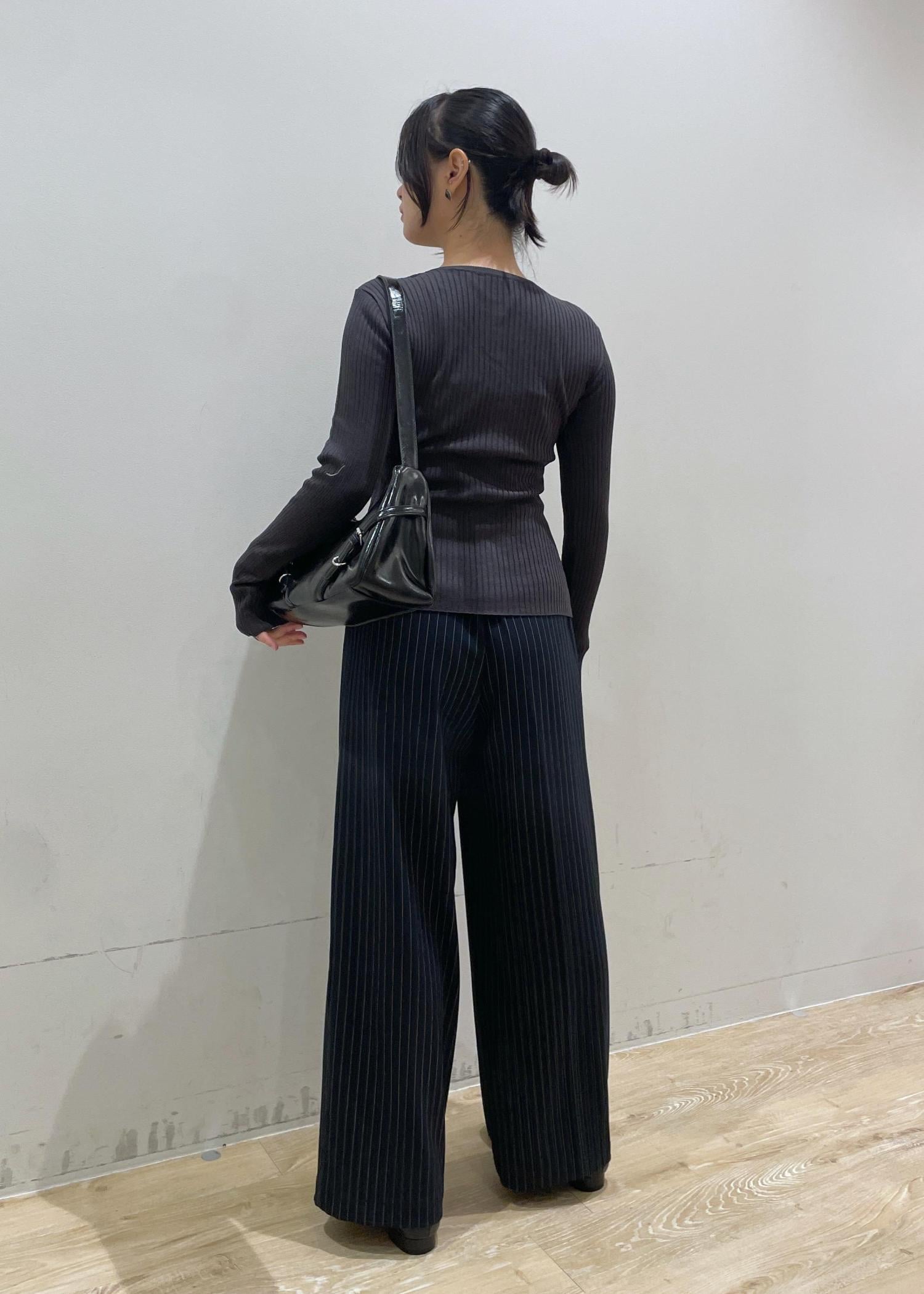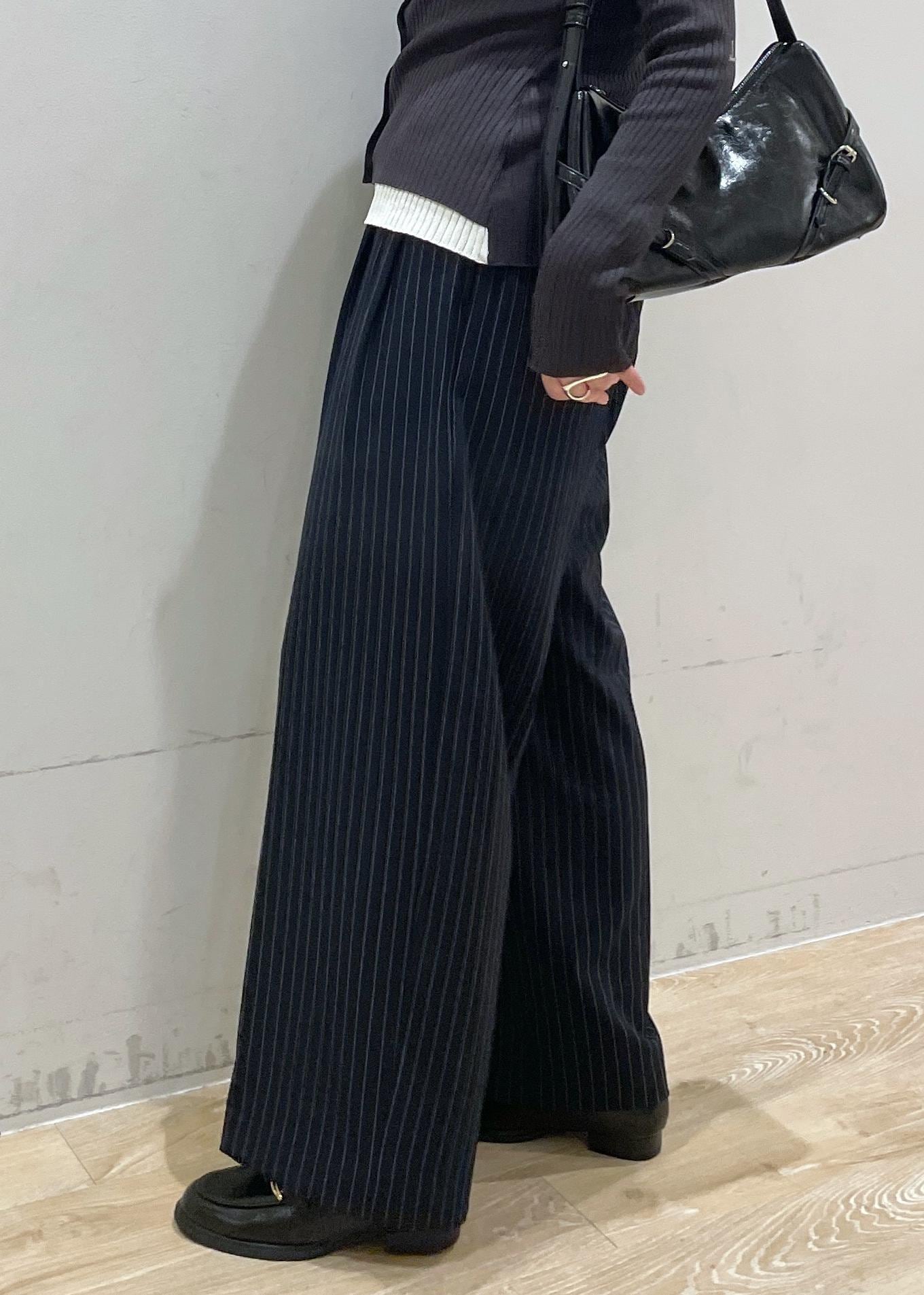 アウトレットVIS【接触冷感/UVケア】ピンストライプリラックスワイドパンツネイビー系 / M¥2,636レビュー縦ストライプがスタイルをすっきり長く見せる効果があります!