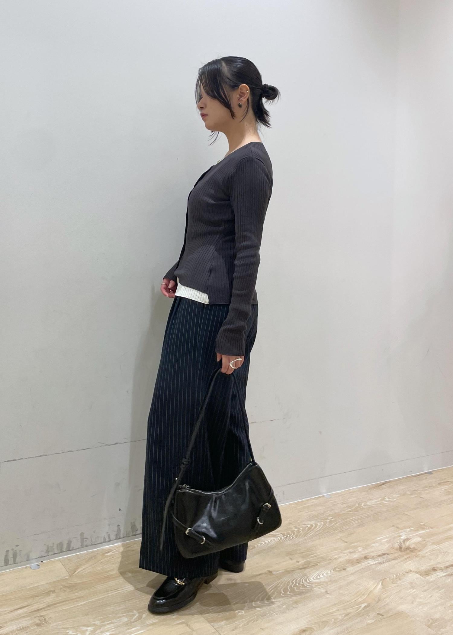 落ち着いた色味でまとめながら、シルエットと小物でさりげないおしゃれ感をプラスしたコーデです!!