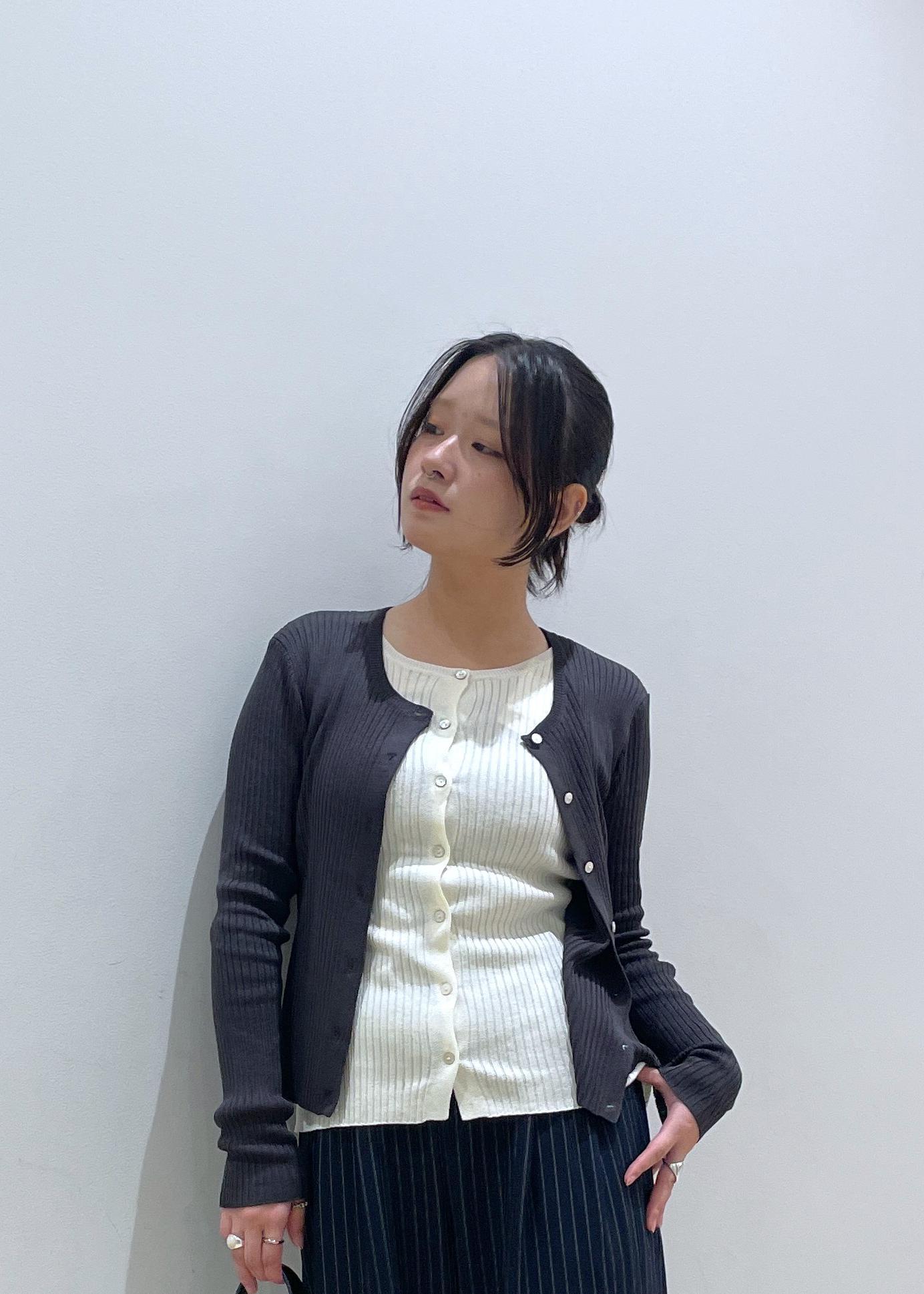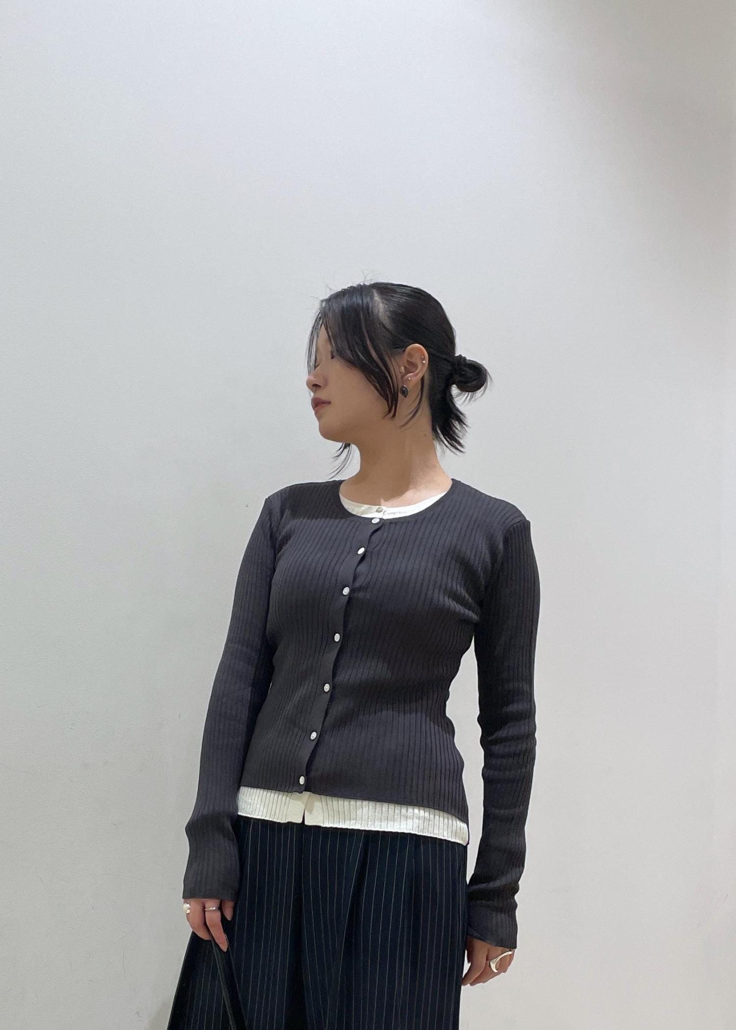 VIS【WEB限定】フェイクレイヤードカーディガン(マルチWAY)チャコール / F¥3,953レビューリブ素材で身体のラインをきれいに見せてくれます!