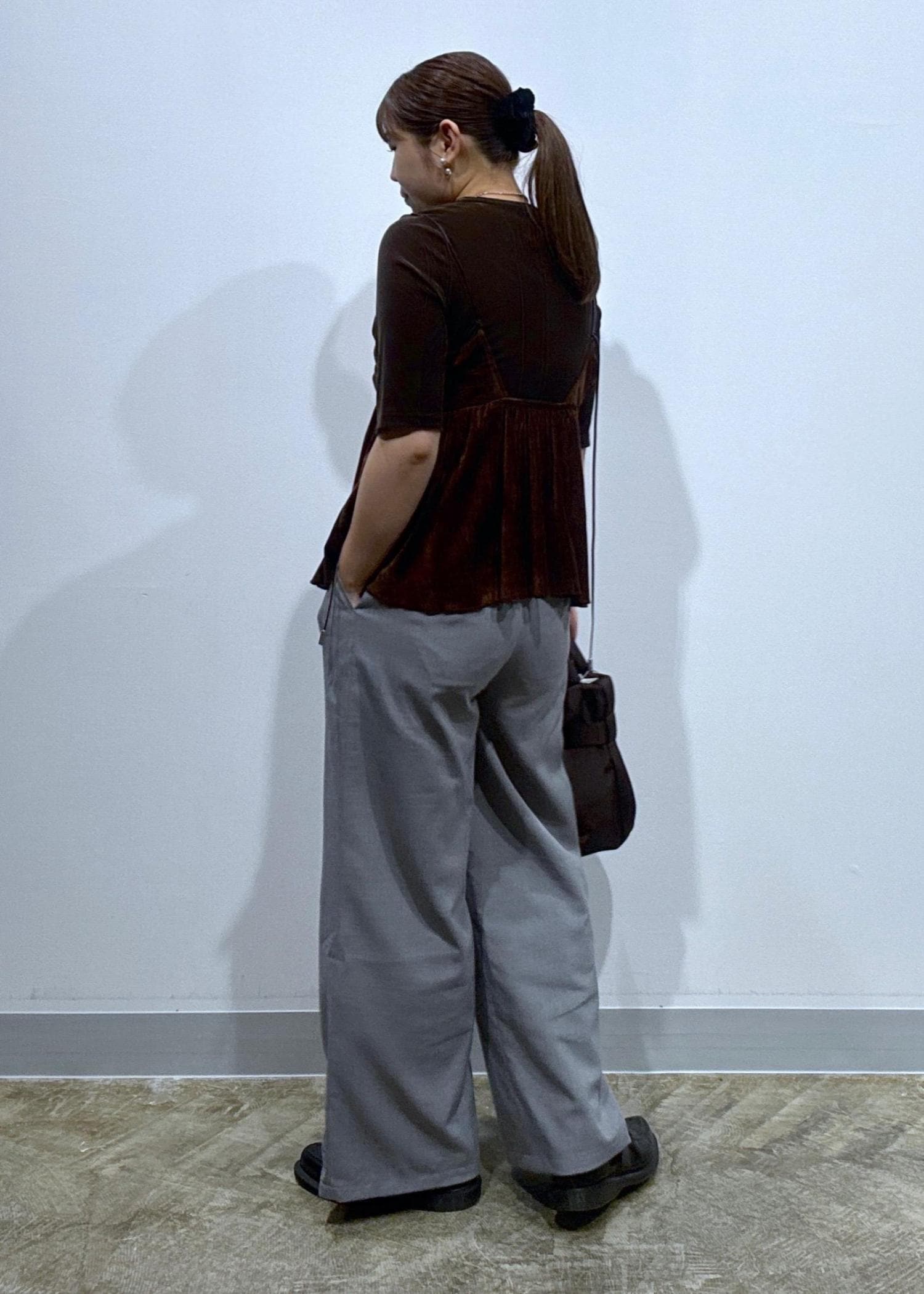 LE CERCLE par ropéシアーベロア5分袖Tシャツダークブラウン / F¥5,500レビュー秋コーデに取り入れやすいベロアアイテム