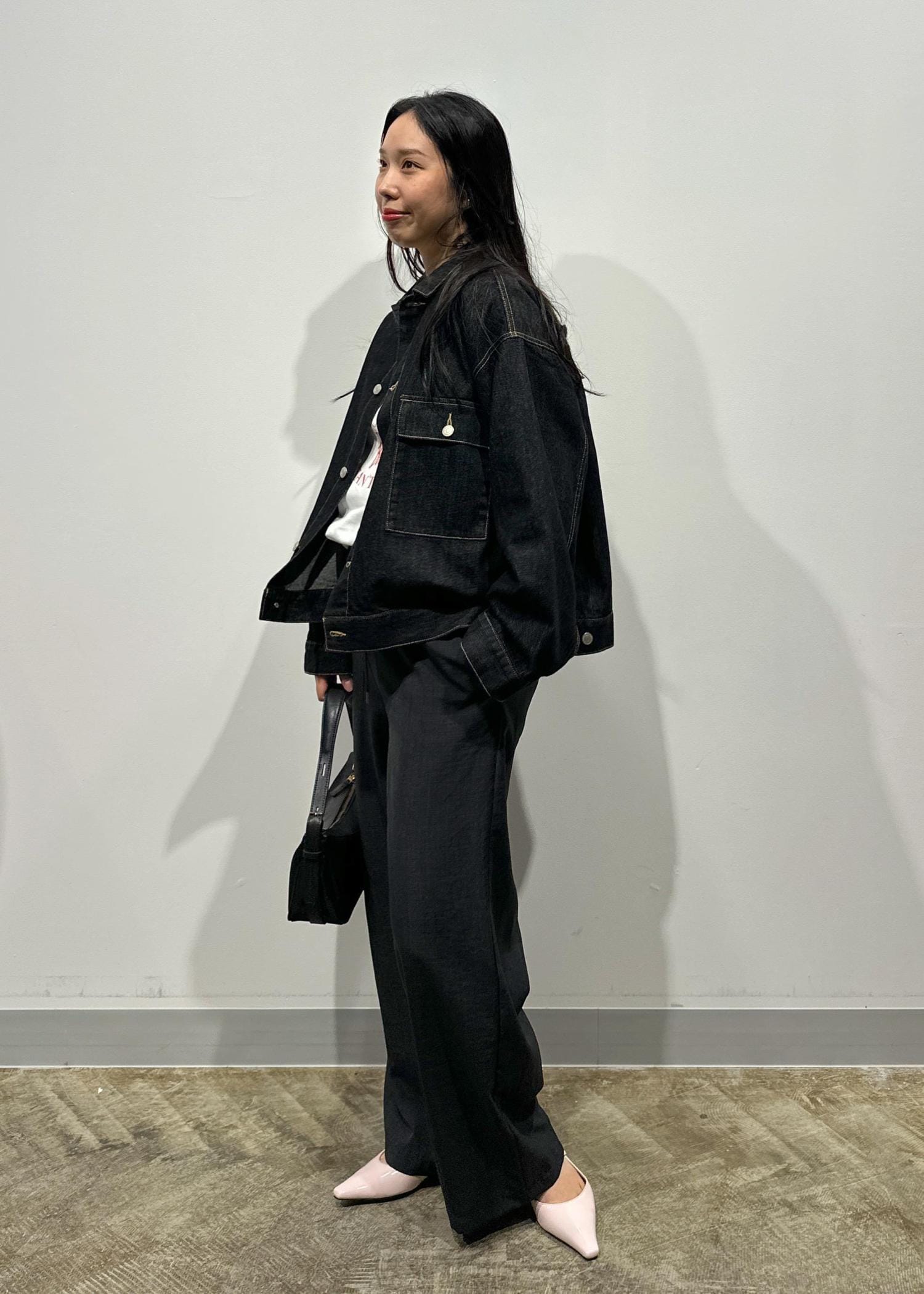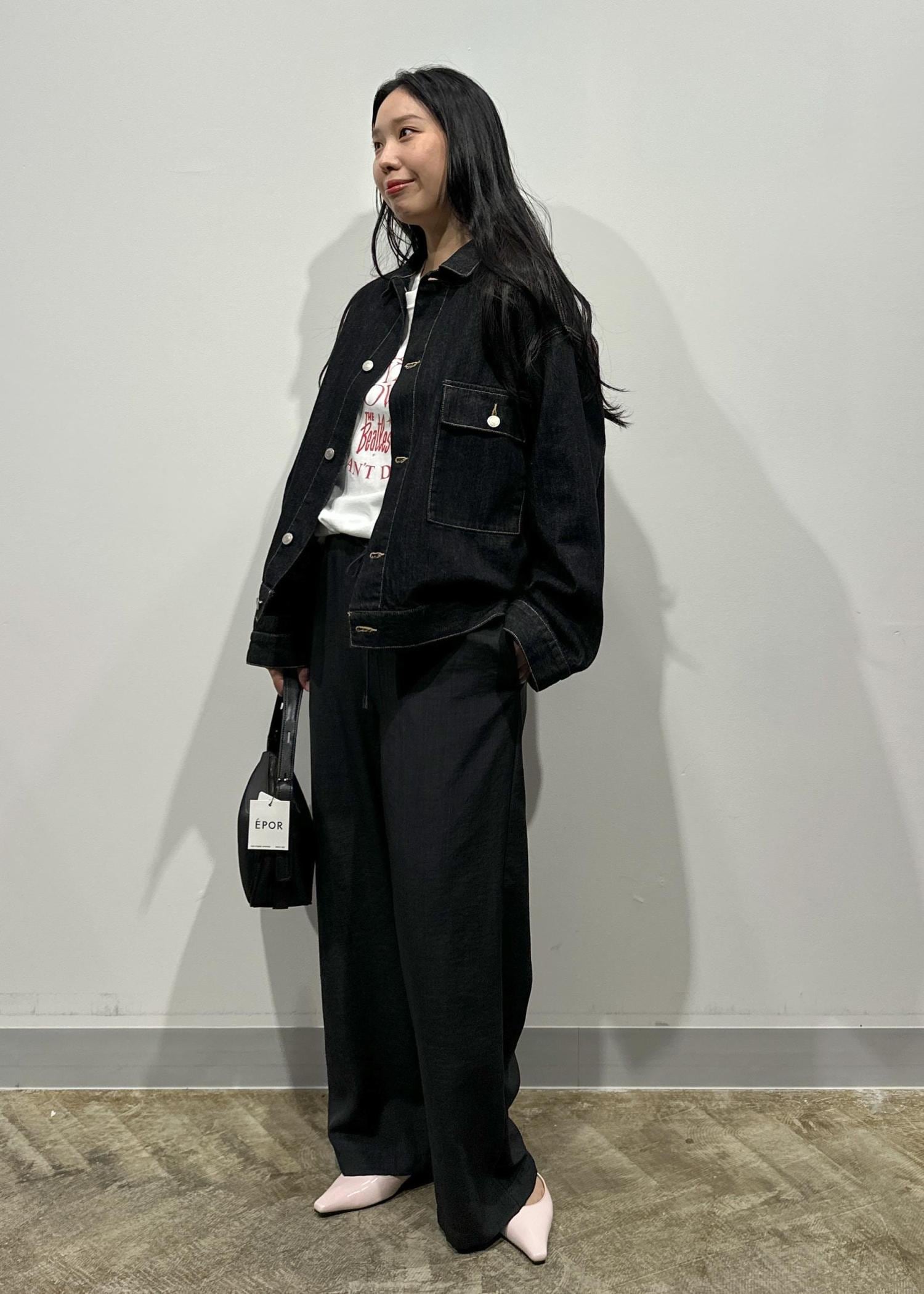オーバーシルエットながら、丈はヒップにかかるぐらいの幅広いの身長の方にも会うシルエットデザインです。