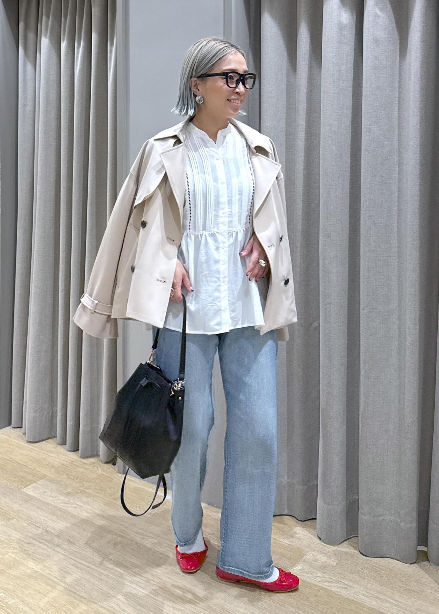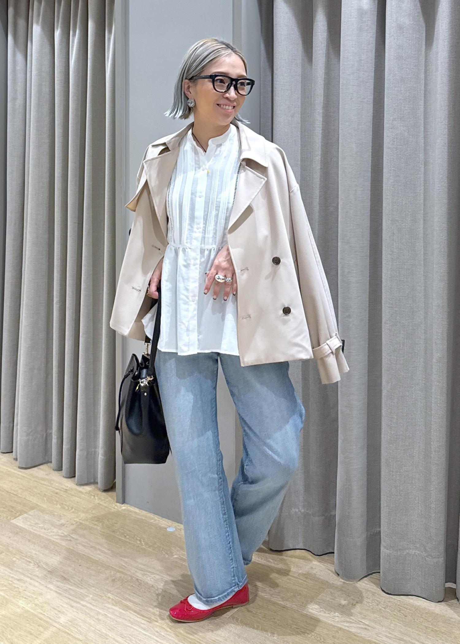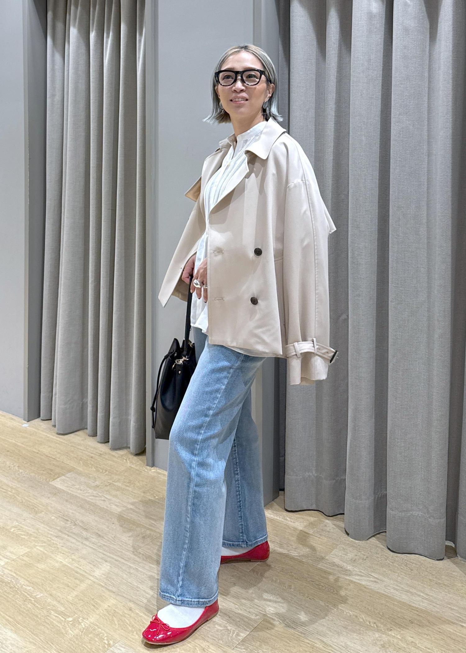 程よくヒップカバーをしてくれる、私が大好きな着丈のトップスに、美脚デニムを合わせて