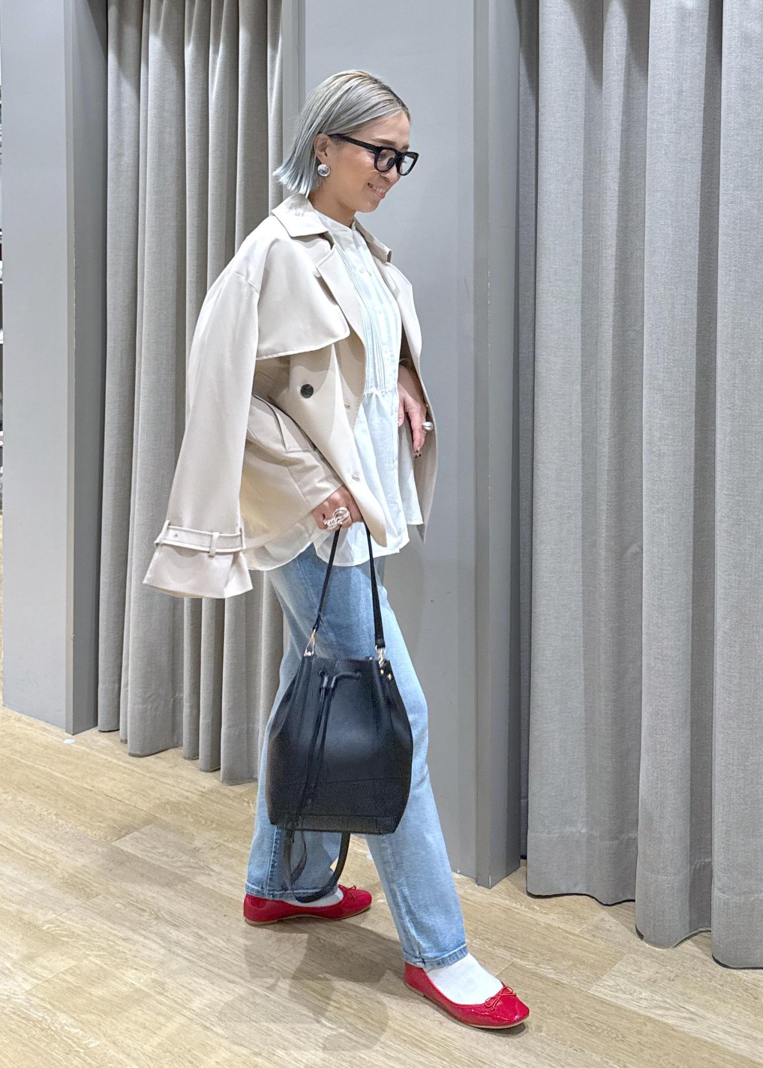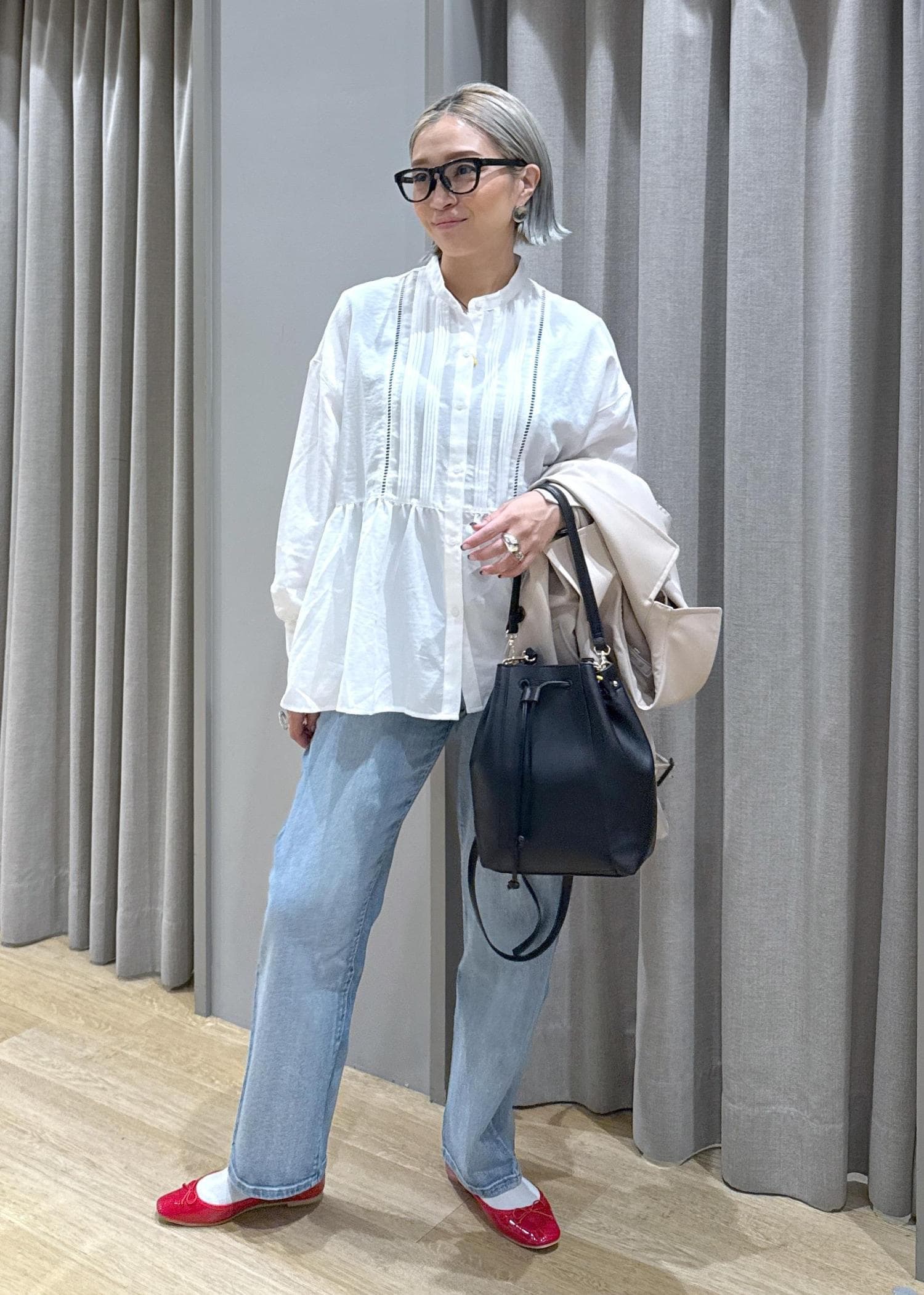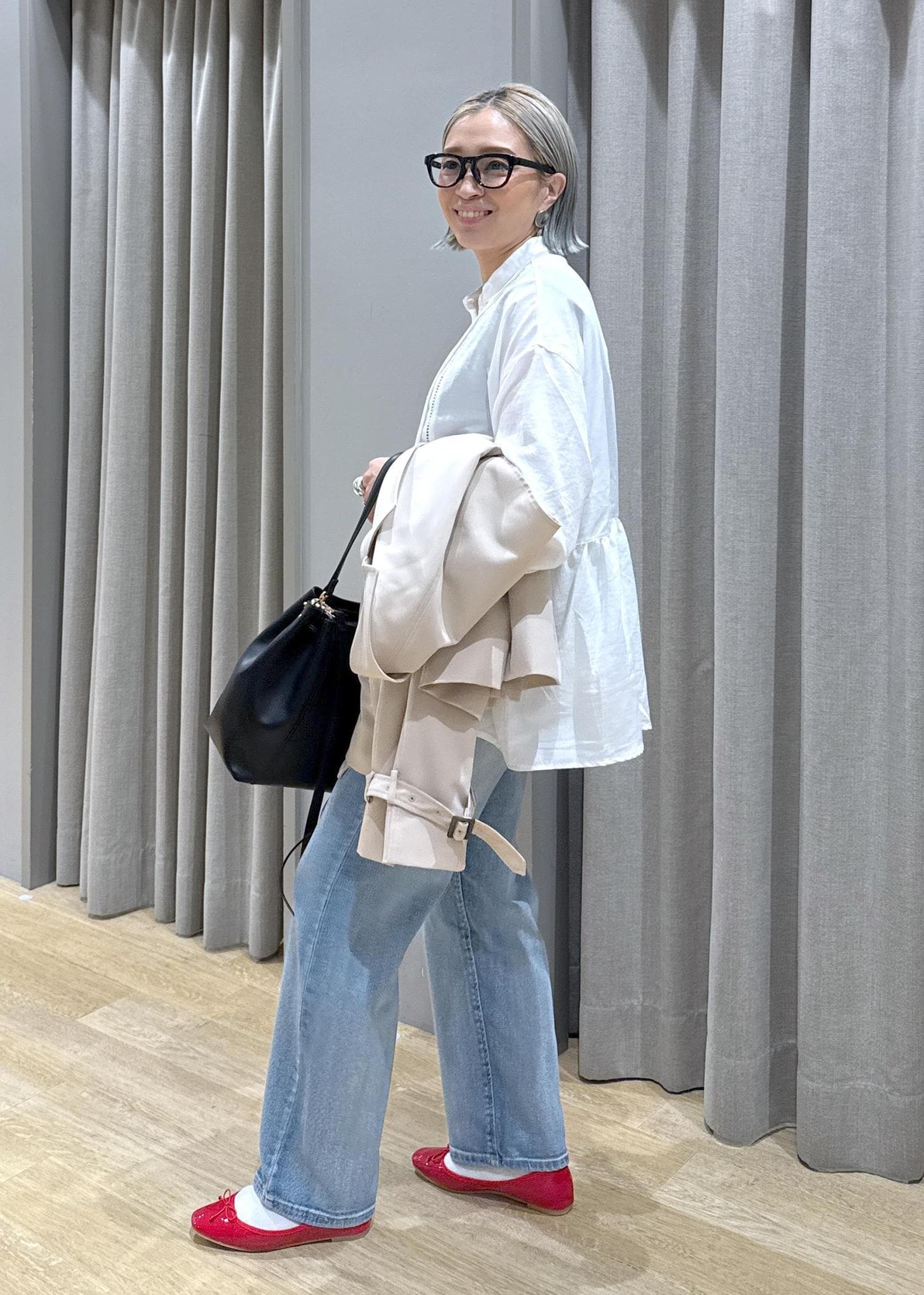 程よくヒップカバーをしてくれる、私が大好きな着丈のトップスに、美脚デニムを合わせて