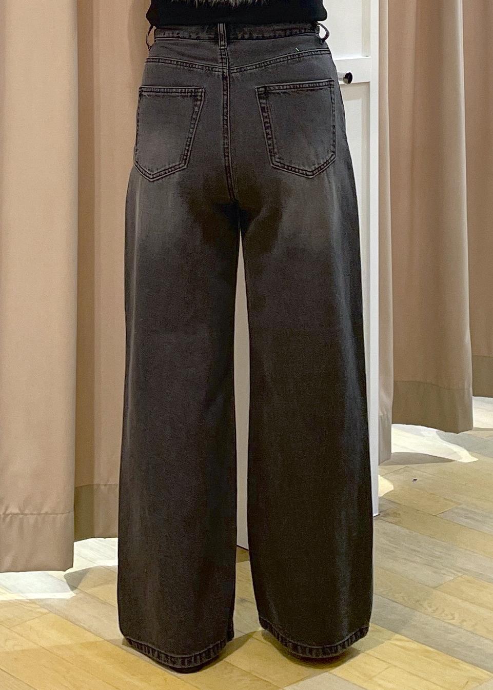 柔らかいデニム素材で、やや細めのワイドシルエットです。