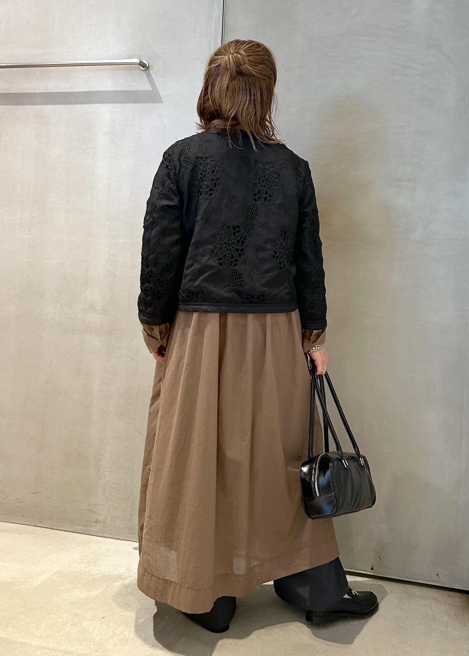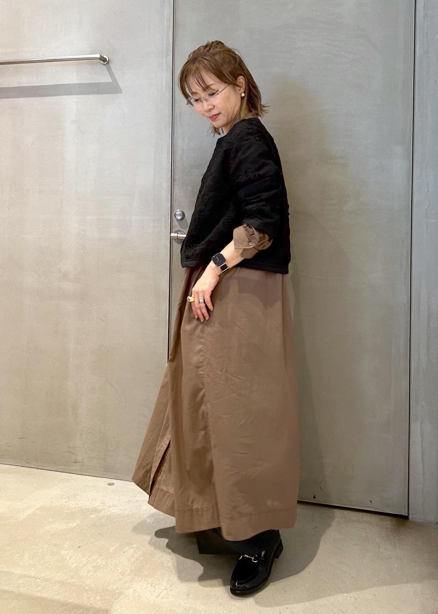 着丈が短いので、ワンピースやフレアースカートと相性が良いです。 -