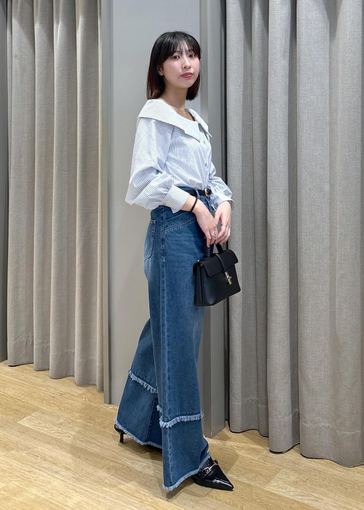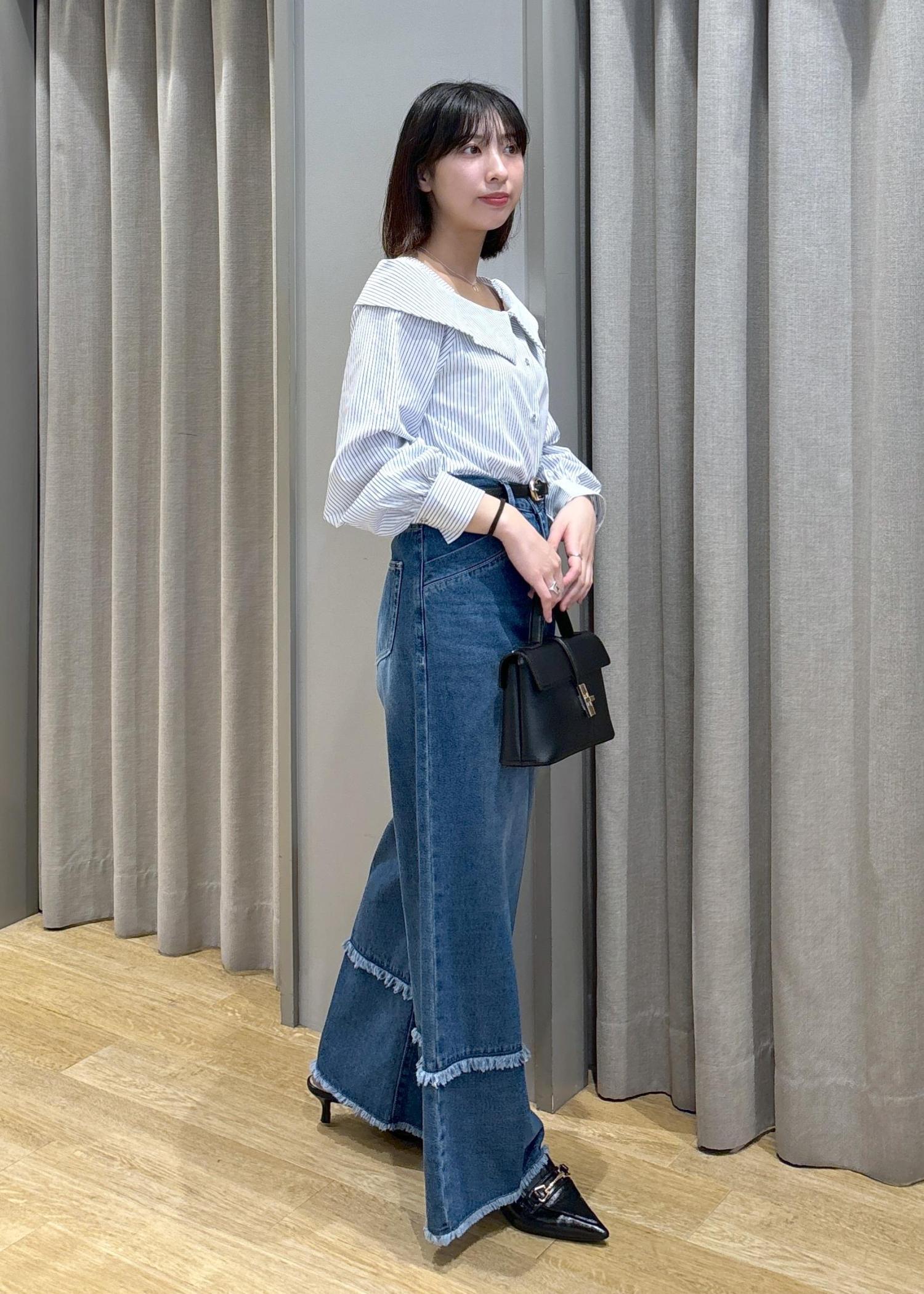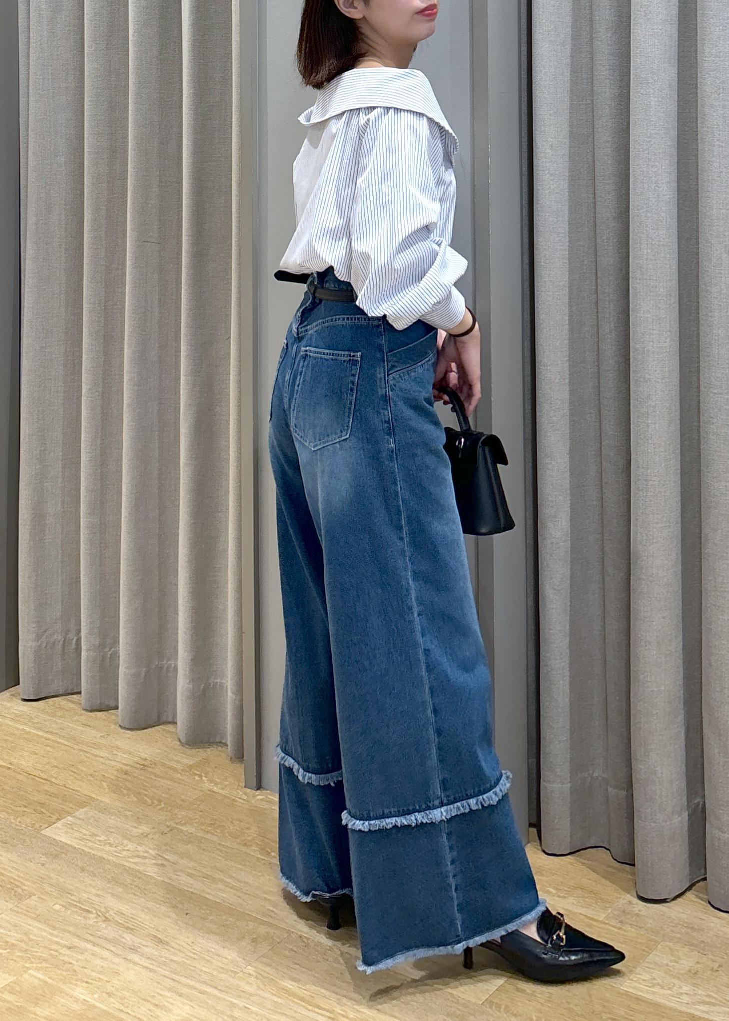 VISフリンジフレアデニムブルー系 / M¥4,395レビュー身長158cm、Mサイズ着用。